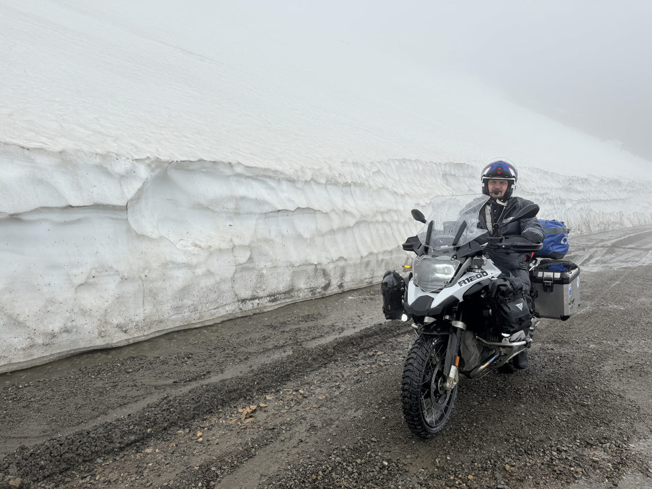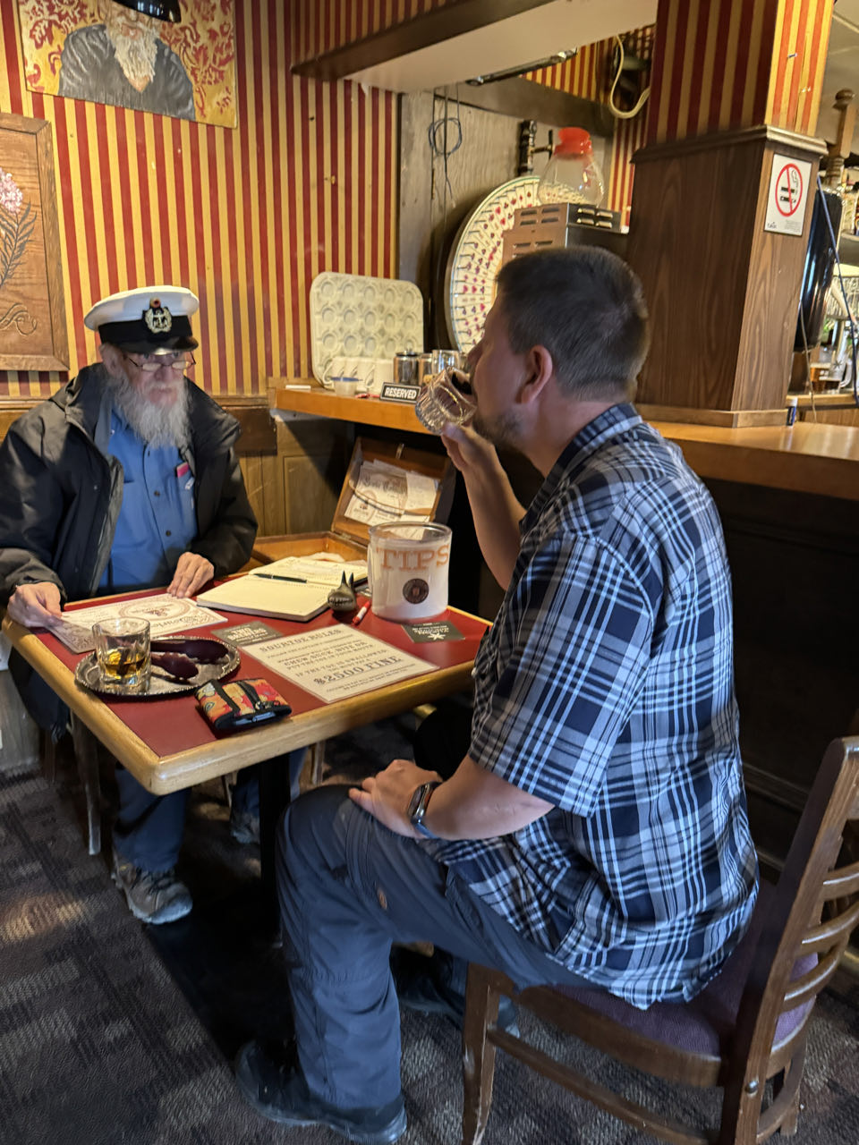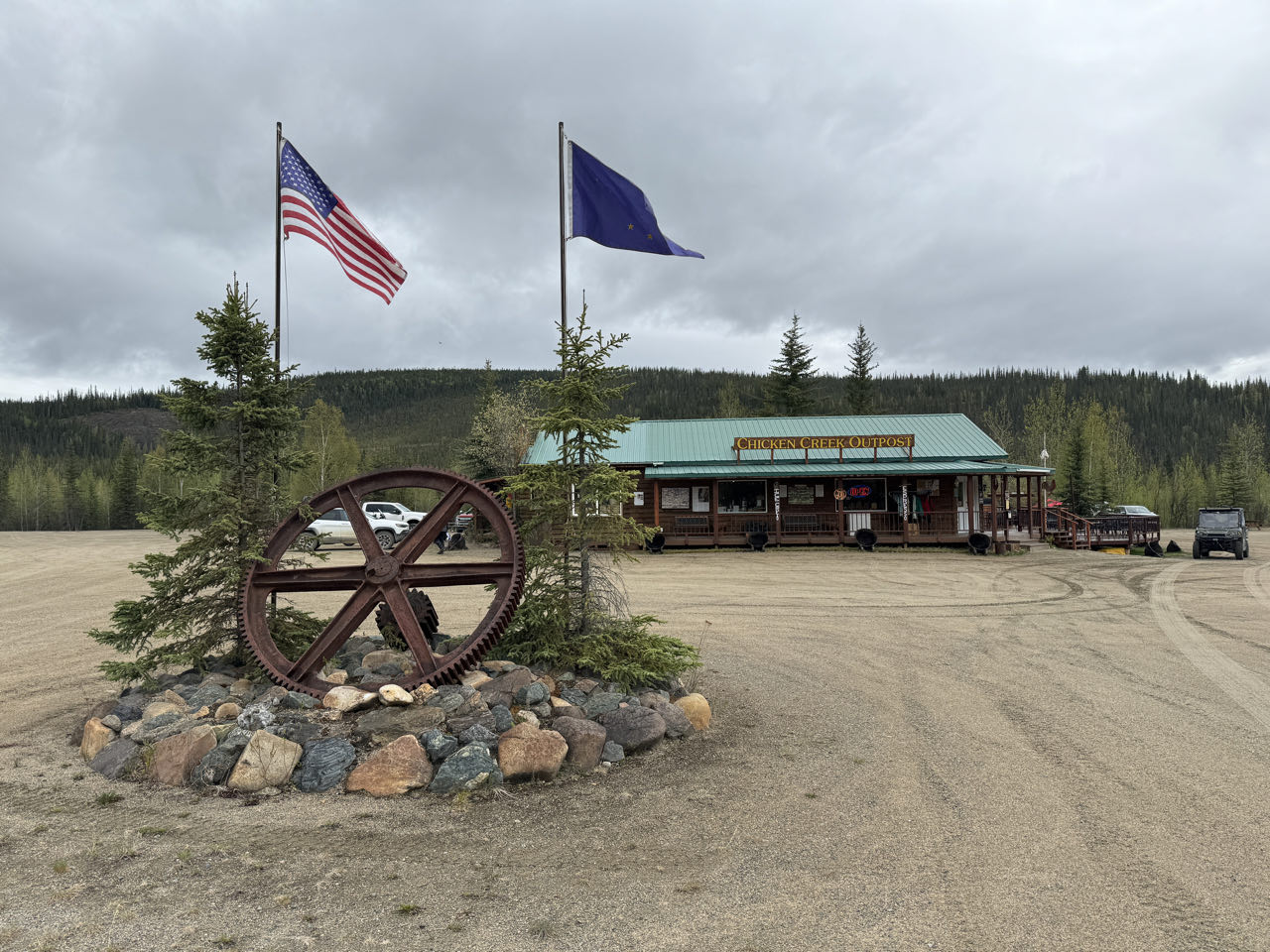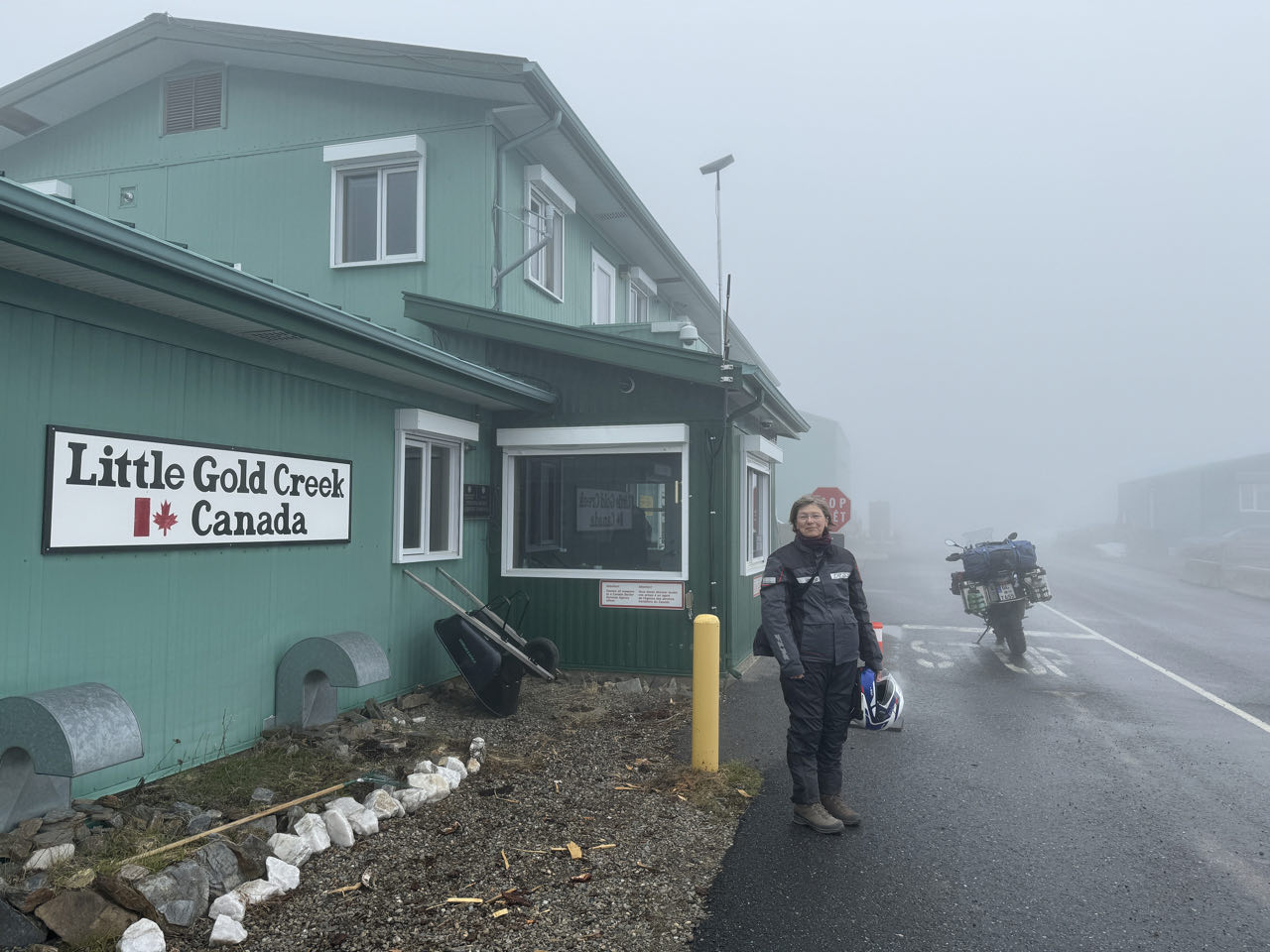 Regen. Regen. Regen. Kein optimales Wetter für den 174km langen unbefestigten „Top of the World Highway“. Aber wir müssen heute von Tok über das Golgräbercamp „Chicken“ bis nach Dawson in Kanada. Der nette Grenzbeante heißt uns Willkommen in Kanada 🇨🇦. Wir sollten vorsichtig fahren - die Schotterstraße sei ein wenig glitschig (slippery). Was für eine Untertreibung! Bis zu 10 cm loser Matsch über zig Kilometer hinweg bringt uns an unsere Grenzen (und ein wenig darüber hinaus). Trotz Regen, Matsch, Schnee und Eiseskälte überqueren wir mit der Fähre den Yukon und kommen abends in Dawson an. Wir gönnen uns ein Zimmer in dem historischen Downtown-Hotel und genießen eine heiße Dusche. Nach dem Essen wird Frank noch Mitglied im „Sourtoe Cocktail Club“, indem er die mumifizierte Zehe im Whiskey zischen die Lippen nimmt 😂