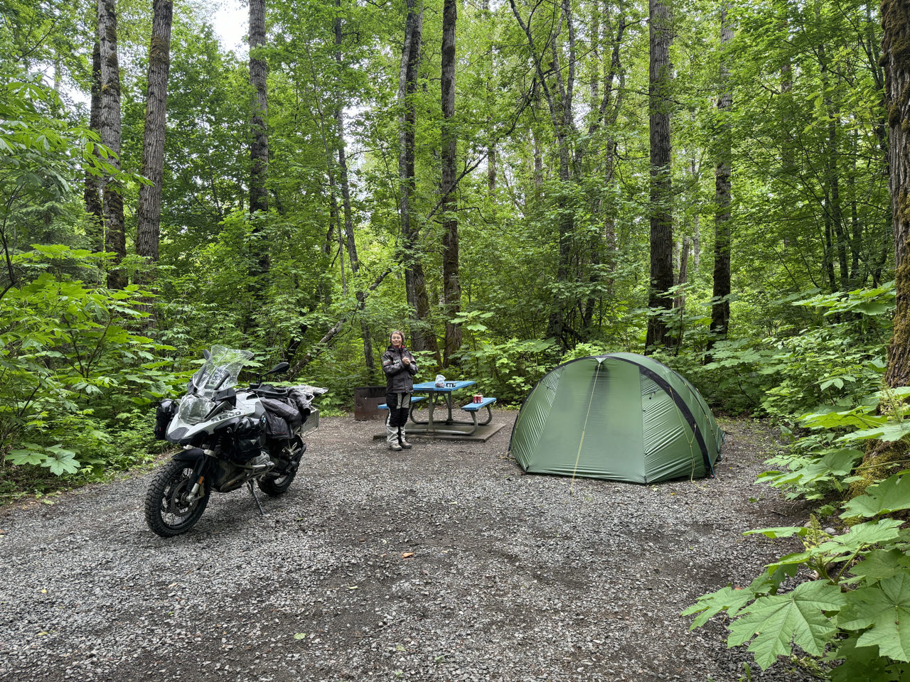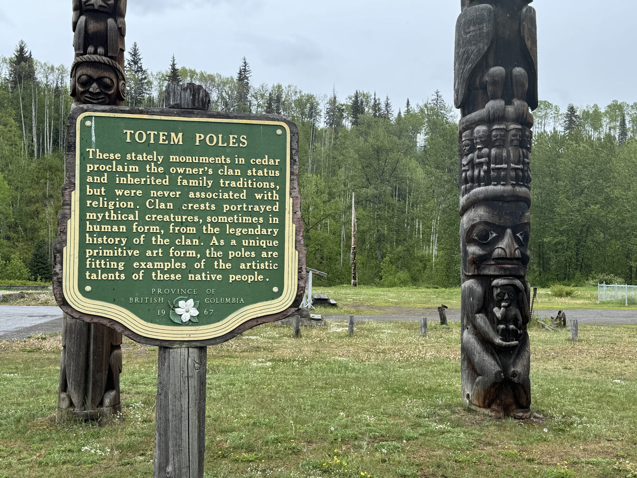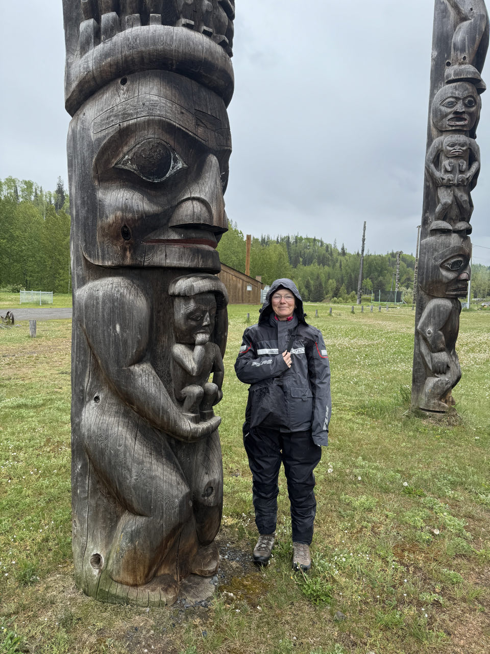 320 km Regenfahrt über den Cassier Hwy durch unendliche Wälder British Columbias - das war’s heute. Ach nein, unterwegs haber wir alte Totempfähle in Gitanyow angeschaut. Und wir waren im Walmart einkaufen. Wir übernachten heute auf dem Ferry Island Municipal Campground in Terrace. Morgen geht’s nach Prince Rupert zur Fähre durch die Inside Passage (haben schon gebucht).