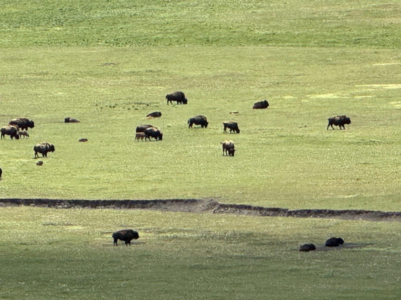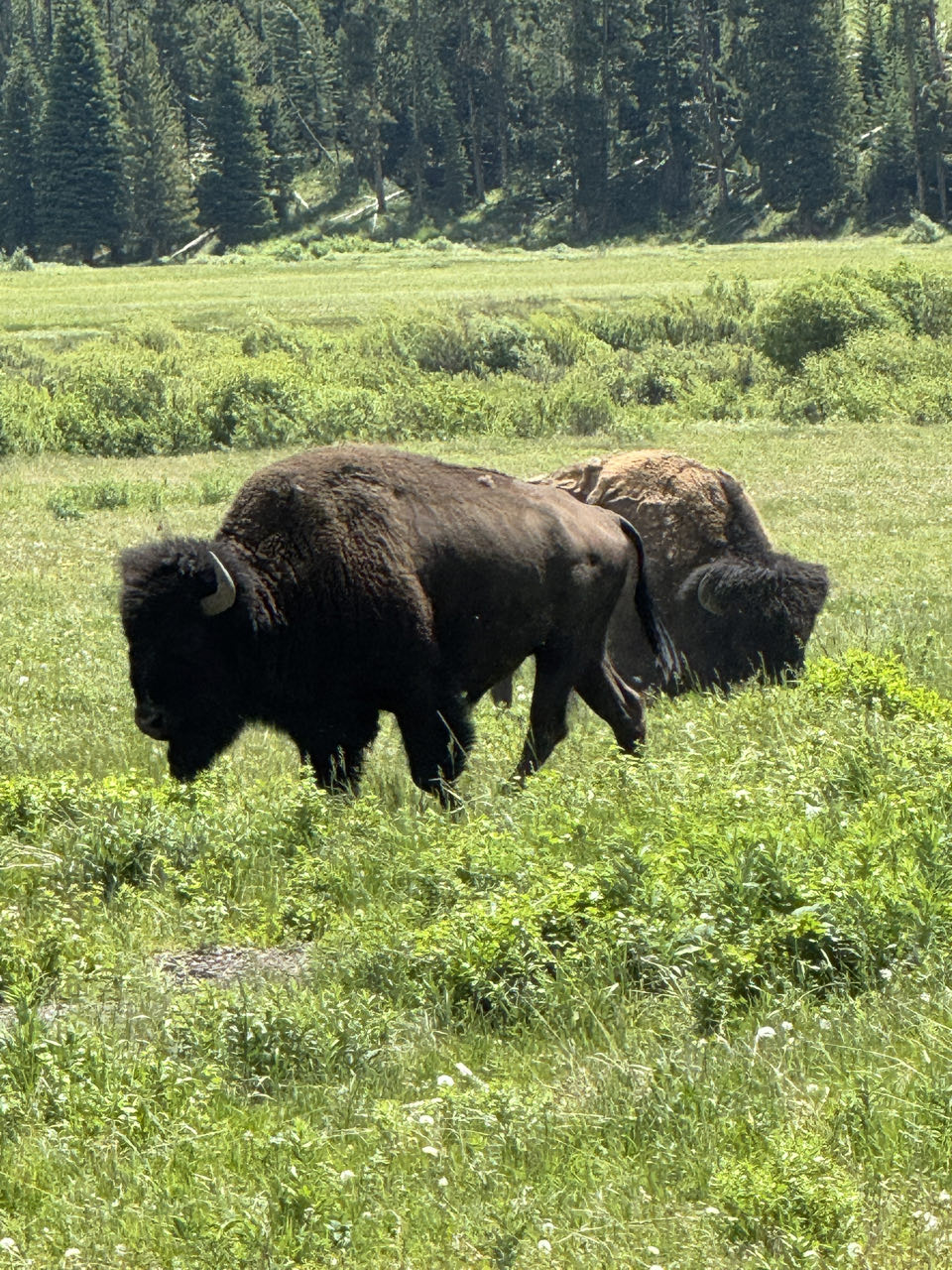 Über den legendären Beartooth-Pass (3.336 m - der höchste Alpen-Pass ist übrigens „nur“ 2.800 m) erreichen wir Wyoming. Hier werden wir vier Tage den Yellowstone Nationalpark (der ist so groß, wie Korsika) erkunden. Die ersten 150 km bis zum Campingplatz mitten im Park sind atemberaubend 😍 - einfach unbeschreiblich.