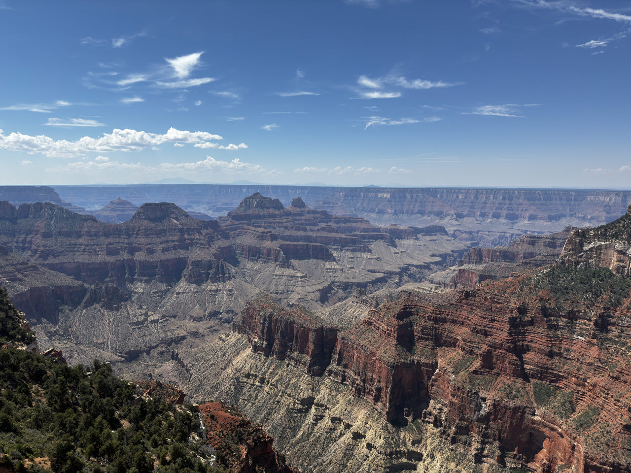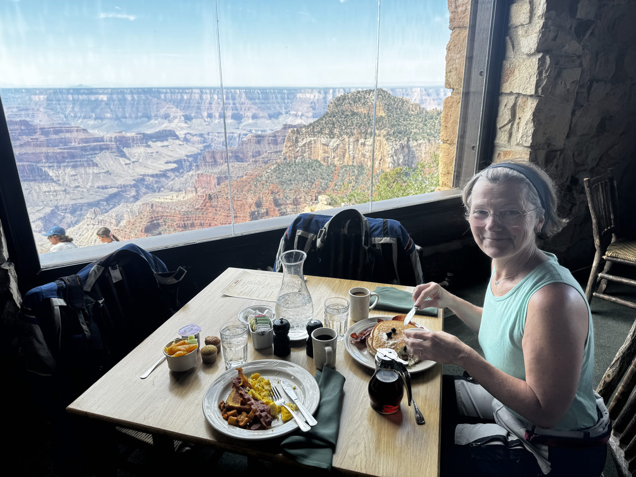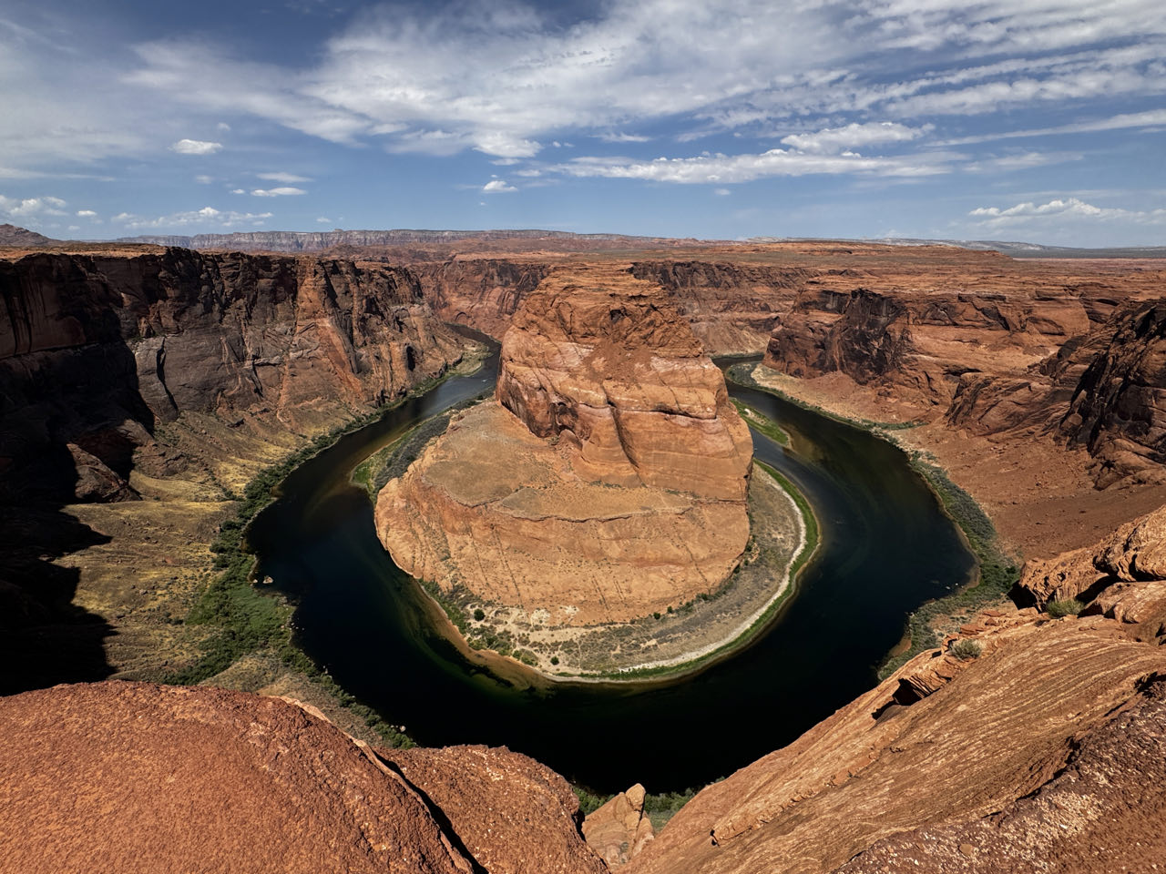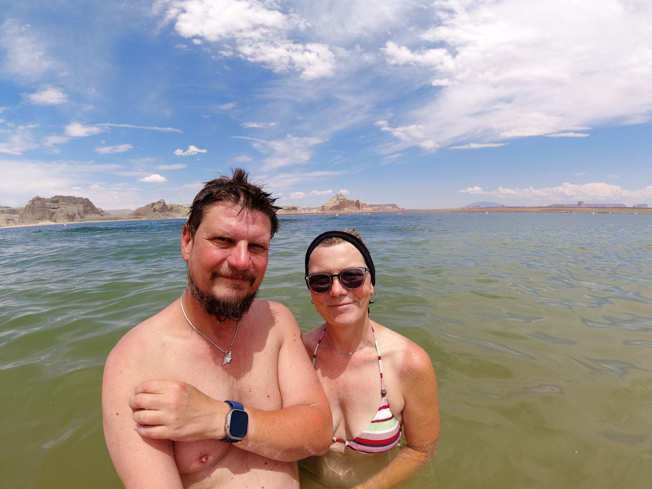 Vom Zion NP fahren wir zum Nordrand (North Rim) des Gran Canyon. Auf Empfehlung eines Ehepaares in Jakob Lake gönnen wir uns ein ziemlich dekadentes Frühstück in der Grand Canyon Lodge mit einem spektakulären Ausblick auf den Canyon (es war heute dann aber auch das einzige Essen 😉). In Page schauen wir uns die Horseshoe Bend - die 360 Grad-Schleife des Colorado-Rivers an. Etwas nördlich staut der gigantische Glen-Dam den Colorado seit 1960 zum 380 km langen Lake Powell auf. Bei 38‘C nachmittags eine willkommene Abkühlung. Im (klimatisierten) Hotelzimmer machen wir abends dann eine Salat-Party mit eiskaltem Budweiser - fantastisch 😋