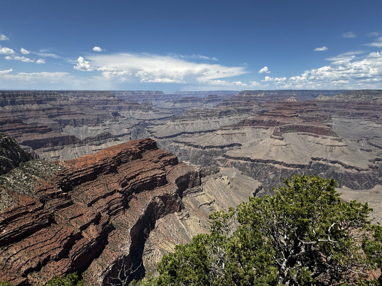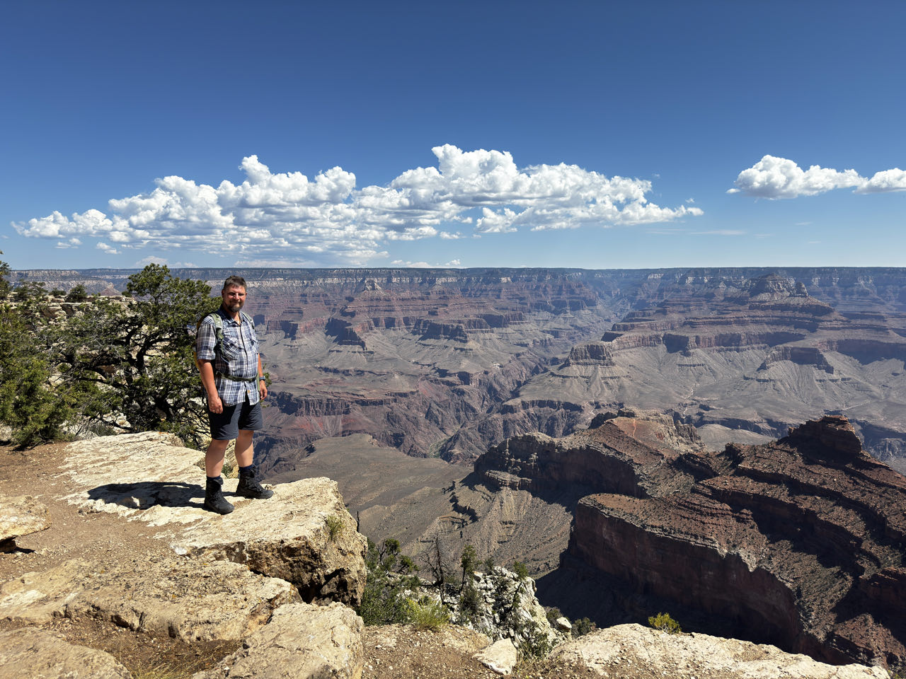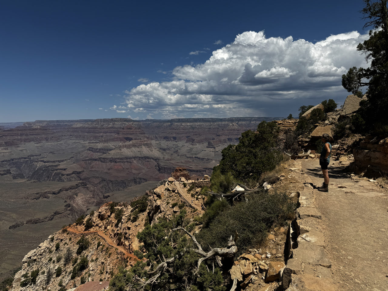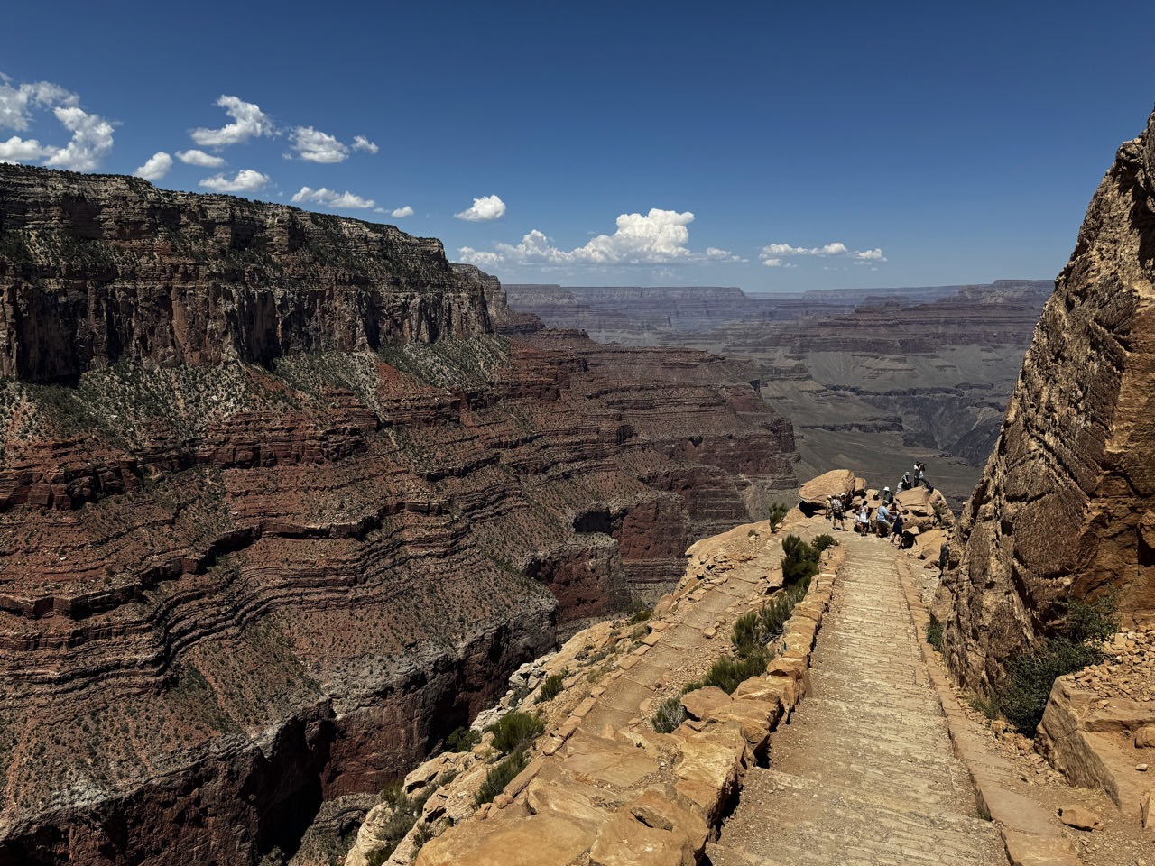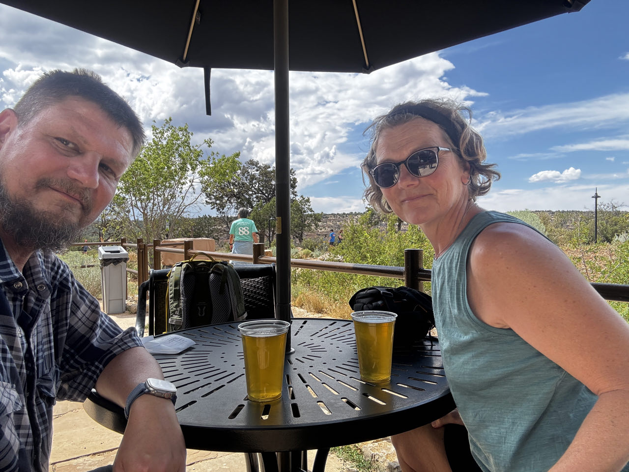 Grand Canyon - der wahrscheinlich berühmteste Nationalpark der Vereinigten Staaten. Zurecht! Gigantisch! Der Colorado-River hat hier in 2 Mrd. Jahren (!!!) eines der sicherlich großartigsten Naturschauspiele der Welt geschaffen. Nachdem wir die Warnung vor Schlangen zur Kenntnis genommen haben, wandern wir in zwei Tagen den gesamten South Rim Trail entlang - 15 km bei 35‘C, ganz passabel (ok, zwischendurch gabs einen „German Biergarten“ 🍻😁). Zum Abschluss steigen wir am Yaki-Point noch 260 hm hinab in den Canyon (runter ist Super - leider muss man in der Hitze auch wieder hinauf 😅).