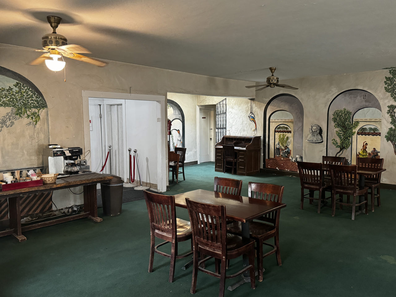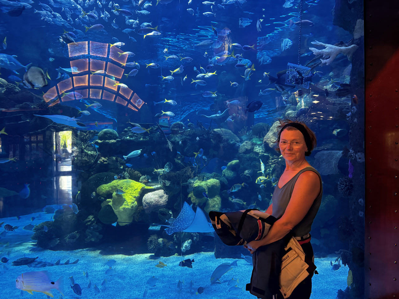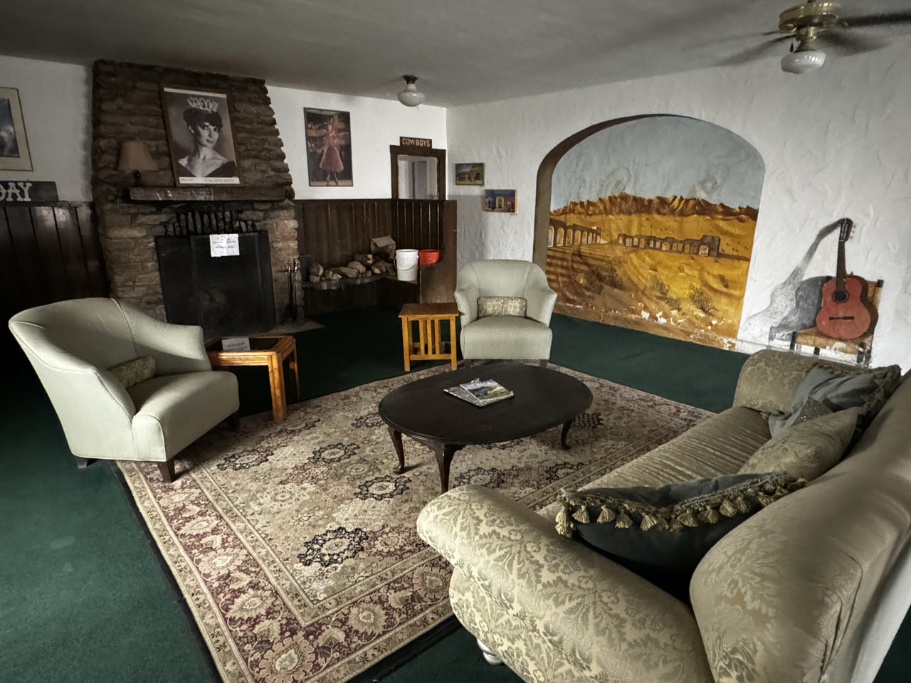 Wir verlassen die sündige Stadt Richtung Westen und machen Mittags einen Halt im Silverton Hotel zum „abkühlen“. Dort drin ist ein großes Aquarium und der größte Jagd- und Angelshop in Nevada. Auf der Fläche eines Fußballstadions schlendert man zwischen Szenen ausgestopftem Großwilds und einem Waffenarsenal hindurch, das die Bundeswehr ihrer Materialsorgen entledigen würde. Auf dem Weg zum Death Valley kämpfen wir uns durch einen Sandsturm bei 44‘C bis Death Valley Junction. Hier in the Middle of Nowhere steht seit 1924 einsam an der Kreuzung (Junction) das Armargosa Hotel. Es soll in den 1950er Jahren wohl mal renoviert worden sein, sieht von außen aber aus wie eine Ruine. Wir wollen hier dennoch übernachten, da wir morgens um 4 Uhr von hier das Death Valley bei Nacht (und hoffentlich nur 35‘C) durchfahren wollen. Erstaunlicherweise ist es innen mit einem morbiden Charme ganz nett und die Dusche und die Klimaanlage funktionieren - was will man mehr 😁