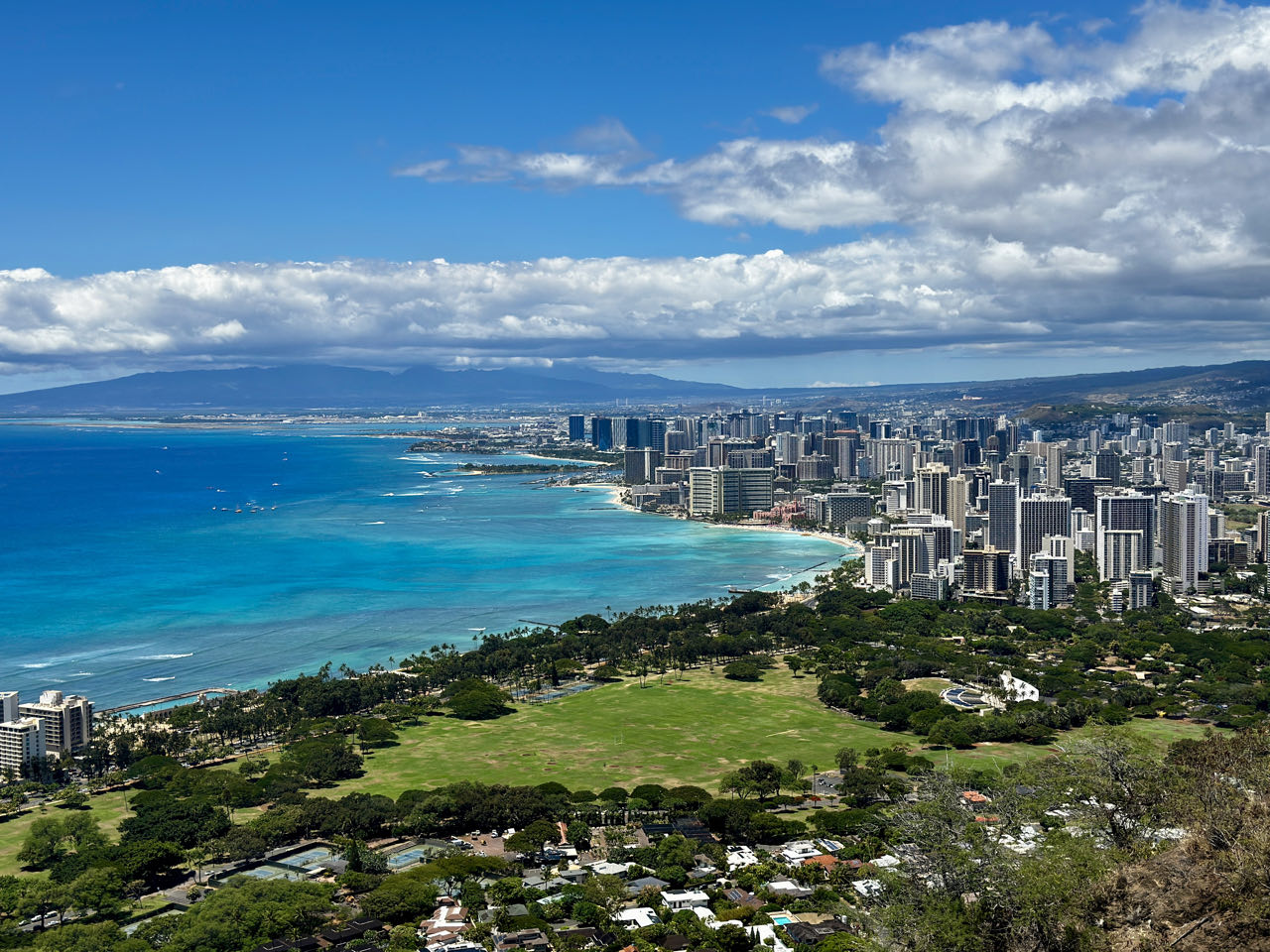In 5 Tagen wollen wir O‘ahu erkunden. Zuerst besteigen wir den Diamond Head Krater, um einen fantastischen Blick auf Honolulu zu erhalten. Danach lassen wir uns von der bunten Pflanzenwelt und den Traumstränden bezaubern. Der Pazifik läd mit 29‘C Wassertemperatur zum Baden ein. Weiter im Norden ist das Paradies der Wellenreiter 🏄♀️🏄♂️