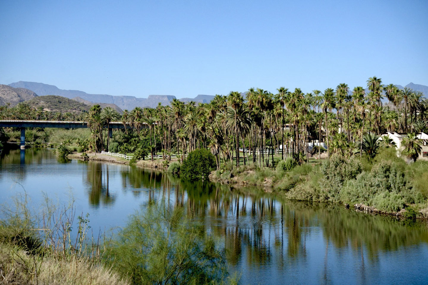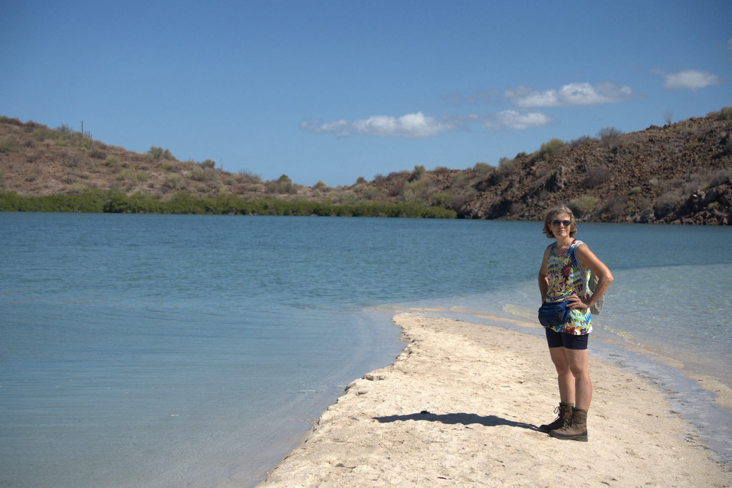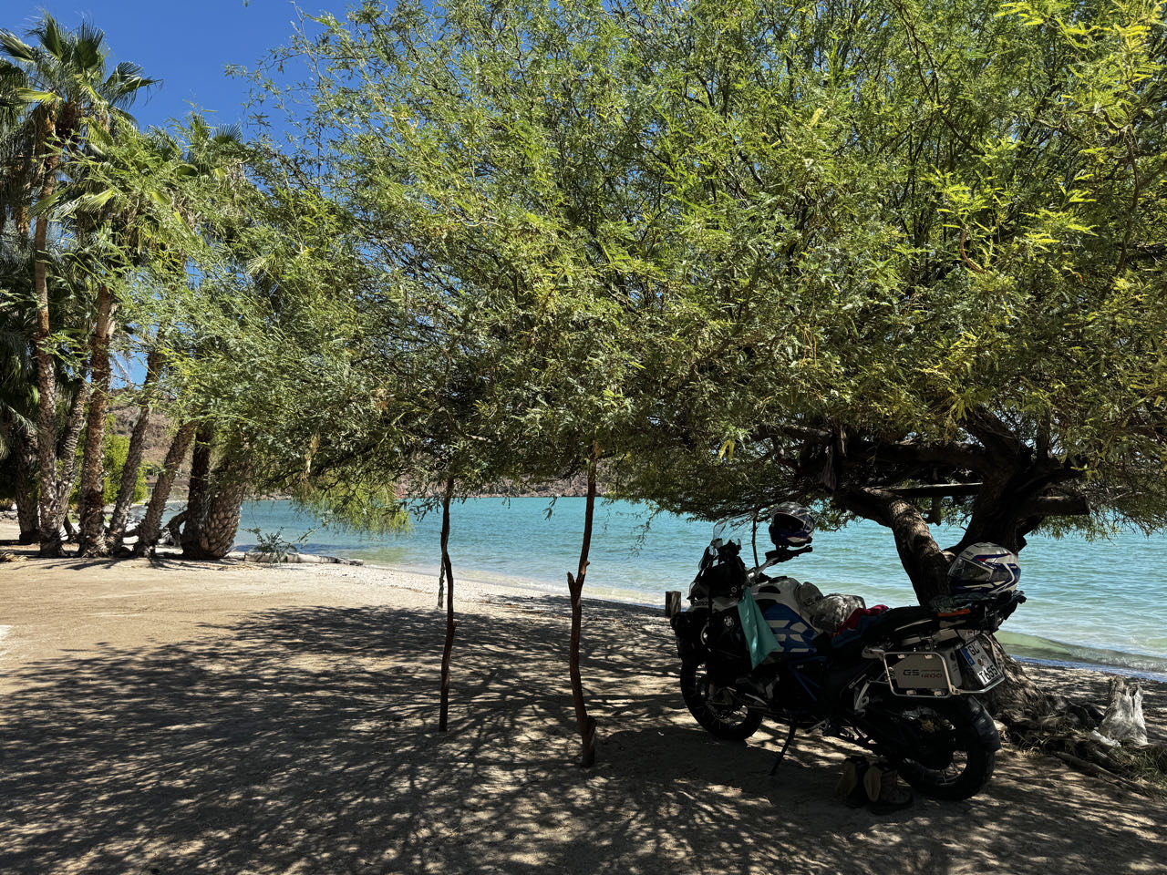 Wir durchqueren die Baja nach Osten zum Golf von Kalifornien. In San Ignacio, einer palmengesäumte Oase inmitten der Kakteenwüste, machen wir einen Zwischenstopp. Die Missionskirche stammt aus 1728. Die Ostküste der Baja California ist berühmt für ihre schönen Strände. Daher legen wir hier einen Badetag ein und entspannen uns im 30‘C warmen Meer. Im ebenfalls grünen Mulegé haben wir eine klimatisierte Hütte mit Aussicht angemietet. Die Schmusekatze „Bisquit“ hat uns hier schon erwartet 😅