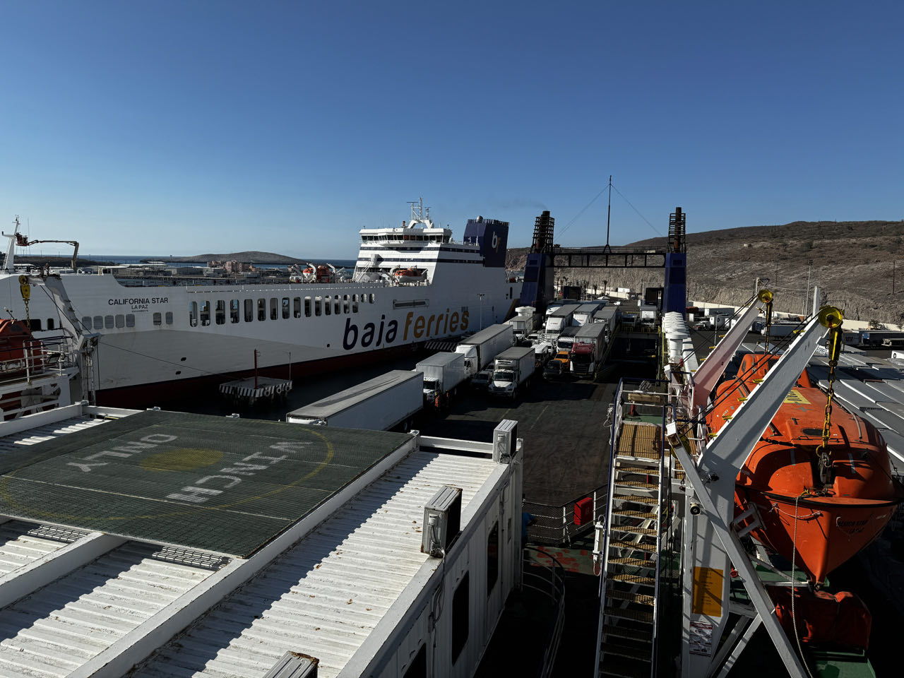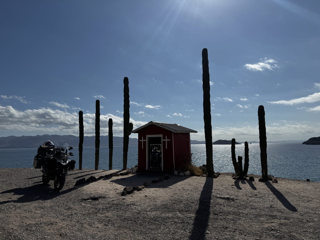 Im südlichen Teil der Baja California ist nun „kilometerfressen“ angesagt. Von Mulegé bis zur Fähre in La Paz sind es 485 Kilometer durch die Kakteenwüste. Hier ist bei 38‘C nichts außer Sand, Berge und Saguaro-Kakteen ☀️🌵