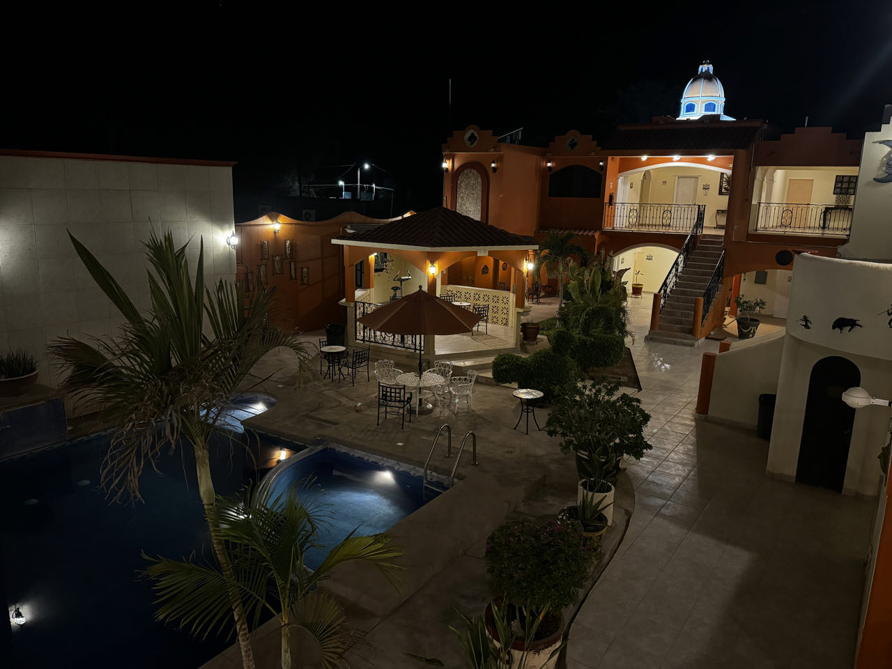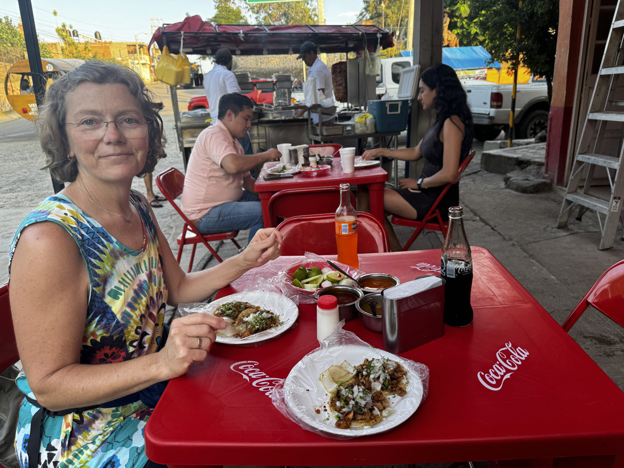 Nach einer Zwischenübernachtung in einem bezeichnenderweise„Oasis“ benannten, sehr preiswerten Hotel mit Pool mitten in der Wüste, erreichen wir nachmittags La Paz. Über Nacht bringt uns die Fähre in 13 h zum mexikanischen Festland nach Mazatlán. Von hier sind es noch einmal 425 km bis zu unserem Tagesziel Tequila. Abends essen wir an einem beliebten Straßengrill Tacos al Pastor (gegrilltes Schweinefleisch mit speziellen Soßen) - lecker, aber mal sehen, was mein Magen dazu sagt 😟