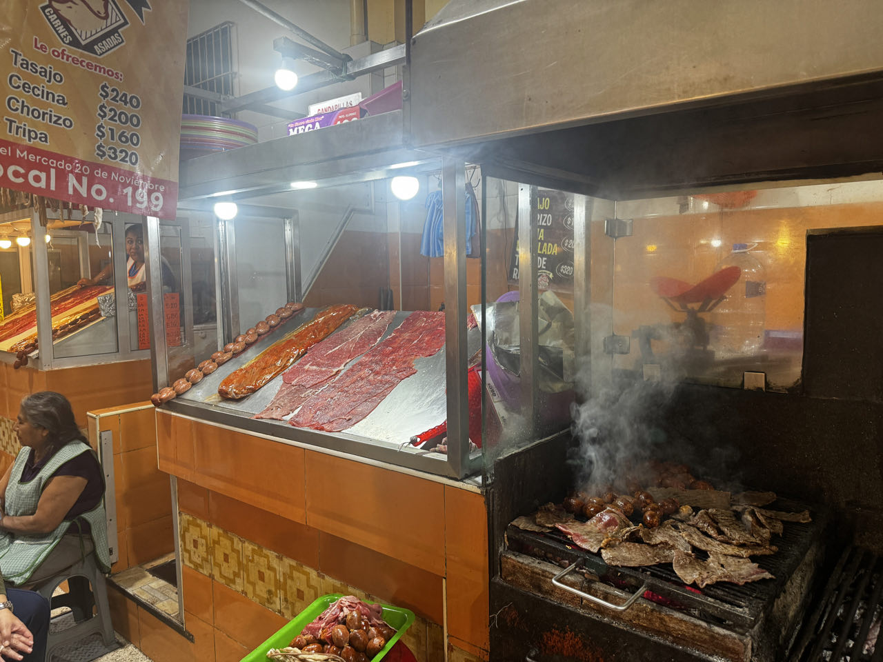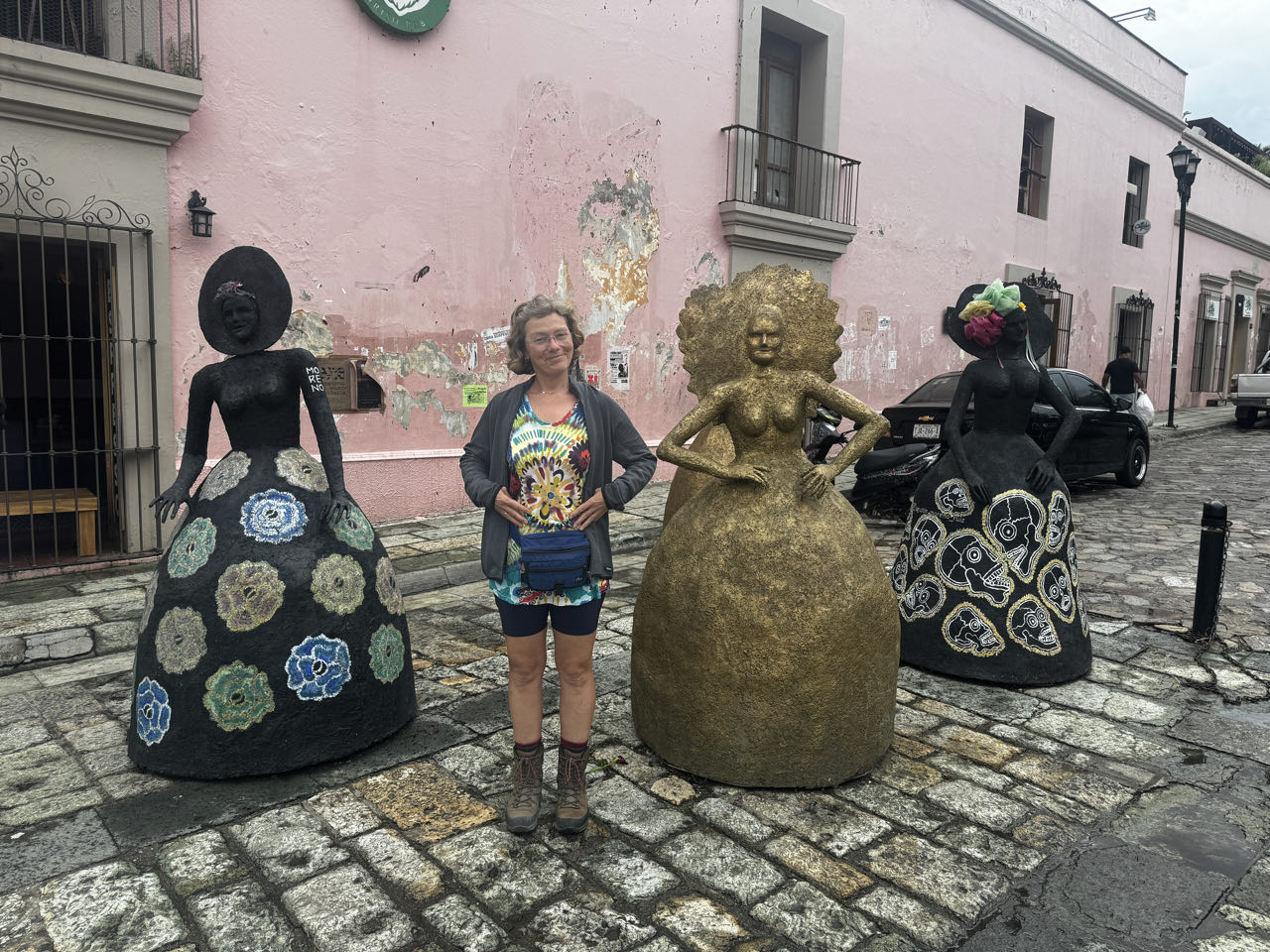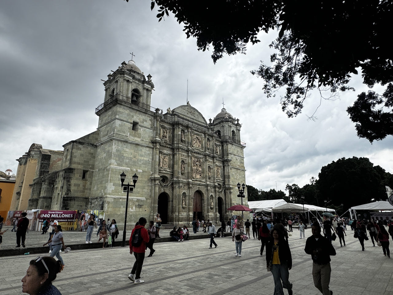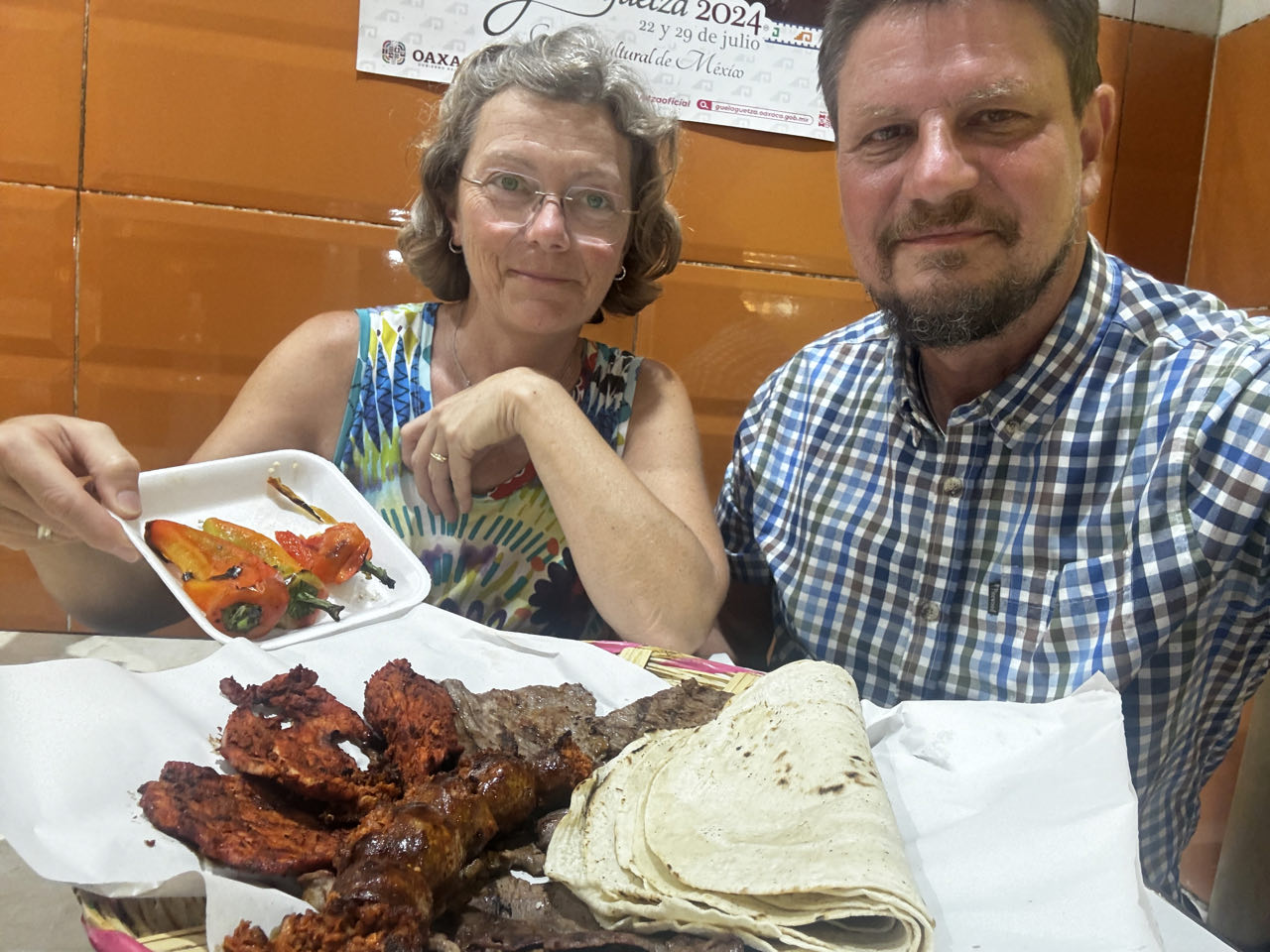 Oaxaca - das im spanischen Kolonialstil errichtete historische Zentrum der Stadt mit dem unaussprechlichen Namen gehört zum UNESCO-Weltkulturerbe. Auffällig sind hier vor allem die bunten Wandbilder, unzählige Kunstgalerien und schöne Innenhöfe. Über die bunt geschmückte Promenade Andador Turístico kommen wir zur Kathedrale von Santo Domingo de Guzmán. Vor einem Regenschauer flüchten wir in die Casa Mayordomo auf zwei Indio-Bierchen 🍻. Wieder im Trockenen schlendern wir am Zócalo vorbei zum Mercado. In fußballfeldgroßen Hallen gibt es von Kleidung über Obst und Gemüse bis hin zu Getränke- und Essensständen alles zu kaufen, was es in México gibt. Wir probieren Oaxacas Spezialität „Mole Negro“ (eingedickte scharfe Soße) und die Mezcals (Agavenschnaps, der hier nicht Tequila heißen darf). Bei den Chapolines (geröstete Heuschrecken) beschränkten wir uns auf ein Foto 🤪 Wir essen dann doch lieber „Carne Asada“ frisch von Holzkohlegrill 😋