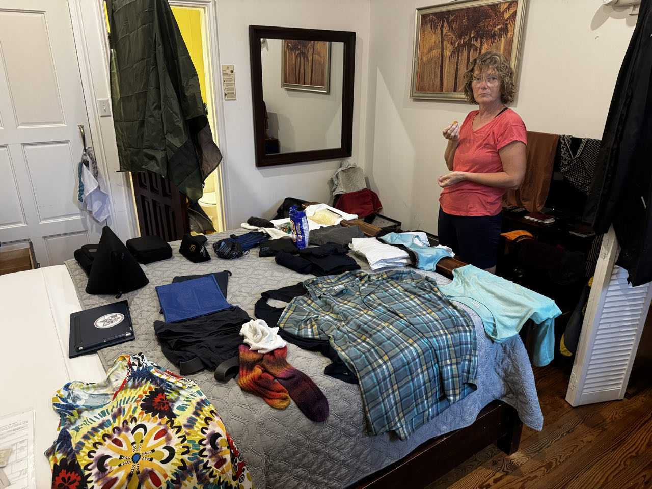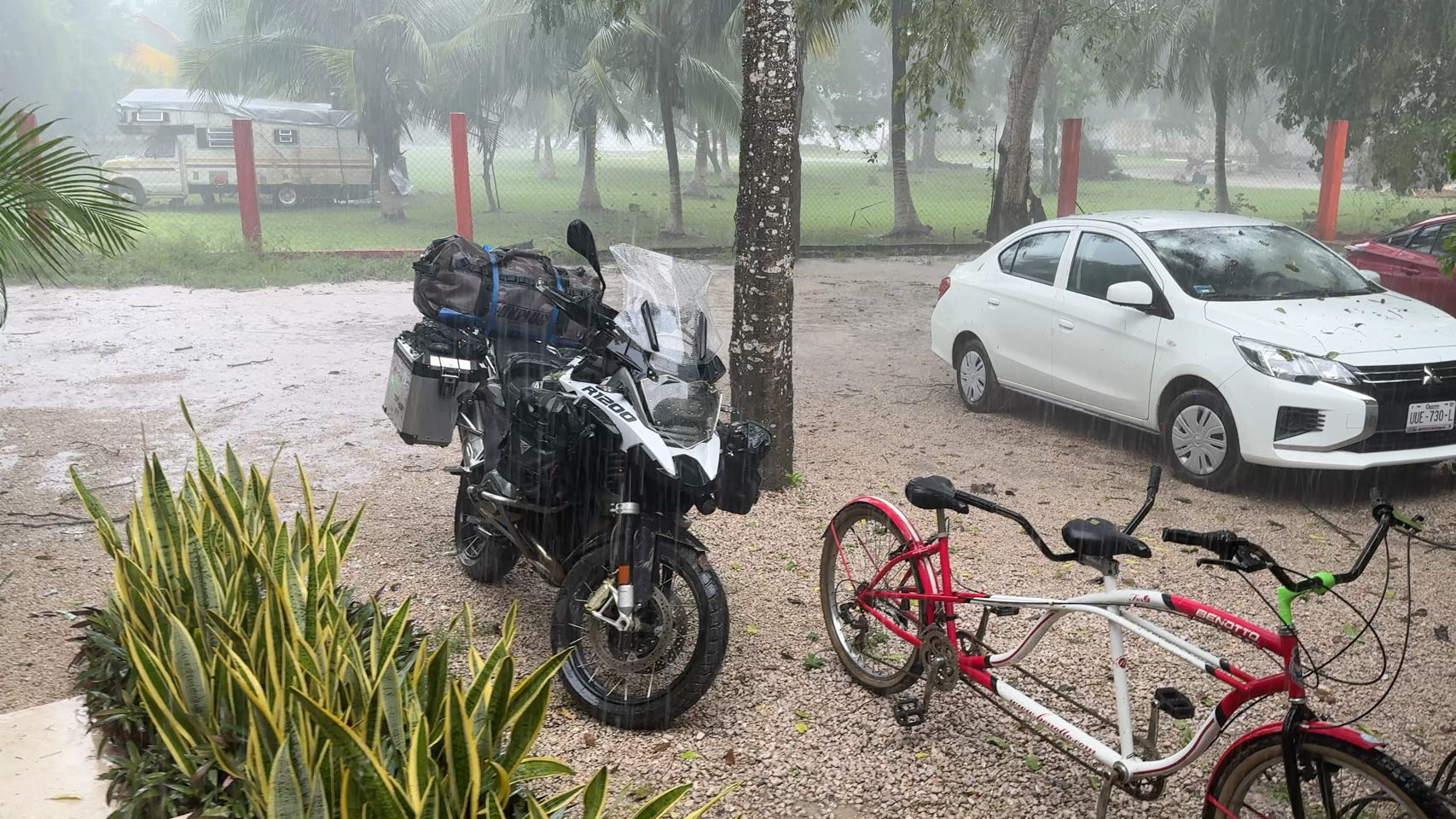 Es hat die ganze Nacht geschüttet und als wir nach dem morgendlichen Kaffee aufbrechen wollen, gießt es immer noch in Strömen. Wir müssen auf dem Weg nach Belize mitten durch das Auge des karibischen Tropensturms Nadine. Zeitweise sind die Straßen immer wieder überflutet und es prasselt nur so auf uns ein. Immerhin verlief die Ausreise aus Mexiko und Einreise nach Belize weitgehend nach Plan. Die illegale Einreise unserer Drohne nach Belize hat uns 50$ gekostet 🤷🏼‍♂️ Leider hat unser Gepäck in den Koffern wie befürchtet den nassen Höllenritt nicht trocken überlebt. Mal sehen, was die Klimaanlage bis morgen früh so alles zu trocknen vermag. Aber hey - wir sind in Belize 🇧🇿😀