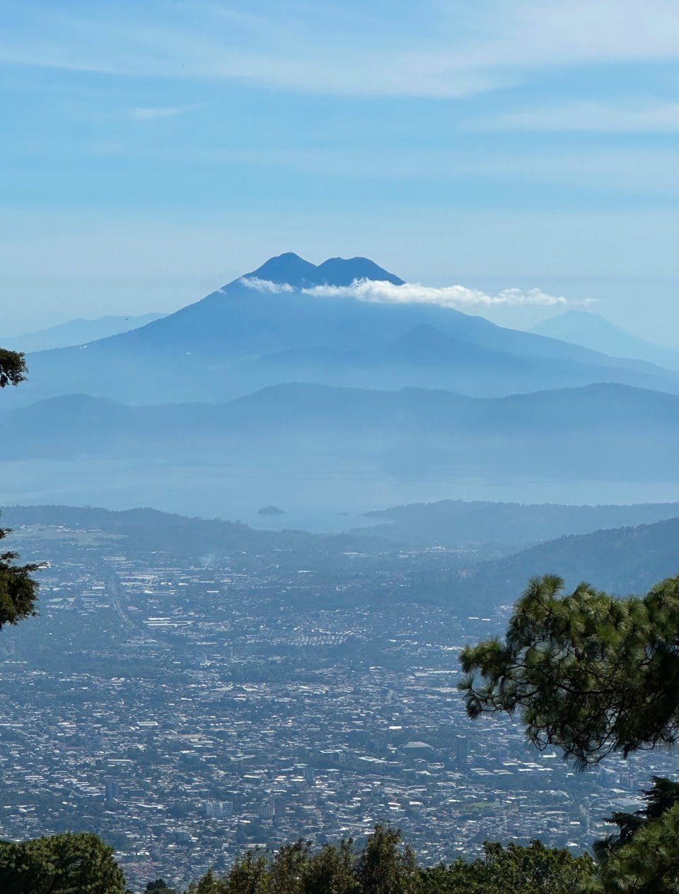 Die Hauptstadt El Salvadors mit ihren 1,7 Mio. Einwohnern im Großraum durchqueren wir nur auf der Stadtautobahn. In einem amerikanisch geprägten Supermarkt versorgen wir uns mit den wichtigsten Vorräten (😋) und erklimmen die steile Straße zu unserer Unterkunft auf 1.500 m über der Stadt am Hang des Vulkans El Boqueron. Die Aussicht von hier auf die Millionenstadt ist atemberaubend.