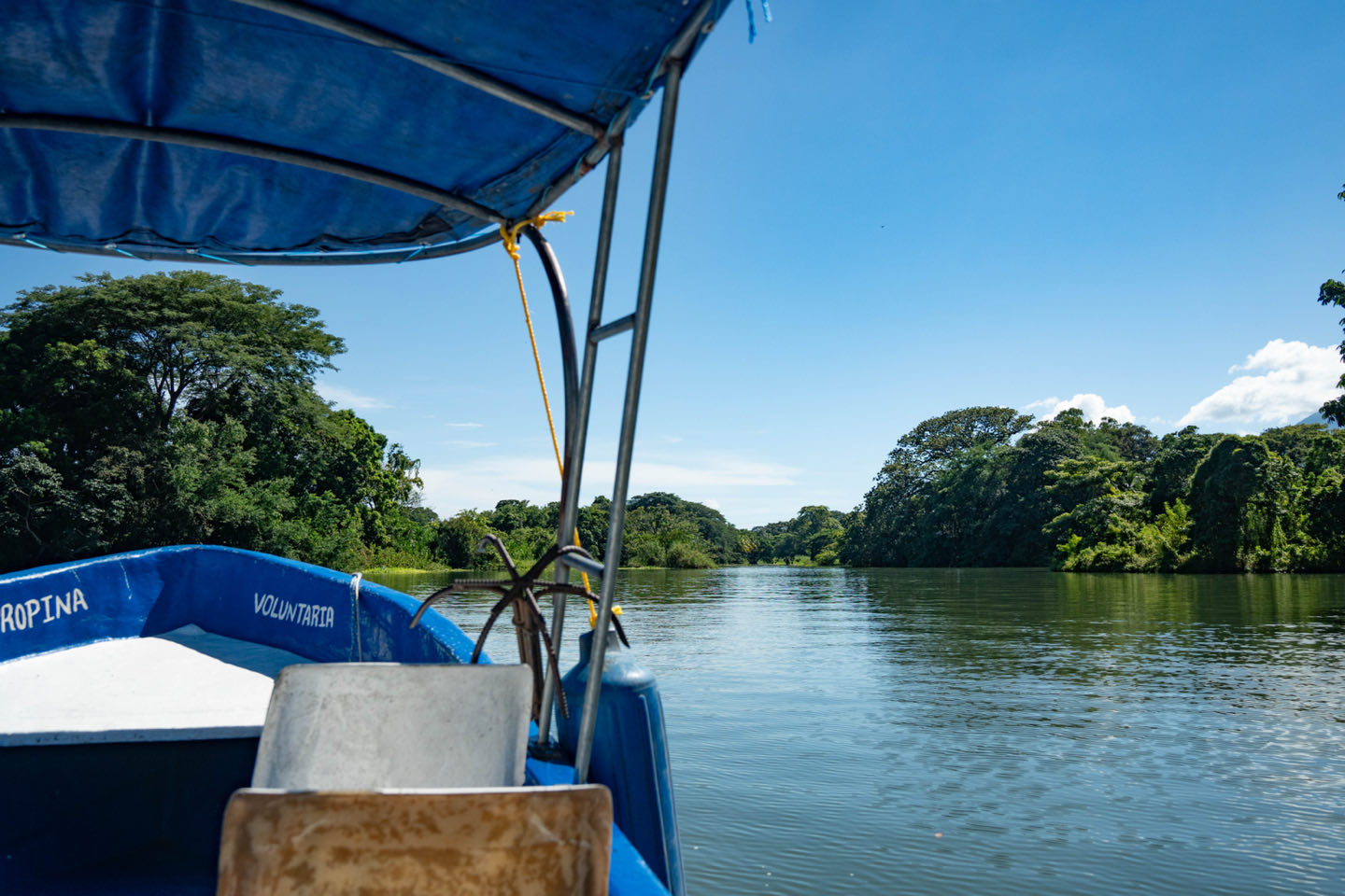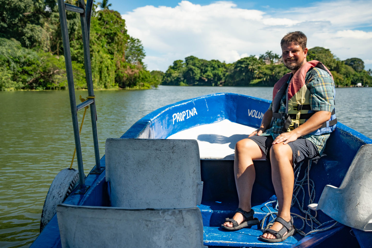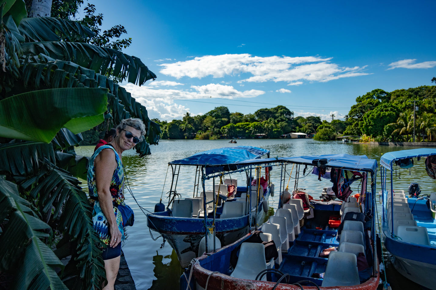 Granada liegt am großen Nicaraguasee und vorgelagert befinden sich über 300 kleine Inselchen im See - die „Isletas de Granada“. Wir sprechen Einheimische am Hafen an und charten eine private Bootstour durch die Inselwelt. Nach der Betankung einer 5L-Perwollflasche mit 2-Taktmischung geht es über den See in das Insellabyrinth. Wir fahren zuerst an Inseln mit prächtigen Villen von Kaffeeplantagenbesitzern und nicaguranischen Industriellen vorbei. Auf einer winzigen Restaurantinsel machen wir eine kleine Bierpause mit traumhaften Ausblick auf den See. Nach der Pause sind die Inseln dann überwiegend von dichtem Dschungel bewachsen und m Hintergrund ist der Vulkan Mombacho zu sehen. Die Tier- und Pflanzenwelt hier ist atemberaubend 😍 Nach einem erlebnisreichen Tag verbringen wir den Abend im grünen Innenhof des orientalischen Restaurants „Pita Pita“ (Danke für den Tipp an Ute und Uwe von www.travel2u.de).