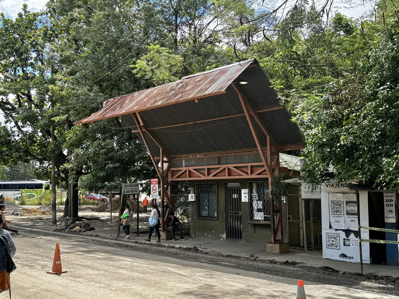 Die Ausreise aus Nicaragua gestaltet sich vergleichsweise einfach (Zollformular von einem Officer an der Straße erhalten und ausfüllen, vor der Migración parken, in der Migración 1 US$ pP Eintritt bezahlen und Ausreisestempel für 3 US$ pP bekommen, im Büdchen am Parkplatz das gesamte Gepäck auf dem Motorrad durchwühlen lassen - „nein, wir haben keine Drohne mit“ - und auf dem Zollformular die Inspektion vermerken lassen, im Büdchen nebenan von einer Polizistin Zollformular stempeln lassen, im Gebäude mit dem Schild „kein Eingang“ 😂das gestempelte Zollformular in den Computer eintragen lassen und nochmal stempeln und TIP wird storniert, weiterfahrt Richtung Costa Rica, ein Officer behält das buntgestempelte Zollformular ein). Alles in Allem ca. 30 Minuten.