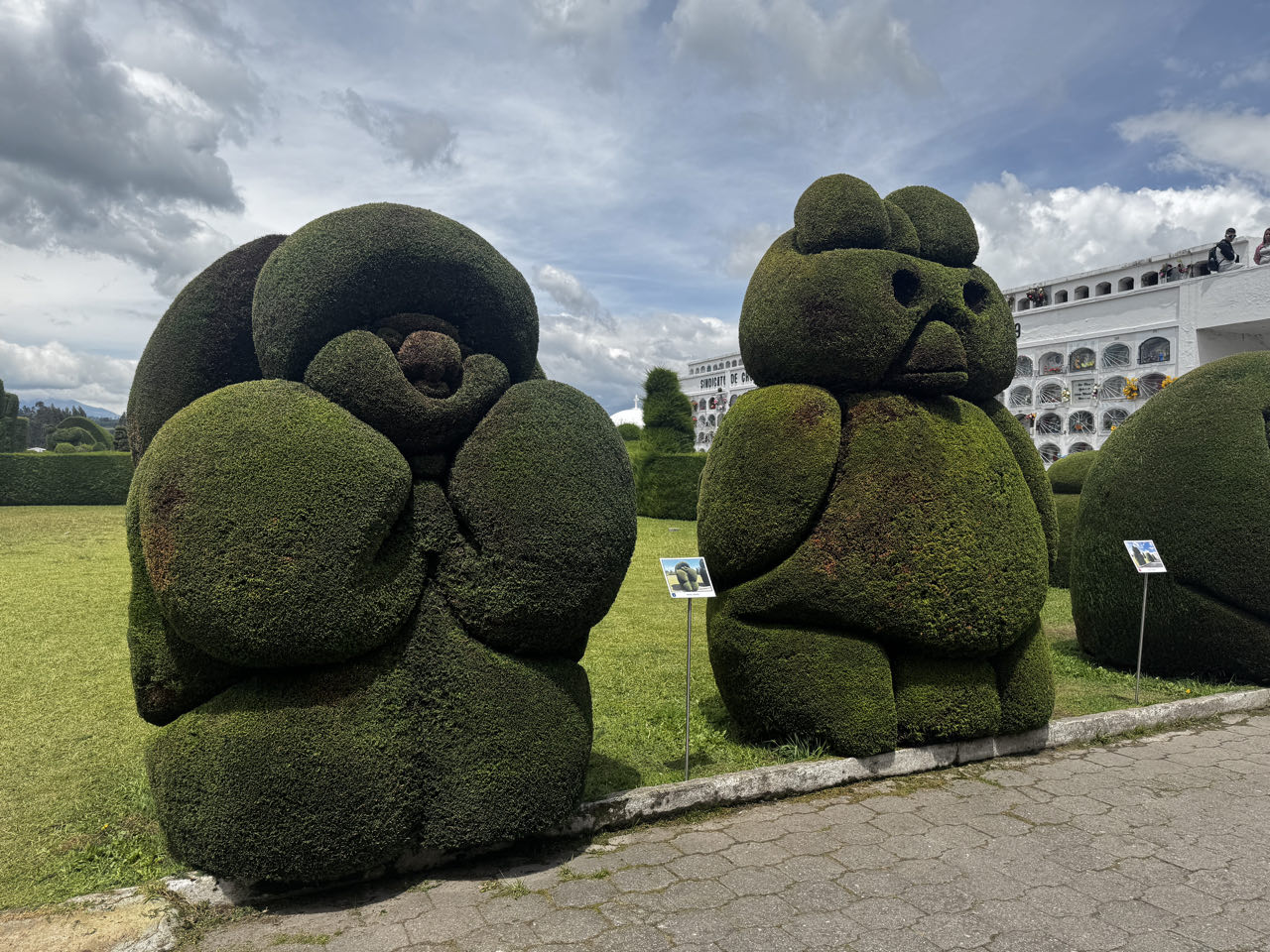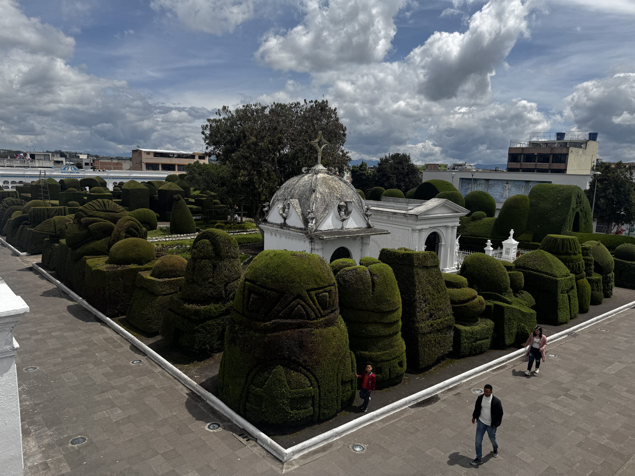 Der Friedhof in Tulcán auf rd. 3.000 m Höhe ist für seine kunstvollen Zypressen-Formschnittfiguren bekannt. Auf einem großen Areal verteilen sich die Figuren entlang der langen Reihen von weiß getünchten Mausoleen.