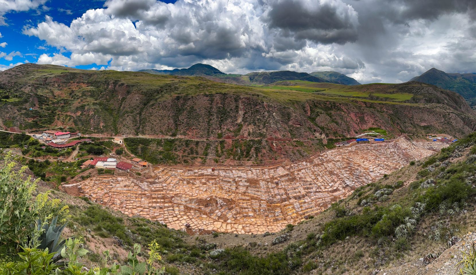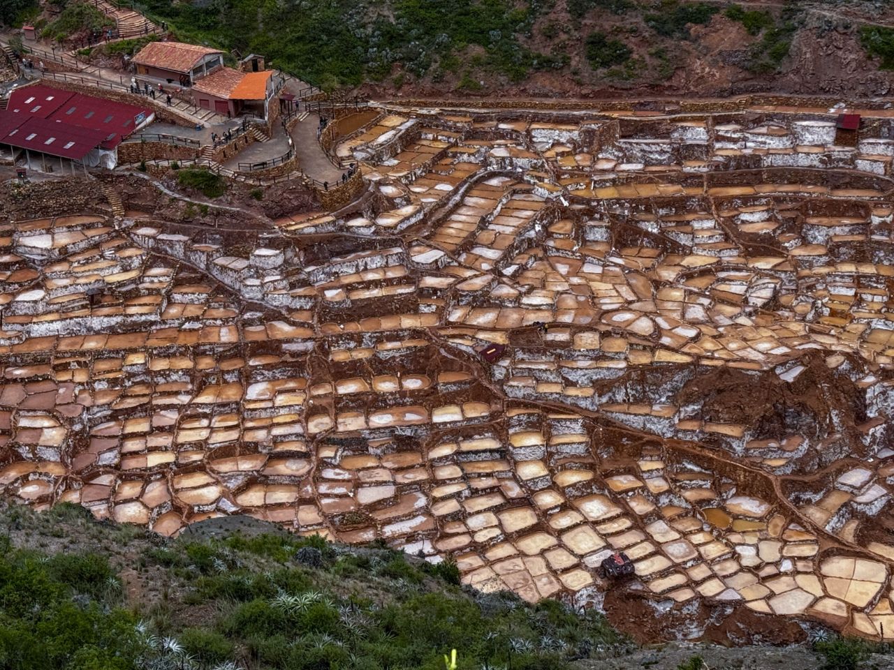 Oberhalb des heiligen Tals südlich von Urubamba fahren wir über eine 6km lange Naturstraße (Lehmpiste) zu den Salinen von Maras. Seit Jahrhunderten wird hier durch Verdunstung des Wassers einer salzhaltigen Quelle feinstes Speisesalz gewonnen. Über 5000 Becken werden hier von mehreren Familien bewirtschaftet.