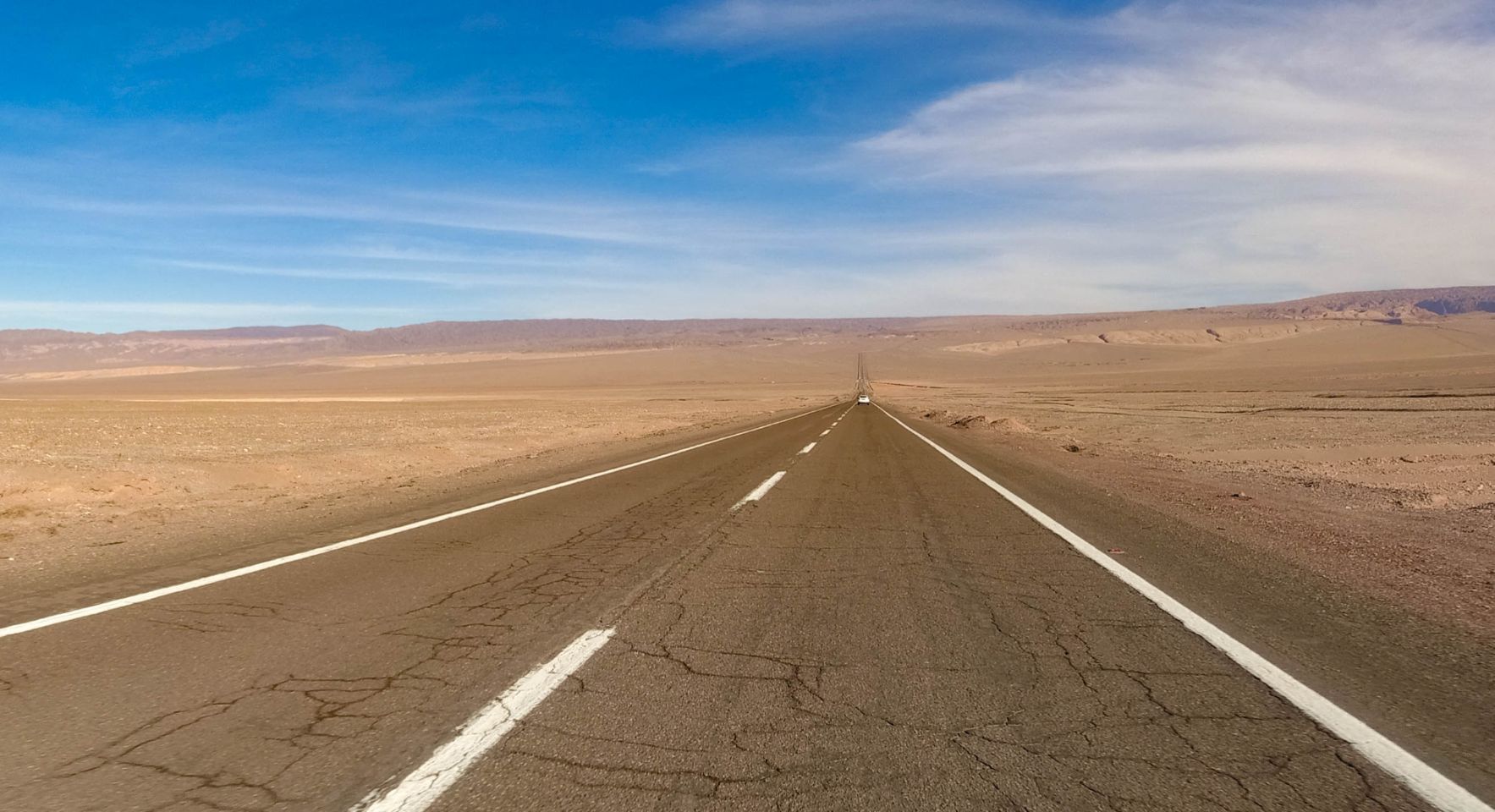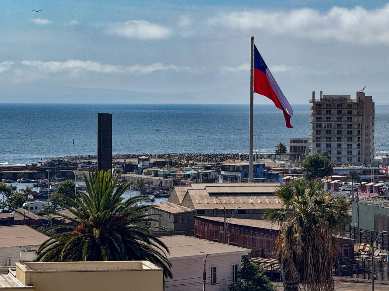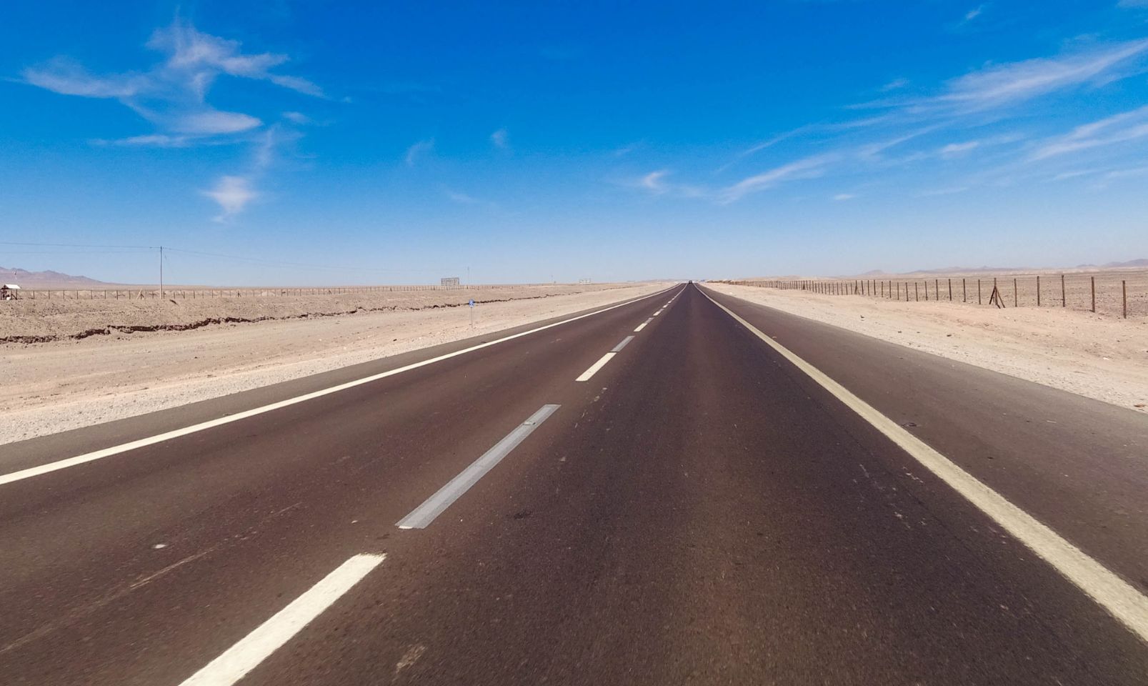 Nach 6 Wochen Andenhochland kommen wir in Antofagasta wieder ans Meer. Zunächst müssen wir allerdings 310 km quer durch die Atacama-Wüste fahren. Die sehr gut ausgebauten Straßen verlaufen teils kilometerlang geradeaus, an riesigen Wind- und Solarparks vorbei. Auf den 200km von Calama bis Antofagasta ist die No. 5 eine kostenpflichtige Autobahn (ca. 3,50€/Motorrad) - langweilig, aber wir kommen mit Tempomat 110km/h gut voran 😀.