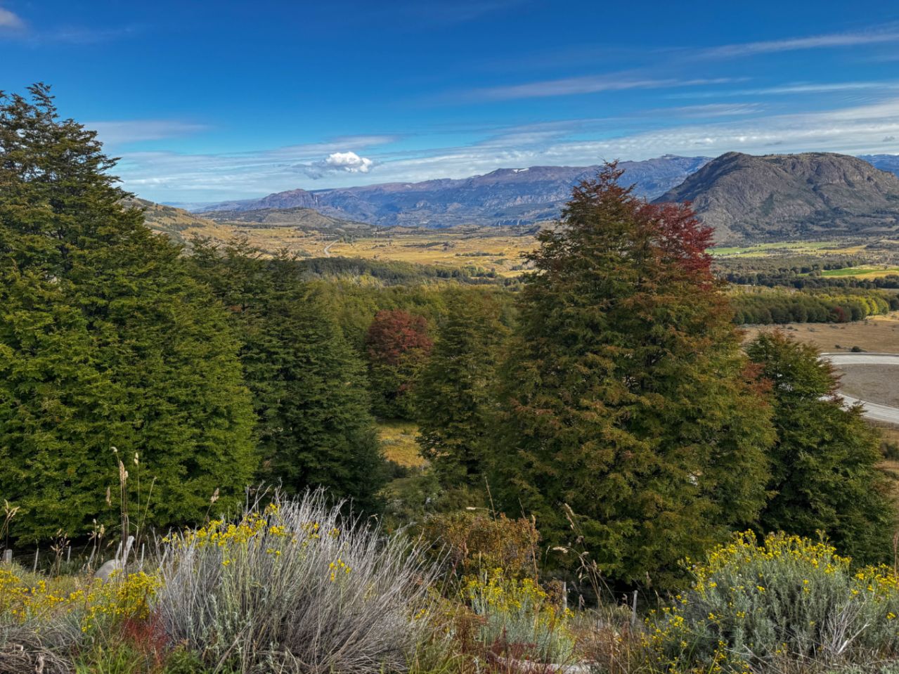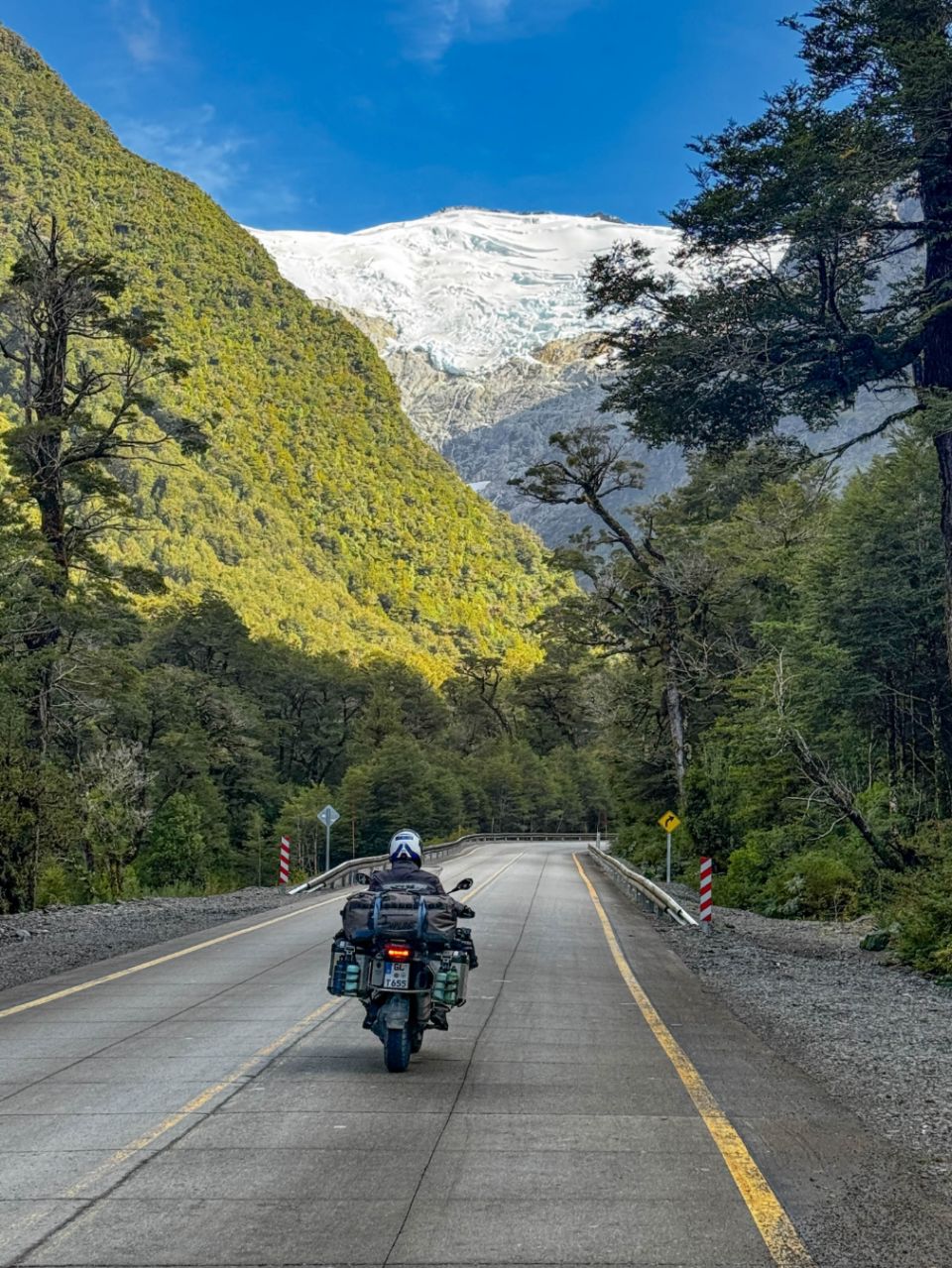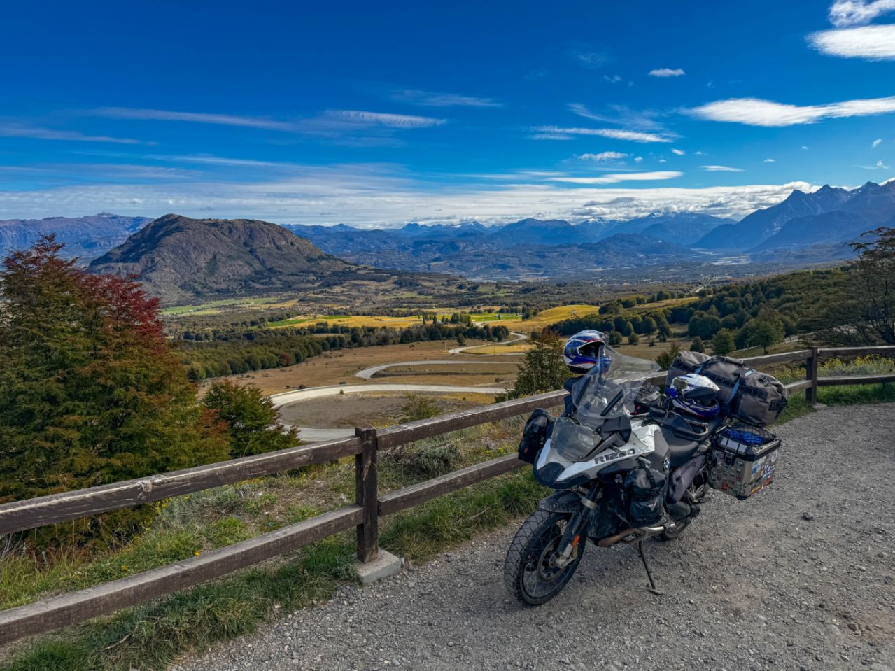 Zudem führt die Carretera Austral durch malerische Landschaften: schneebedeckte Berge, dichte Wälder und weite Täler. Die vermehrt bunt gefärbten Blätter der Bäume zeigen an, dass so langsam der Herbst auf der Südhalbkugel einzieht. Es wird für uns daher höchste Zeit nach Feuerland zu kommen, bevor der erste Schnee dort unsere Fahrt mit dem Motorrad unmöglich machen würde.