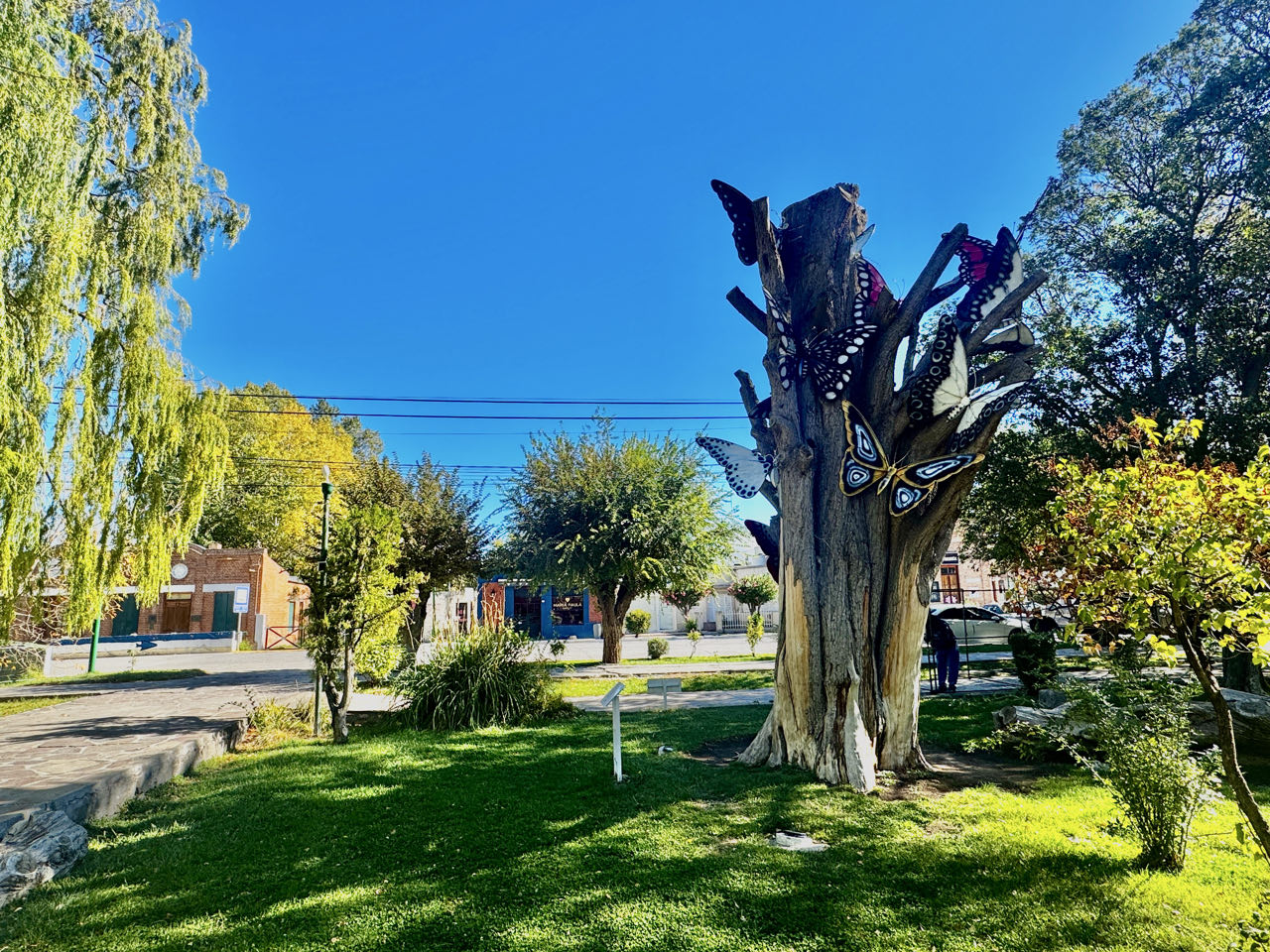 Der Ort mit einem schönen Park unterscheidet sich kolossal von anderen Orten in Argentinien. Hier ist alles grün und voller alter Bäume.