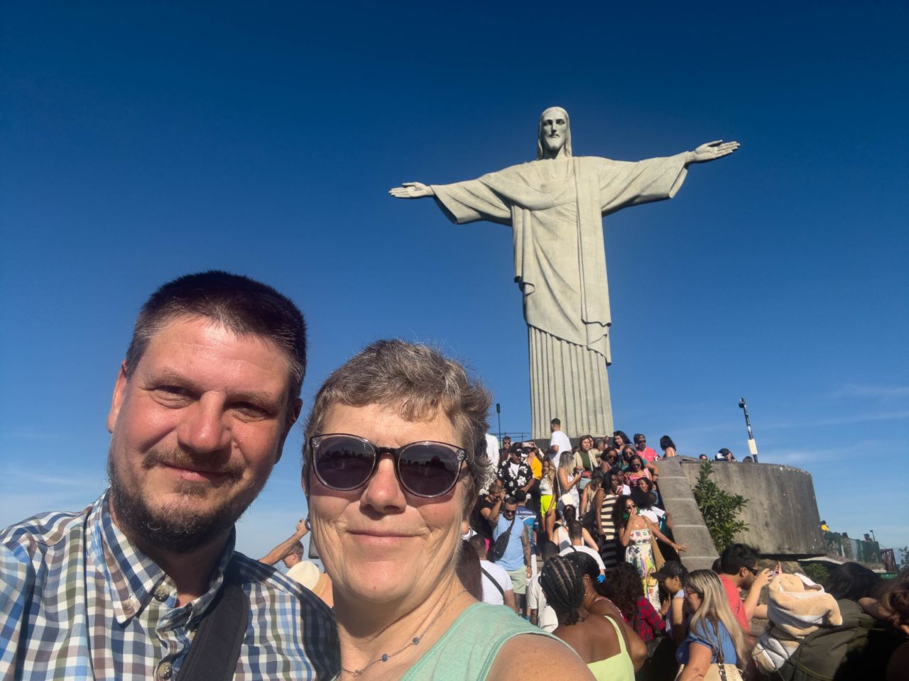 Nach Zweieinhalb Stunden Flug von Iguazú aus kommt das riesige Häusermeer unter uns in Sichtweite. Wir starten früh morgens unsere Besichtigungstour auf dem 700 m hohen Corcovado mit der berühmten Statue "Christo Redentor" (Christus der Erlöser). Mit Uber und Zahnradbahn erreichen wir die Aussichtsplattform, die wir uns jetzt in der Nebensaison mit "nur" wenigen tausend (statt Zehntausenden 😬) anderen Touristen teilen müssen. Der Blick von hier auf die Stadt mit dem Zuckerhut im Hintergrund ist atemberaubend!