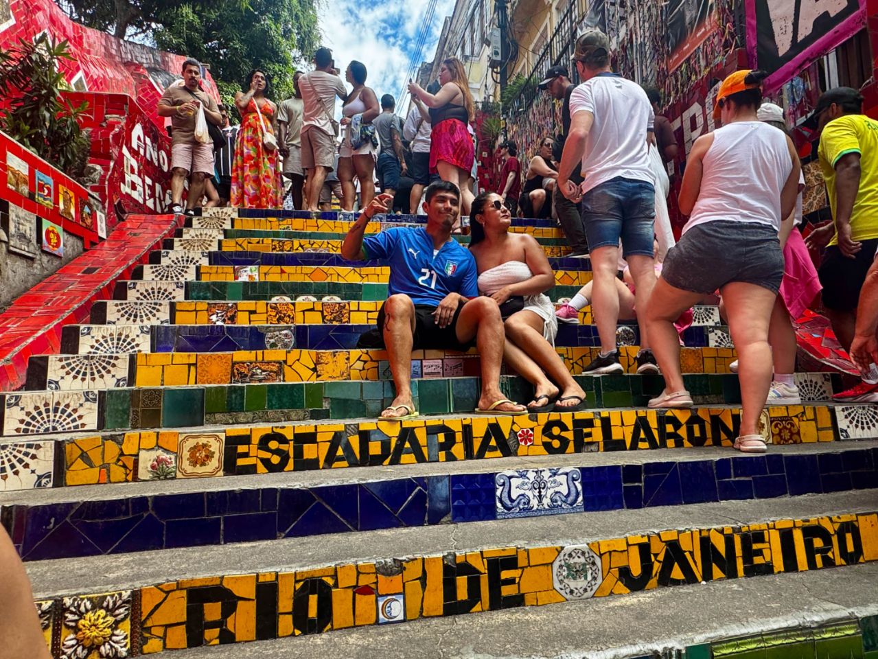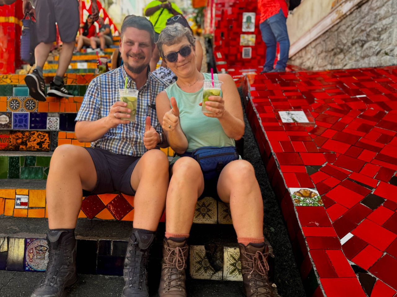 In der Innenstadt werden wir quasi genötigt, uns mit dem brasilianischen Nationalgetränk "Caipirinha" (350 ml ca. 1,45€) an der Escadaria Selarón (eine mit farbenfrohen und handbemalten Fliesen verzierte Treppe) vertraut zu machen ☺️. Anschließend überdenken wir den sündigen Genuss in der architektonisch auffälligen Kathedrale 😇, bevor wir gegen Abend den Sonnenuntergang auf dem Zuckerhut bei einer fantastischen Aussicht genießen 😎.