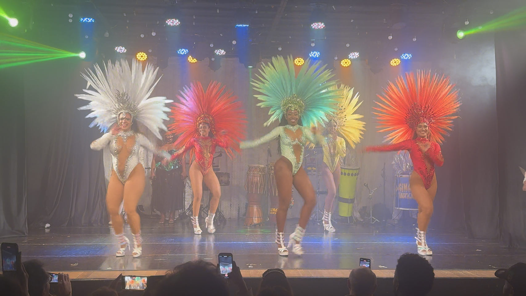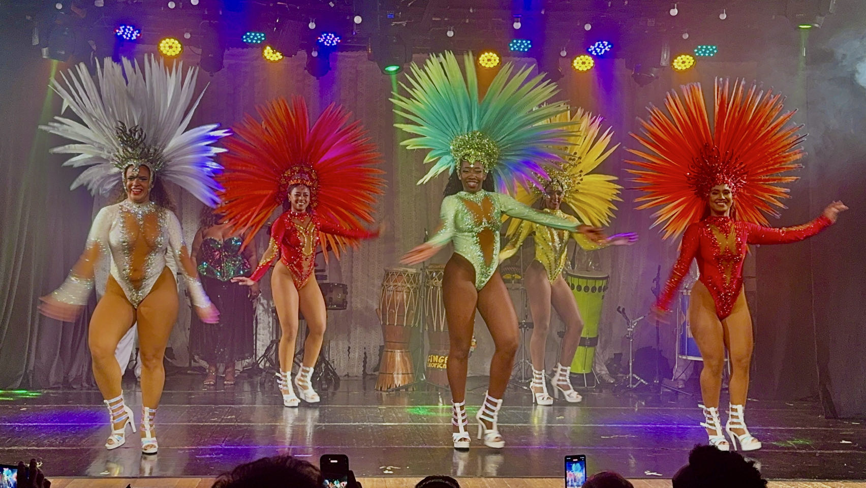 Samba … in der Stadt des Karnevals dreht sich das ganze Jahr über alles um den Tanz der lebhaften Rhythmen und schnellen Hüftbewegungen. Wir schauen uns die Tänzerinnen mit farbenfrohen Kostümen in einer Tanzshow an.