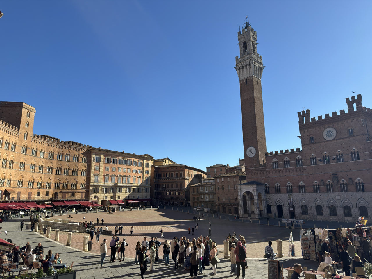Heute besuchen wir Siena, die kleine Schwester von Florenz - auch wenn sie das sicher nicht gerne hört. Im späten Mittelalter kämpften die beiden Metropolen um die Vorherrschaft in der Toskana. In Siena ist alles etwas kleiner und entspannter als in Florenz. Die Stadt fasziniert mit ihrer atemberaubenden gotischen Architektur, den engen, verwinkelten Gassen und der einzigartigen muschelförmigen Piazza del Campo.