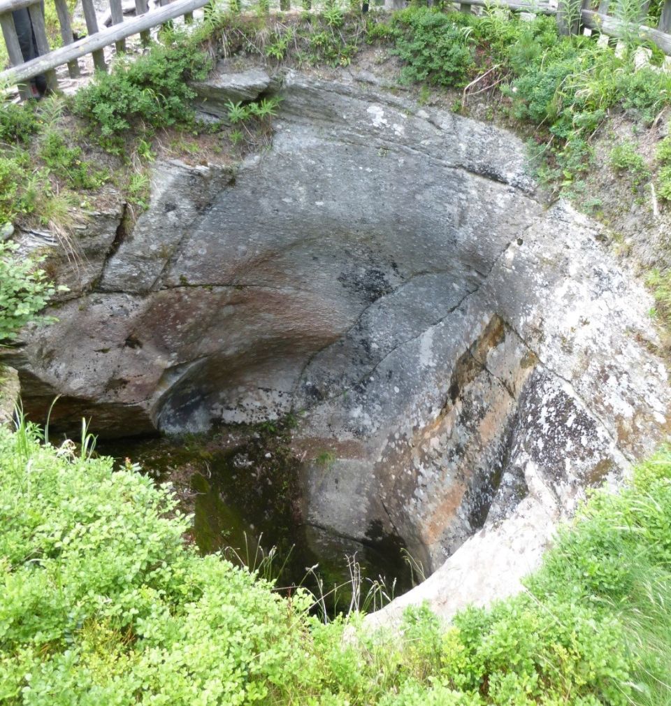 Die Gletschertöpfe am Malojapass sind dem Menschen bis heute noch ein Rätsel, da noch niemand die genaue Entstehung beobachten konnte. Das Eis floss zur Eiszeit gegen das Gefälle über den Felsriegel des Malojapasses hinweg. So entstand an dem stauenden Felsriegel unter dem Eis ein so hoher Wasserdruck, dass sich dort unter dem Eis Wirbel bildeten, die zusammen mit dem sich im Wasser befindenden Kies und Sand die bis zu 11 m tiefen Gletschertöpfe ausschürften.