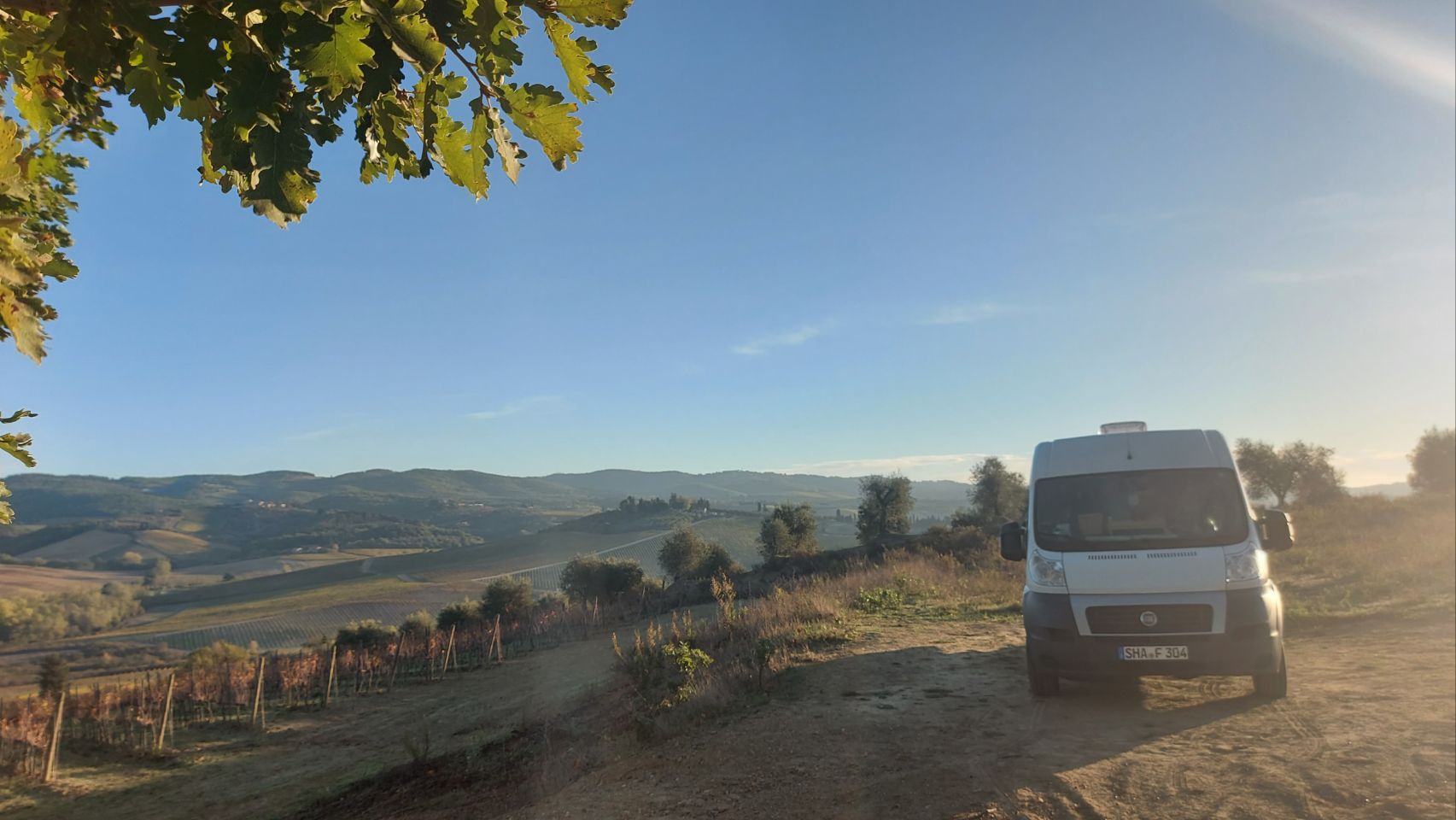 Nach einer dreiviertel Stunde Fahrt in Richtung Siena erreichen wir einen kleinen Friedhof Mitten in den Weinbergen.