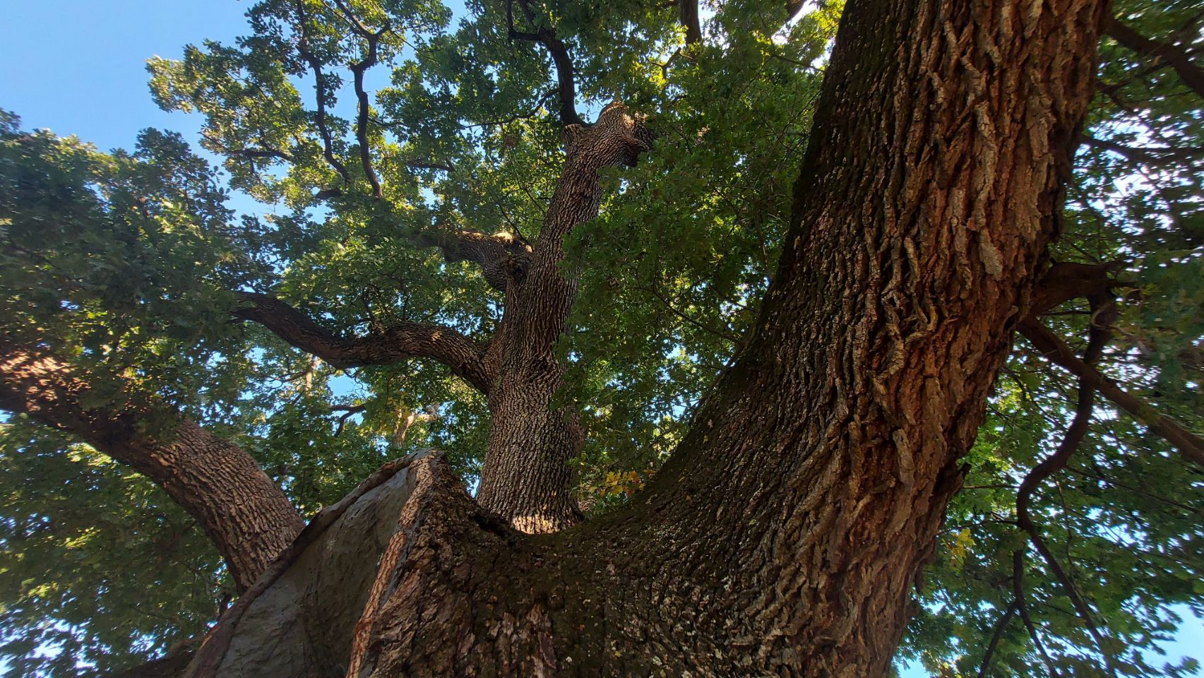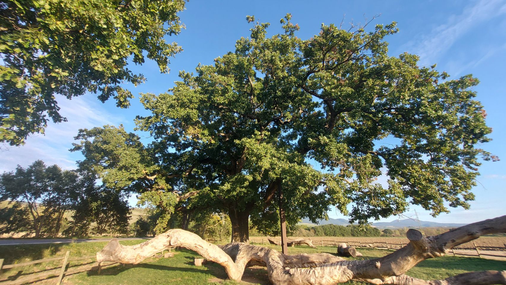 Die Fahrt führt uns über Zigzag-Straßen und vorbei an einer vierhundert Jahre alten Eiche auf den Berg von Radicofani. Hier stellen wir Frido vor die Friedhofsmauer. Rings herum präsentiert sich uns im letzten Tageslicht ein wunderbares Panorama über das Val d'Orcia, hinter uns ragt der markante Burgturm der Fortezza di Radicofani in den dunkler werdenen Himmel. Später geht der Halbmond über der Festung auf.