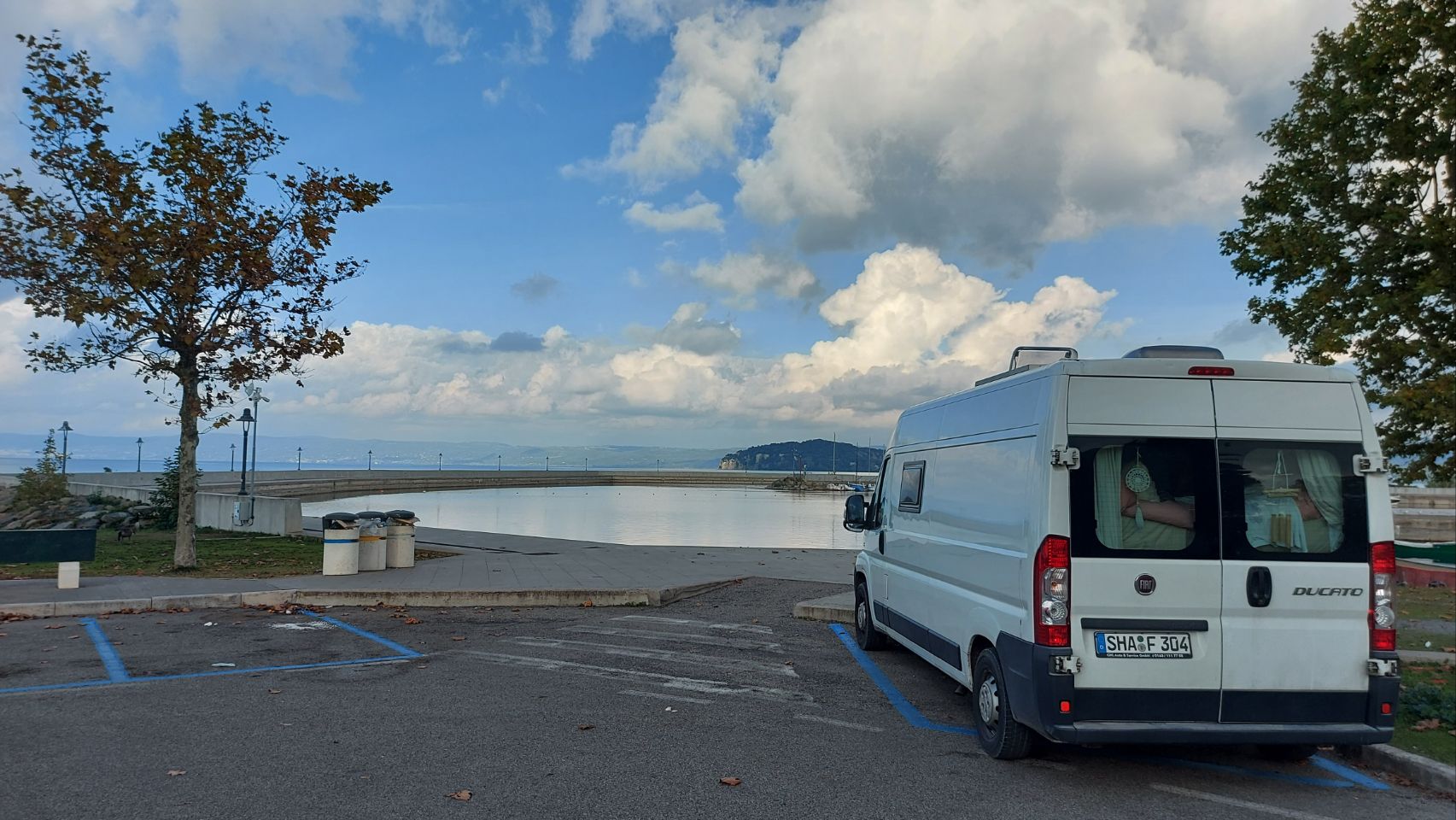 Während ich mit Flips eine Runde durch den nahen Park drehe, macht Fini im Bus etwas klarschiff und bereitet überbackene Brote vor. Wir beschäftigen uns den Nachmittag über mit der weiteren Reiseplanung. Das Wetter soll die nächsten Tage regnerisch werden, also fallen so Aktionen wie eine Wanderung auf den Vesuv oder ein Besuch der Amalfi-Küste voraussichtlich ins Wasser.