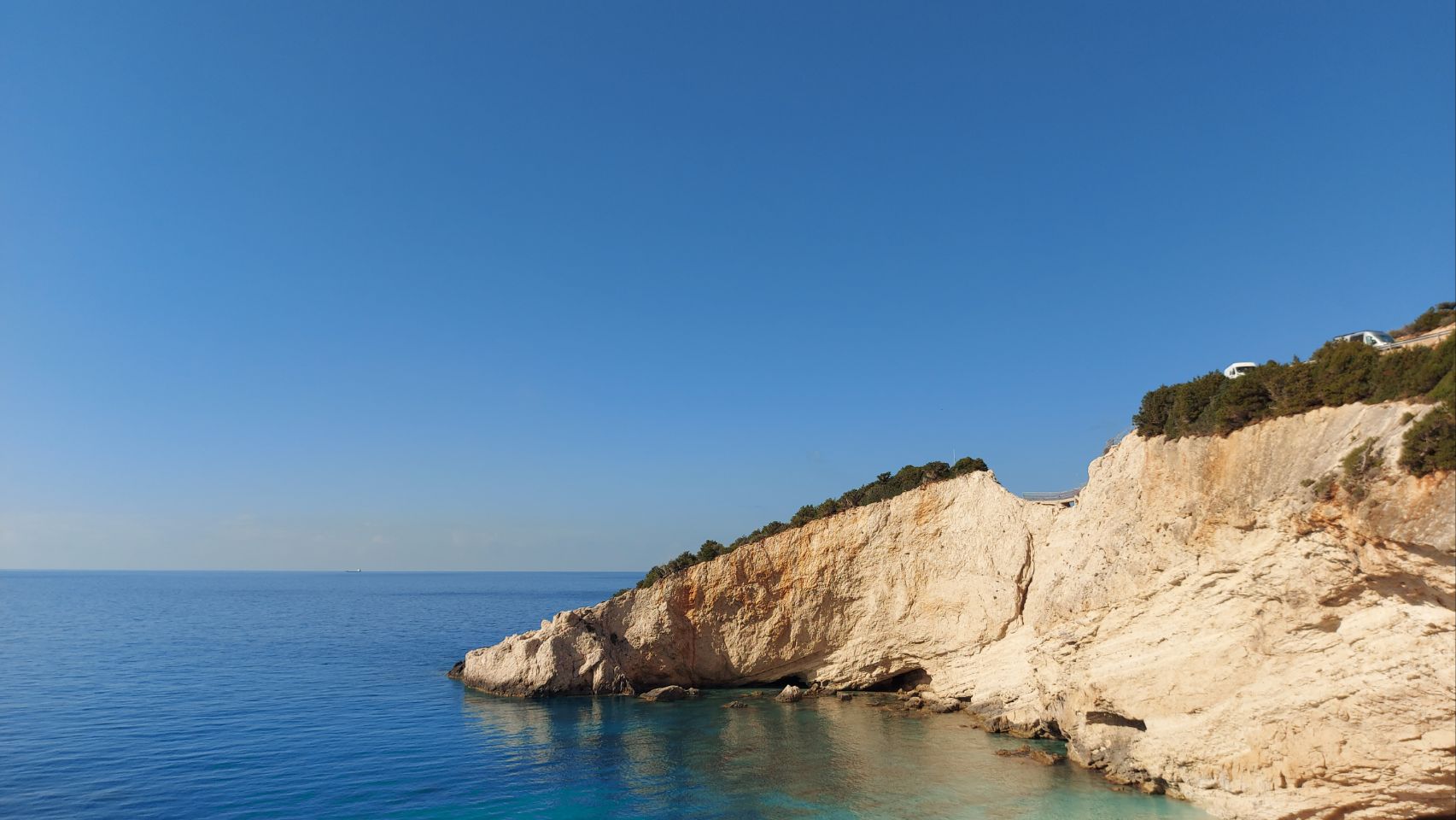 In der kleinen Ortschaft Vasiliki schauen wir kurz am Fähranleger vorbei ob noch Verbindungen auf die Insel Kefalonia stehen. Leider ist der Fährbetrieb saisonbedingt aber bereits eingestellt. Also fahren wir auf die Südwestliche Landzunge von Lefkada, hier soll es einen der schönsten Strände Griechendlands, wenn nicht sogar darüber hinaus geben.
