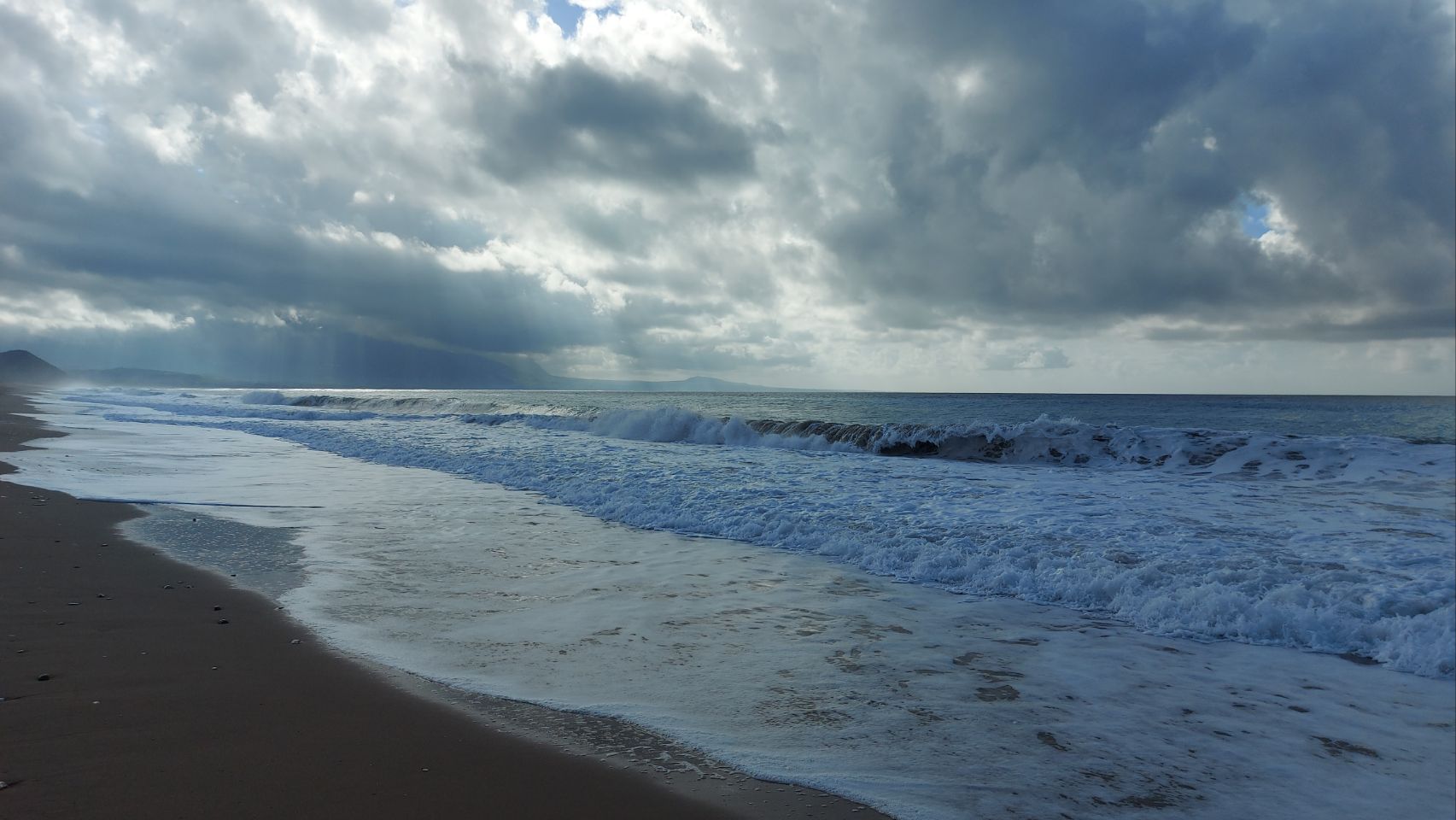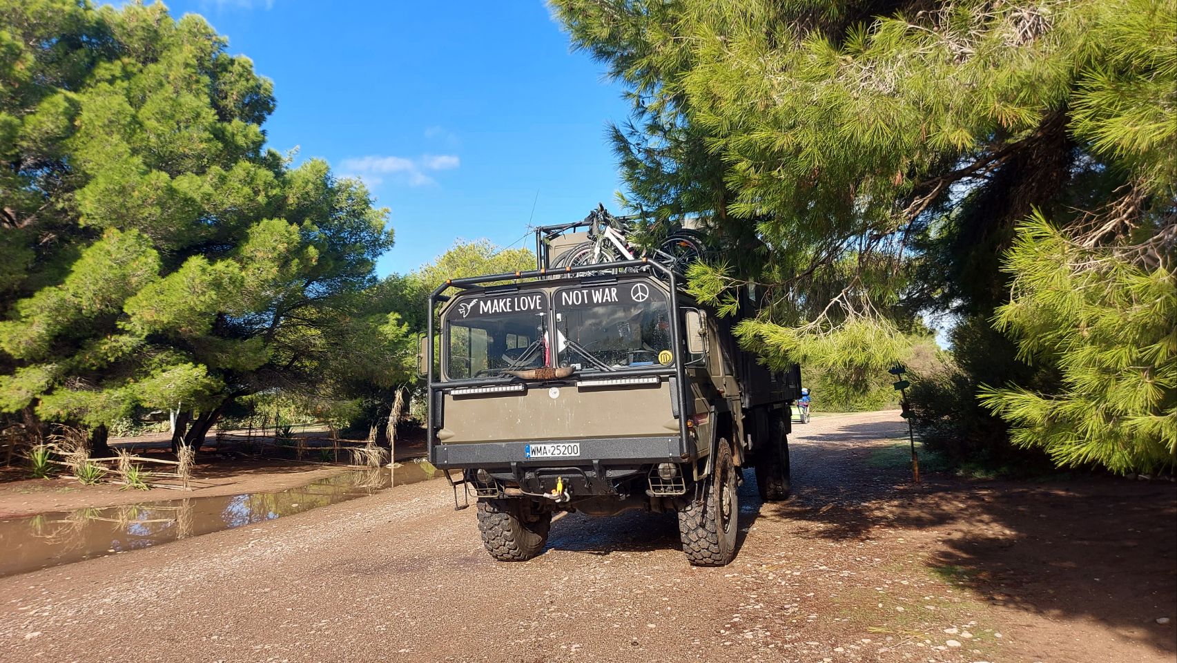 Auf dem Weg vom Wasserfall zurück zur Küste geht es nochmal sehr kurvig und zum Teil wieder sehr eng zu. In einem Dorf drehen wir letztlich sogar um, weil es uns zu sperrig aussieht. So wird es dunkel bis wir den Strand bei Elea erreichen.