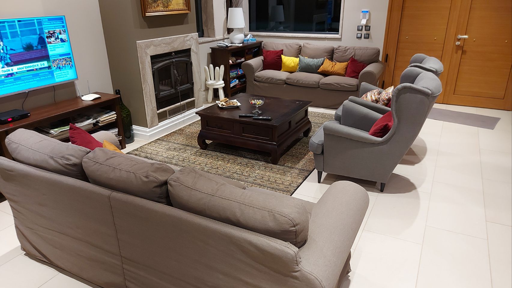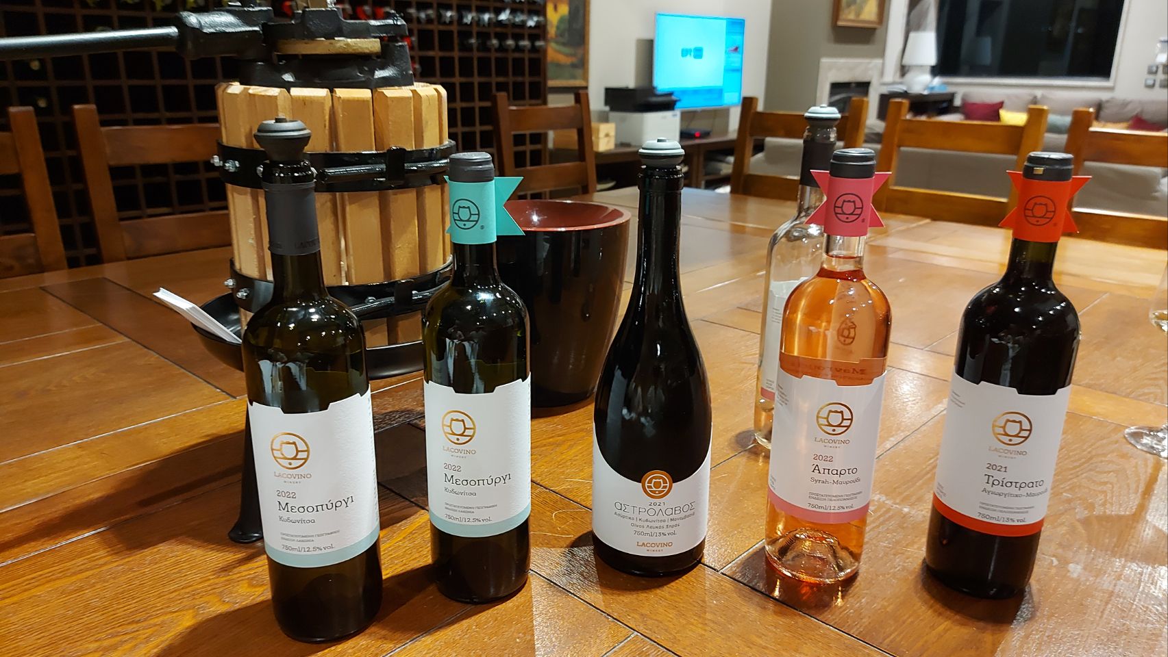 Er zeigt uns wo wir parken können und nimmt uns mit in einen gemütlich eingerichteten Verkostungsraum. Zum Wein serviert er uns Cracker, Salami aus der lokalen Metzgerei und Paprika und Oliven aus dem eigenen Anbau. Die Oliven sind der Hammer. Vier Gläser Wein später, kennen wir die Grundlagen des griechischen Weinbaus und wissen, wie gut der Rebensaft hier schmecken kann. Wir sind begeistert, liegt vielleicht auch an der motivierten und herzlichen Art von Adamantios.