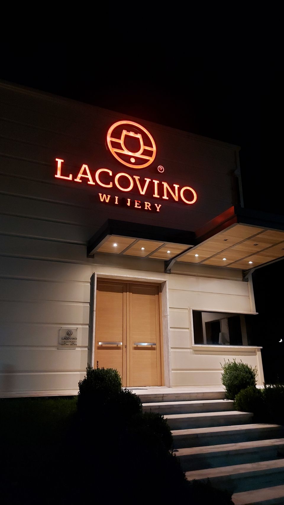 Zehn Minuten später fahren wir durch ein Tor auf das Gelände der Lacovino Winery. Wir werden von Wine maker Adamantios Farantatos begrüßt.