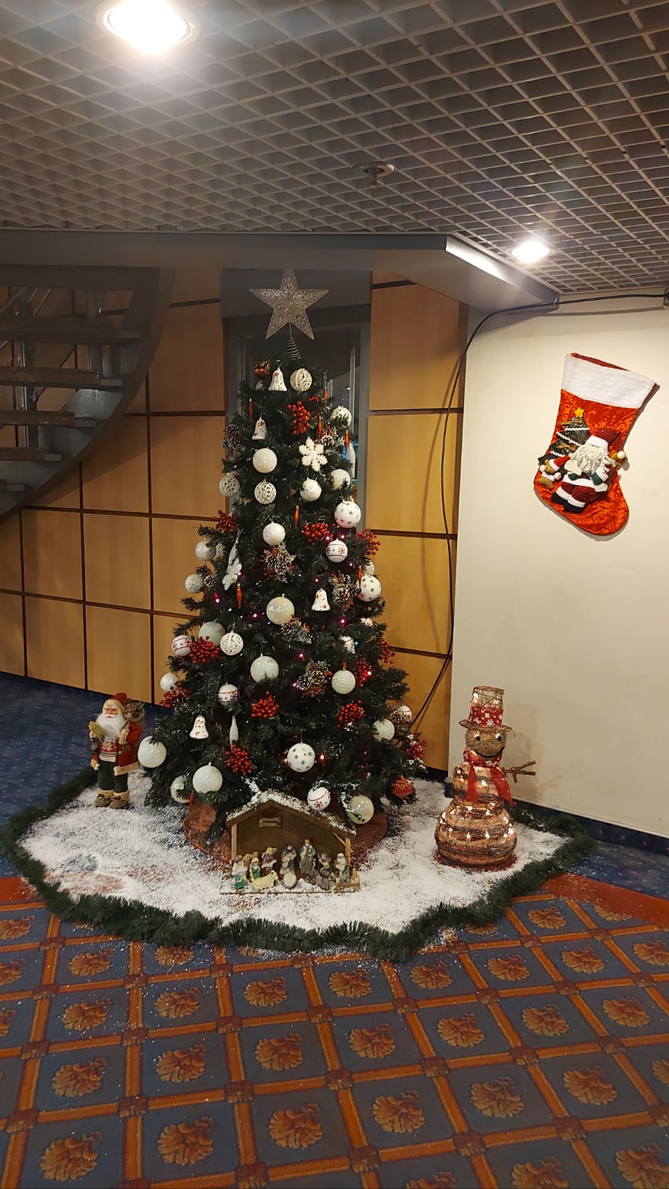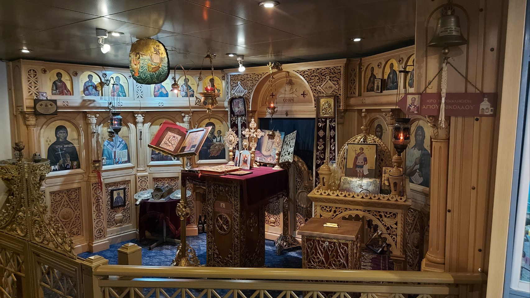 Wir machen es uns in den Kojen mit einem Bier gemütlich, spielen Skyjo und nutzen die eine belebende Dusche. Mit Flips drehen wir zum Beine vertreten eine Runde über das Außendeck, hier ist während der Sommermonate sogar eine Bar und ein Pool in Betrieb. Später schlendern wir abwechselnd noch durch das Bordbistro und erkunden, was es sonst noch gibt. Ein kleiner Shop, ein weiteres Restaurant, eine Bar, die auch als Disco oder Kino genutzt werden kann und auch ein feierlicher Altar. Viele Reisende haben es sich mit ihren Jacken oder auch Decken auf, beziehungsweise zwischen den Sitzgruppen gemütlich gemacht. Wir sind zugegeben schon froh über unsere kleine Kajüte.
