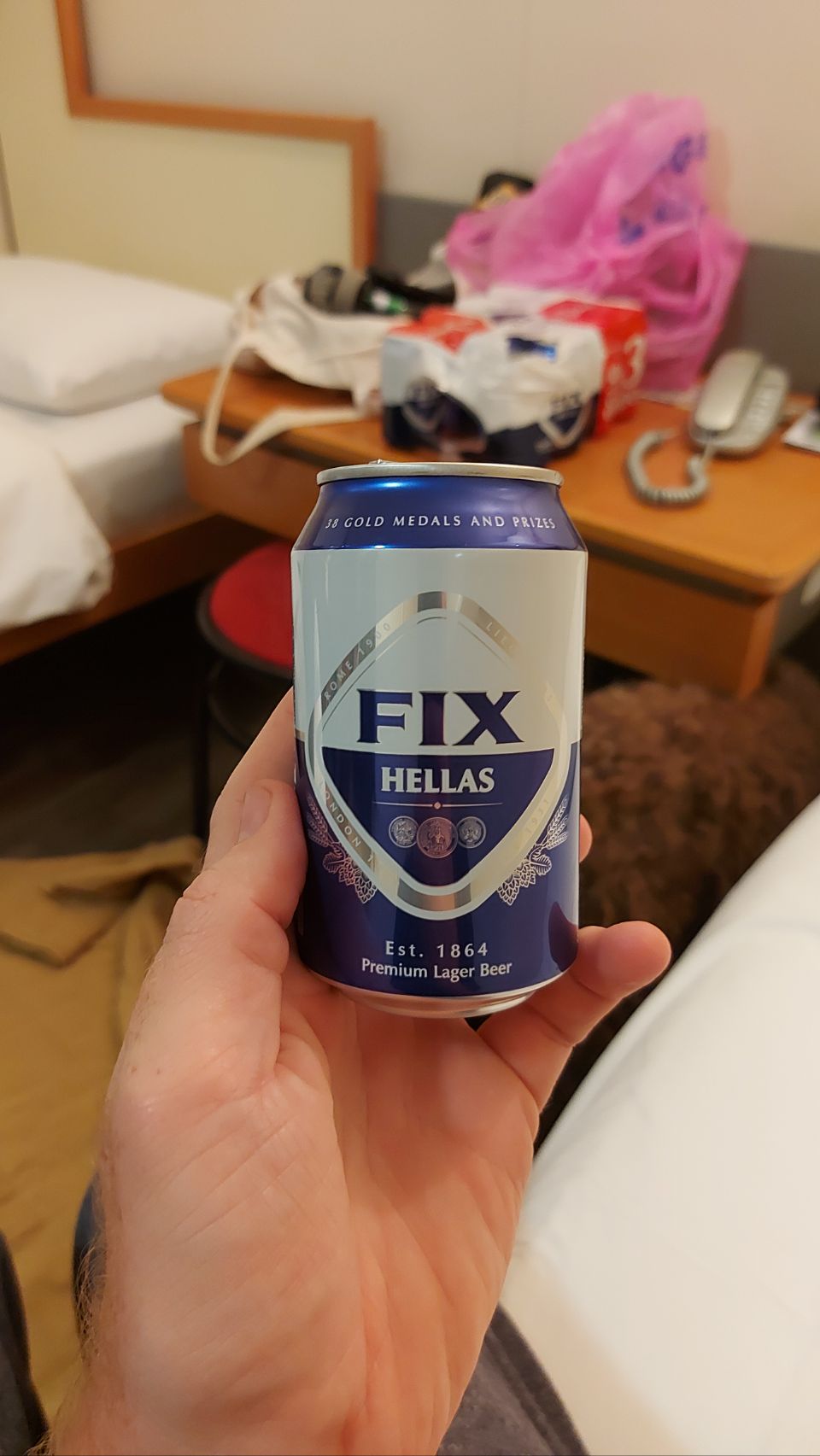 Im Stadtgebiet Egaleo halten wir an einem großen Einkaufszentrum, hier gibt es unter anderem einen Decathlon. Wir füllen unseren Vorrat an Gaskartuschen auf und ich investiere in einen neuen Klappstuhl, weil mein alter, von der Fußball-WM 2006, mehr und mehr auseinanderfällt. Nebenan kaufen wir noch Brot, etwas Käse, Salami und Milch in einem Supermarkt. Zurück auf dem Parkplatz vespern wir, packen unsere Sachen für die Nacht in die Rucksäcke und machen uns dann auf in den Endspurt zur Fähre.