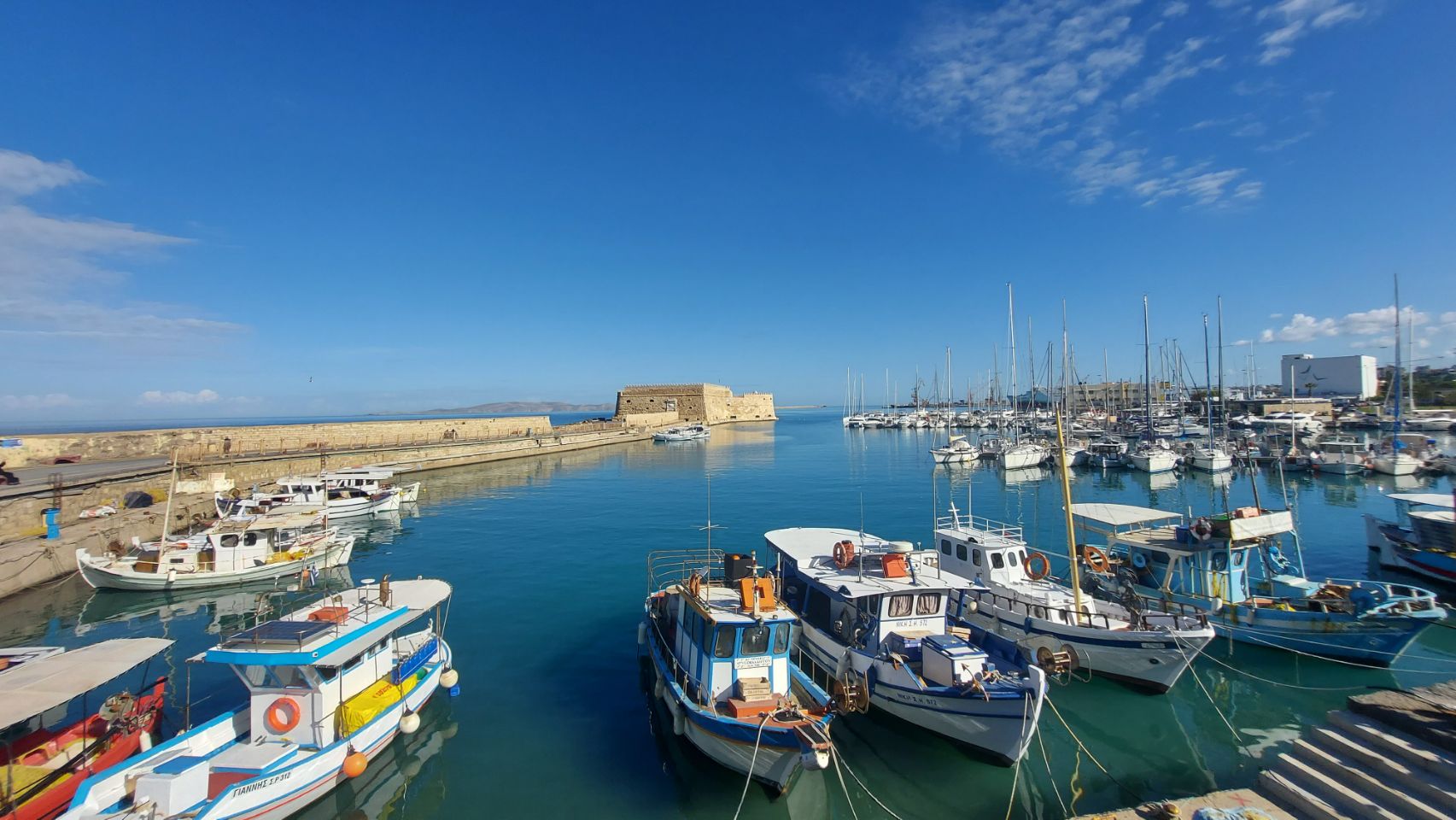 Auf dem Hafenparkplatz ruhen wir nach einem tollen Sonnenaufgang erst nochmal aus und können zwei Stunden Schlaf nachholen. Von hier machen wir uns am späten Vormittag auf den Weg in die Innenstadt von Heraklion. Wir bummeln am Wasser entlang bis zum venezianischen Hafen uns dann im Zickzackkurs durch die verwinkelten Gassen, vorbei an zahlreichen Bars, Cafés und lebhaften Geschäften mit allerlei Nützlichem und viel Unnötigem. Wir können in einem Cosmote-Geschäft die SIM-Karte für unseren Router aufladen.