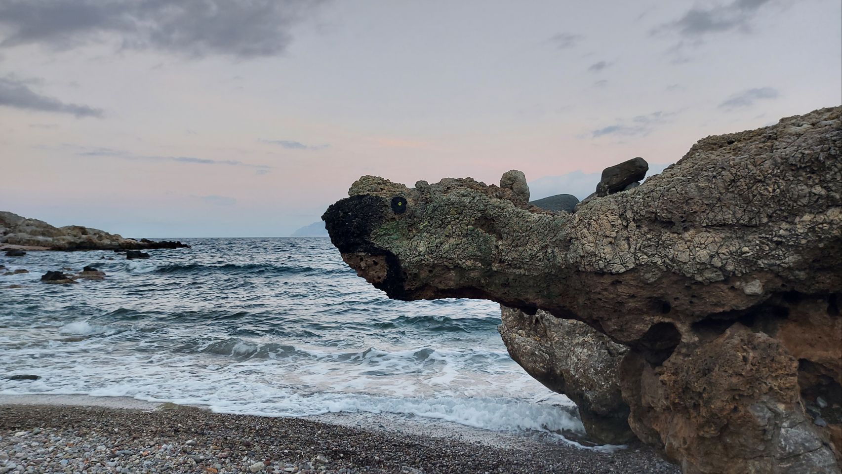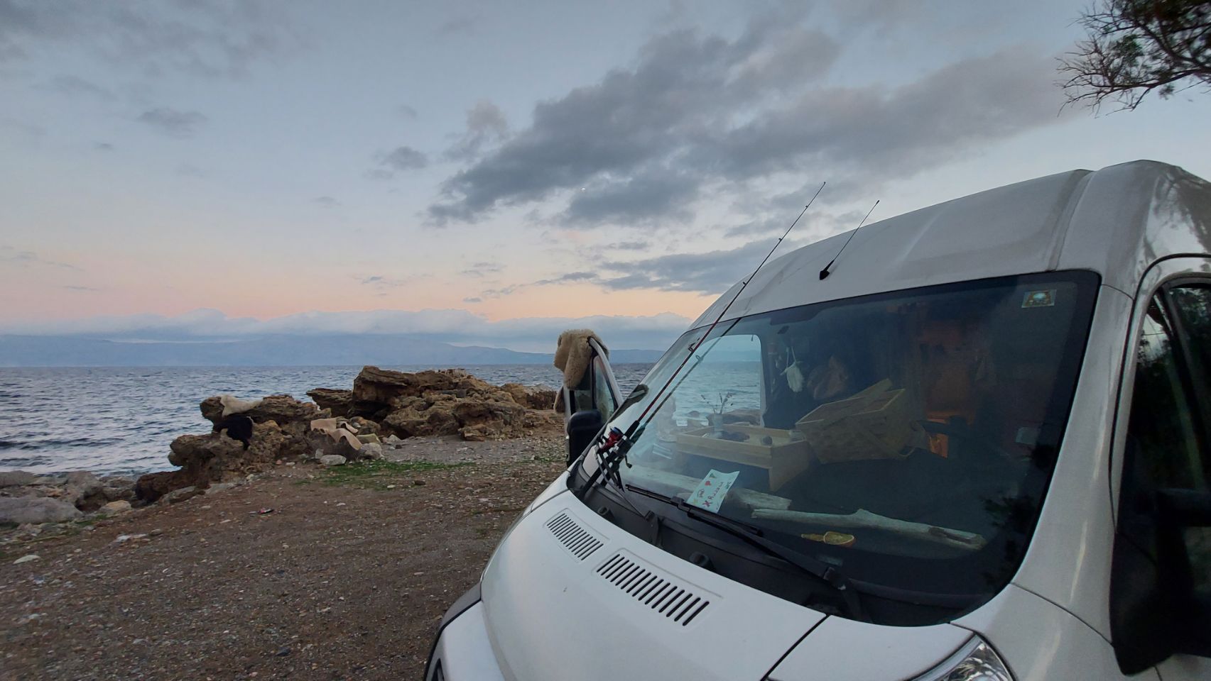 Über die hoperige Strecke geht es vom Balos ein Stück zurück nach Süden bis zu einem kleinen Fahrkartenschalter (der natürlich außer Betrieb ist). Hier werden im Sommer Tickets für einen Bootstrip um die Landzunge zum Balos-Beach verkauft.