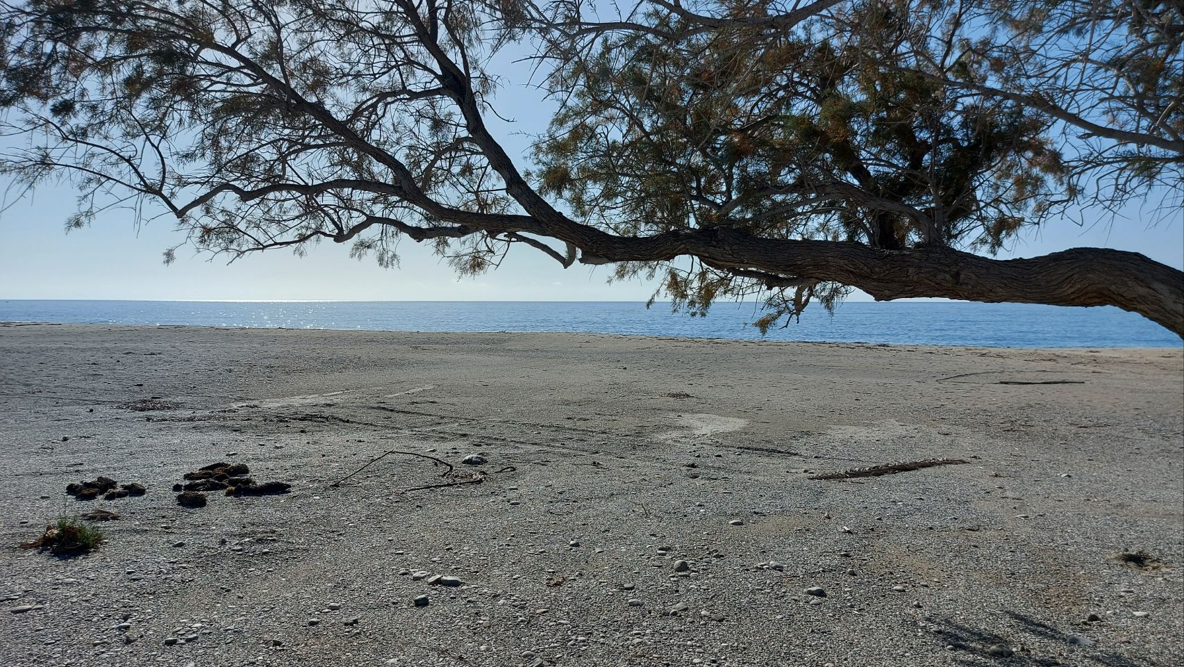 Etwas weiter östlich von unserem letzten Standort steuern wir heute einen langgezogenen Sandstrand an. Die Straße entlang der Küste war wohl von kleineren Erdrutschen teilweise verschüttet, die Stellen sehen jedenfalls frisch geräumt aus. In der Ortschaft Kerames kaufen wir Sprudel, Bier und ein paar Lebensmittel. Von hier geht es an den Triopetra Beach.