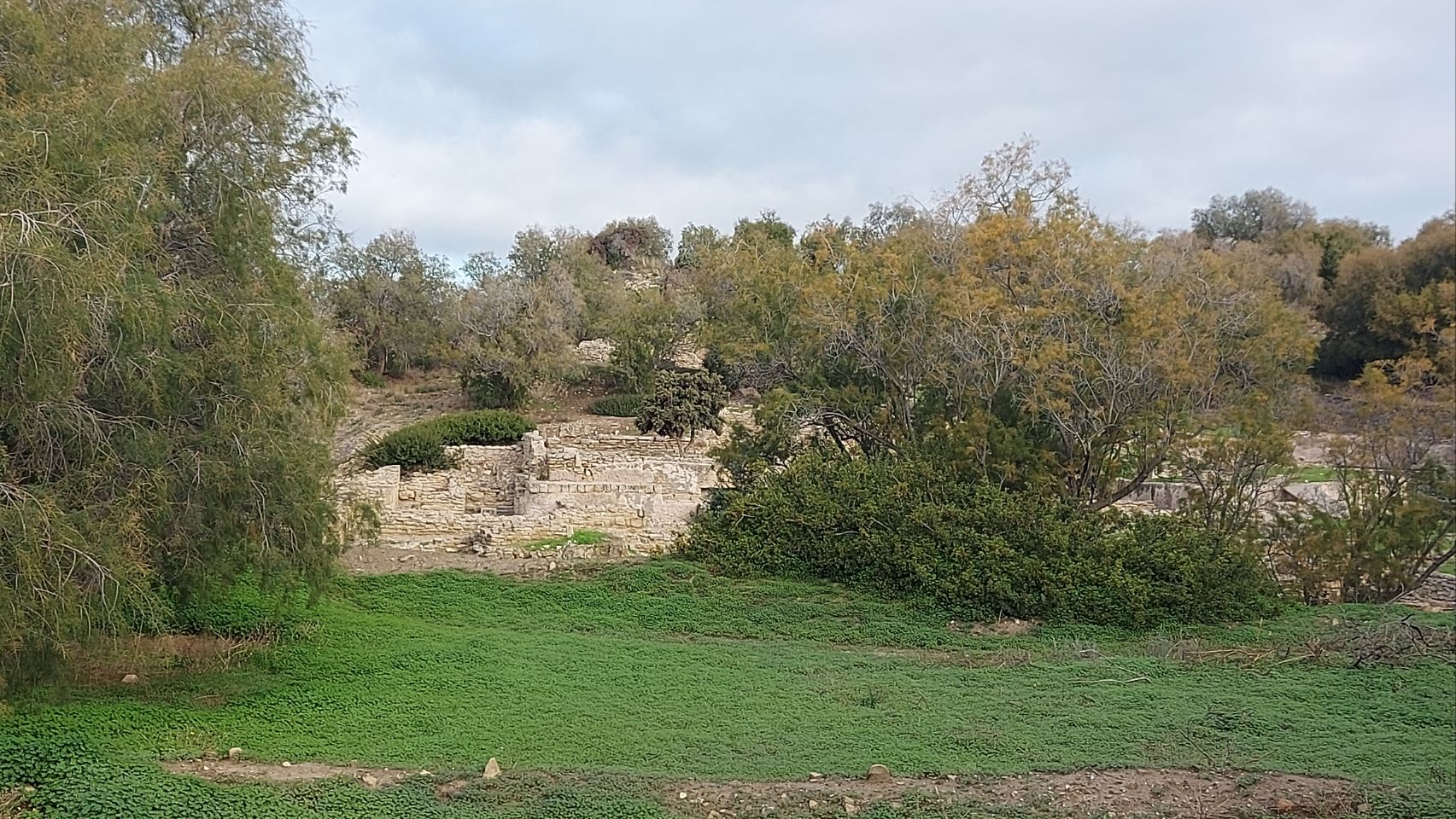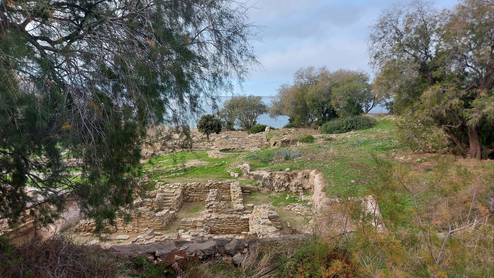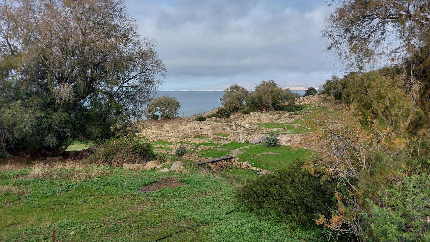 Direkt an den Parkplatz grenzt eine eingezäunte Ausgrabungsstätte.