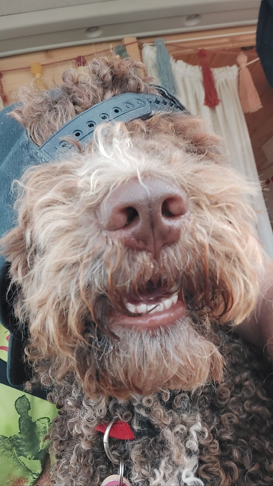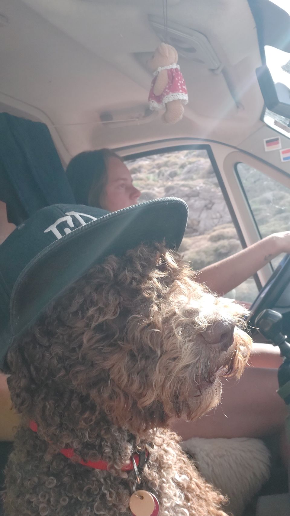 Nach einer ruhigen Nacht geht die Sonne über dem Bergrücken im Osten auf und taucht die Bucht und das Tal dahinter im Morgennebel in ein goldenes Licht. Mit Flips drehe ich eine Runde und wir kommem an einer Hinweistafel für antike Ruinen vorbei, hier handelte es sich wohl um ein römisches Lagerhaus.