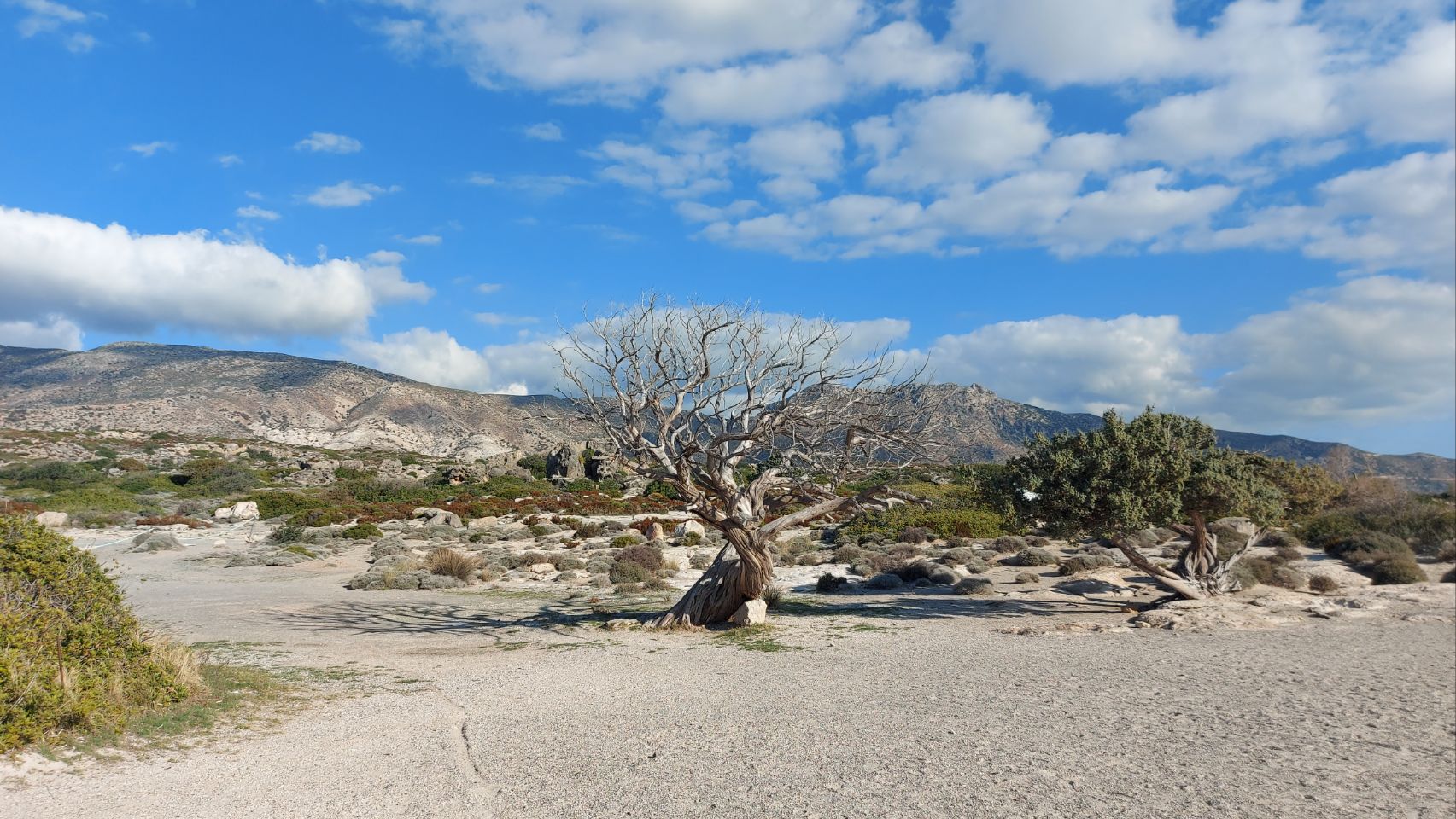 Nachdem es uns in Elafonissi so gut gefallen hat, beschließen wir hier auch ins neue Jahr zu feiern. Von Chania geht es in den Westen bis Kissamos. Hier fällt uns ein gestrandetes Schiff vor der Küste auf. Dann geht es über die Berge in den Südwesten der Insel, Flips scheint es zu gefallen wieder hier unterwegs zu sein, den Fahrtwind genießt er jedenfalls. Sieht aus wie Fuchur aus Michael Endes Die Unendliche Geschichte, finde ich.