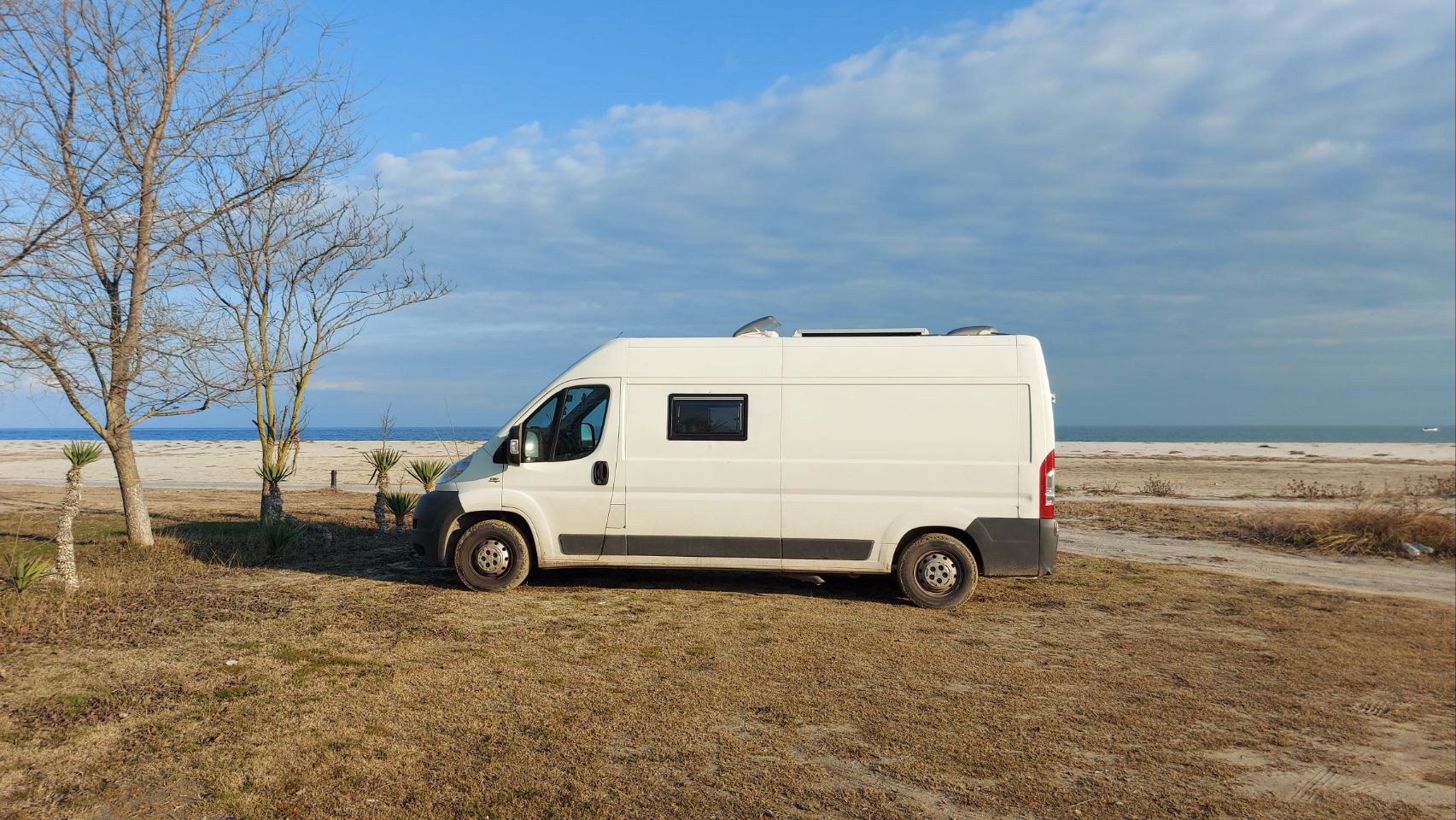 Der lange Sandstrand vor uns erinnert mich bei dem herbstlichen Wetter an die Nordsee. Griechendlands zweitgrößte Stadt, Thessaloniki ist nicht weit und hinter dem Röhricht am Horizont ragt der Olymp in den Himmel. Wir trinken unser Sonntags-Weizen und drehen noch eine kleine Runde am Wasser entlang.