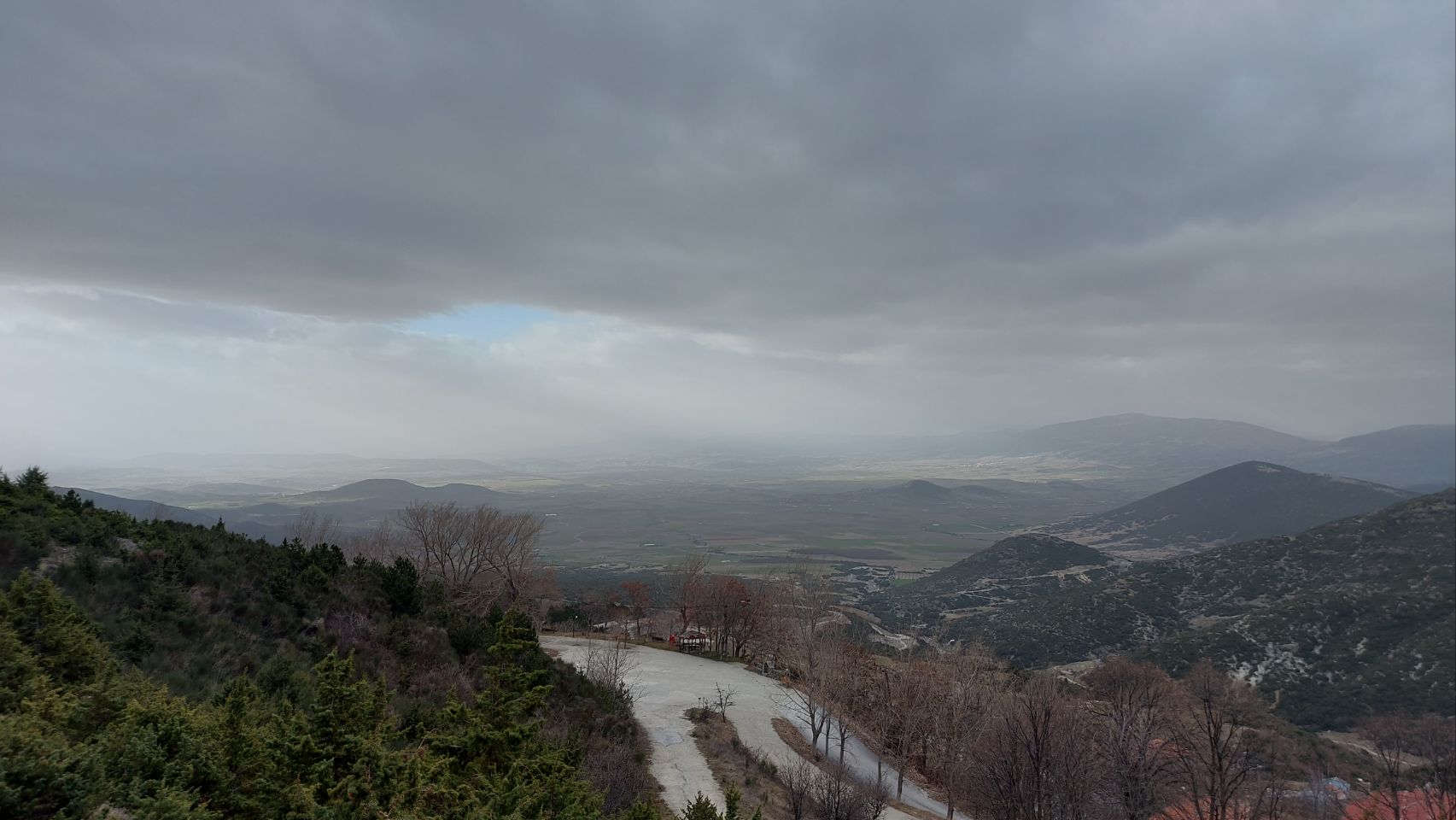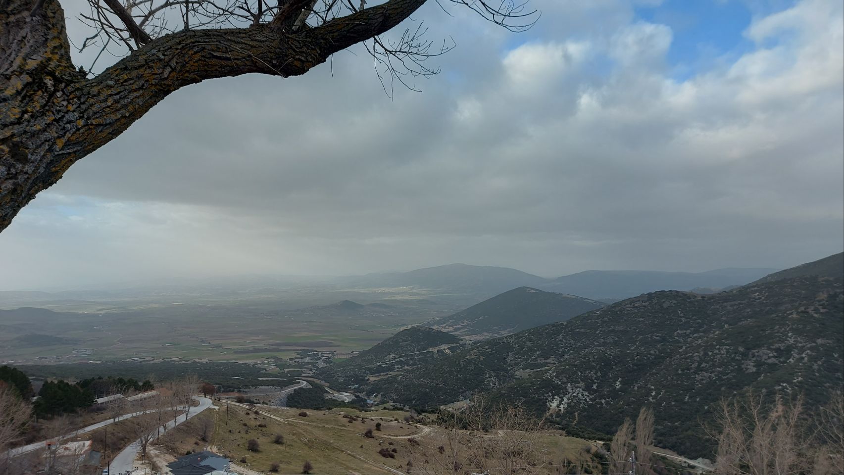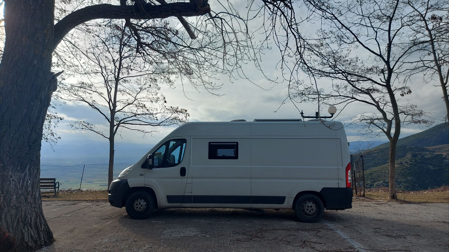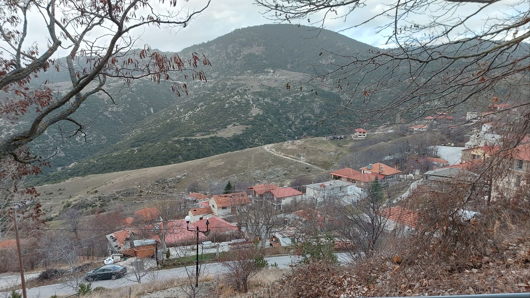 Auf der Westseite des Bergmassivs angekommen fahren wir die Ortschaft Kokkinopilos an. Ein kleines, verschlafenes Dorf, hoch oben im Hang, mit toller Fernsicht in die Landschaft. Es gibt hier einen größeren befestigten Platz der von hohen Bäumen überstellt ist. Wir beschließen hier für die Nacht zu bleiben.