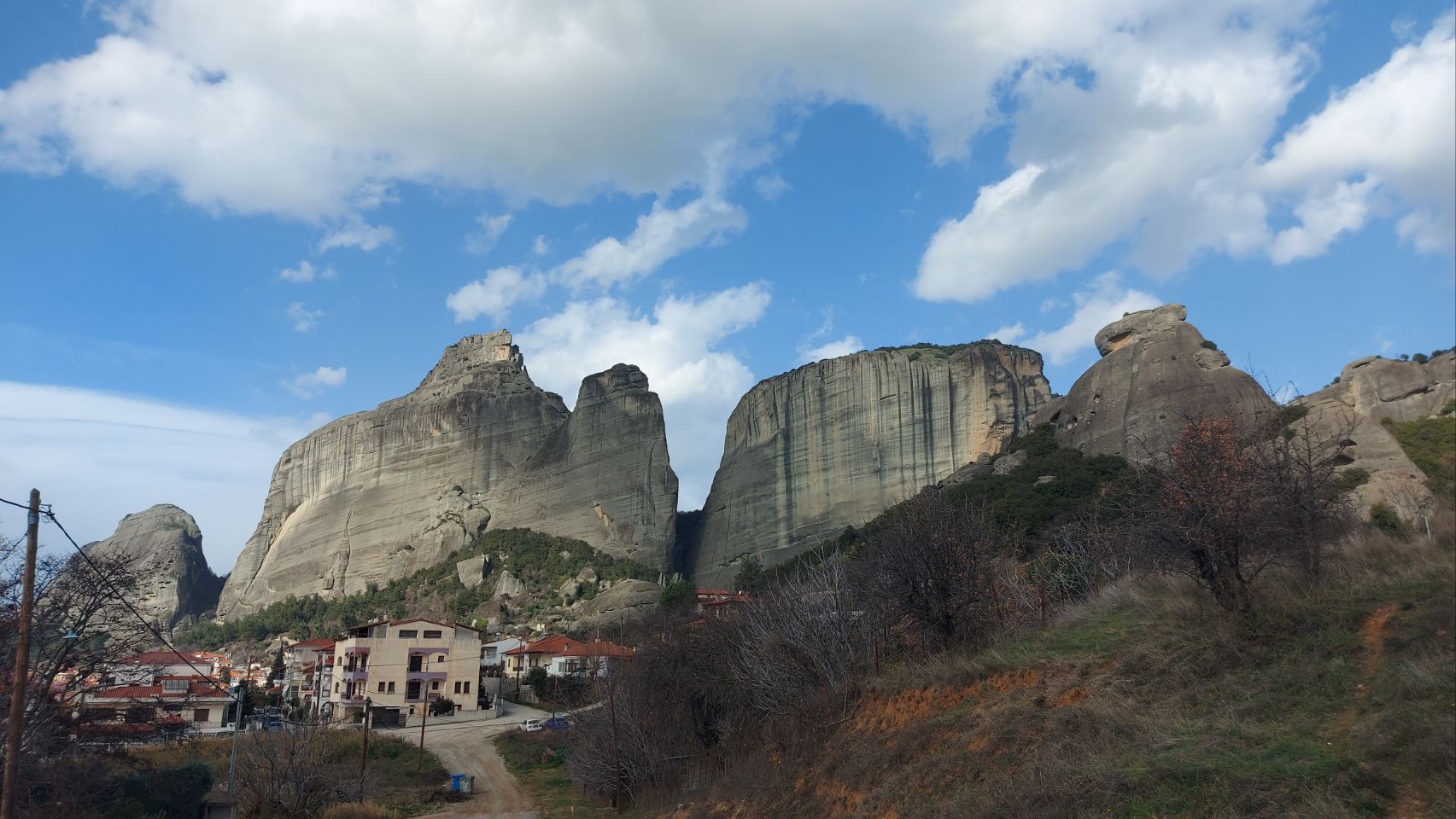 Heute erkundem wir die spektakuläre Felsenlandschaft von Kalambaka nochmal genauer. Mit Proviant im Rucksack und den Stiefeln an den Füßen geht es los. Zunächst am Fuß der Felsen bis in die Ortschaft und dann rund zweihundert Metern zwischen den steilen Wänden, durch zum Teil dichten Eichenwald in die Höhe.