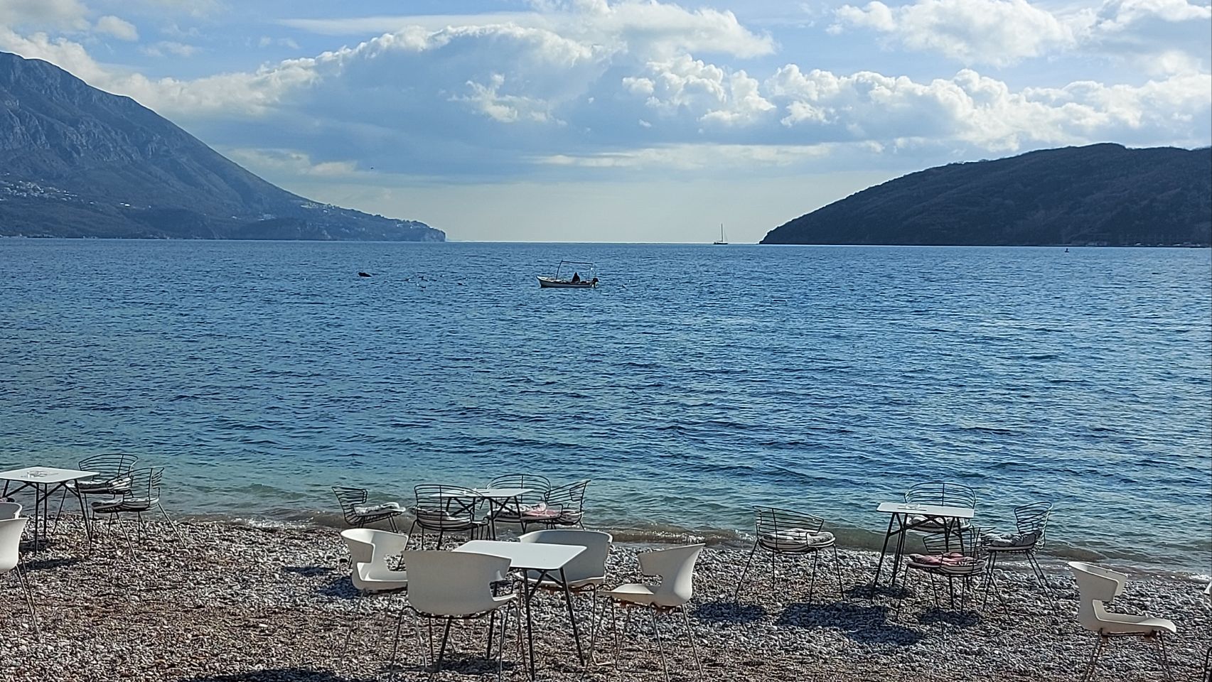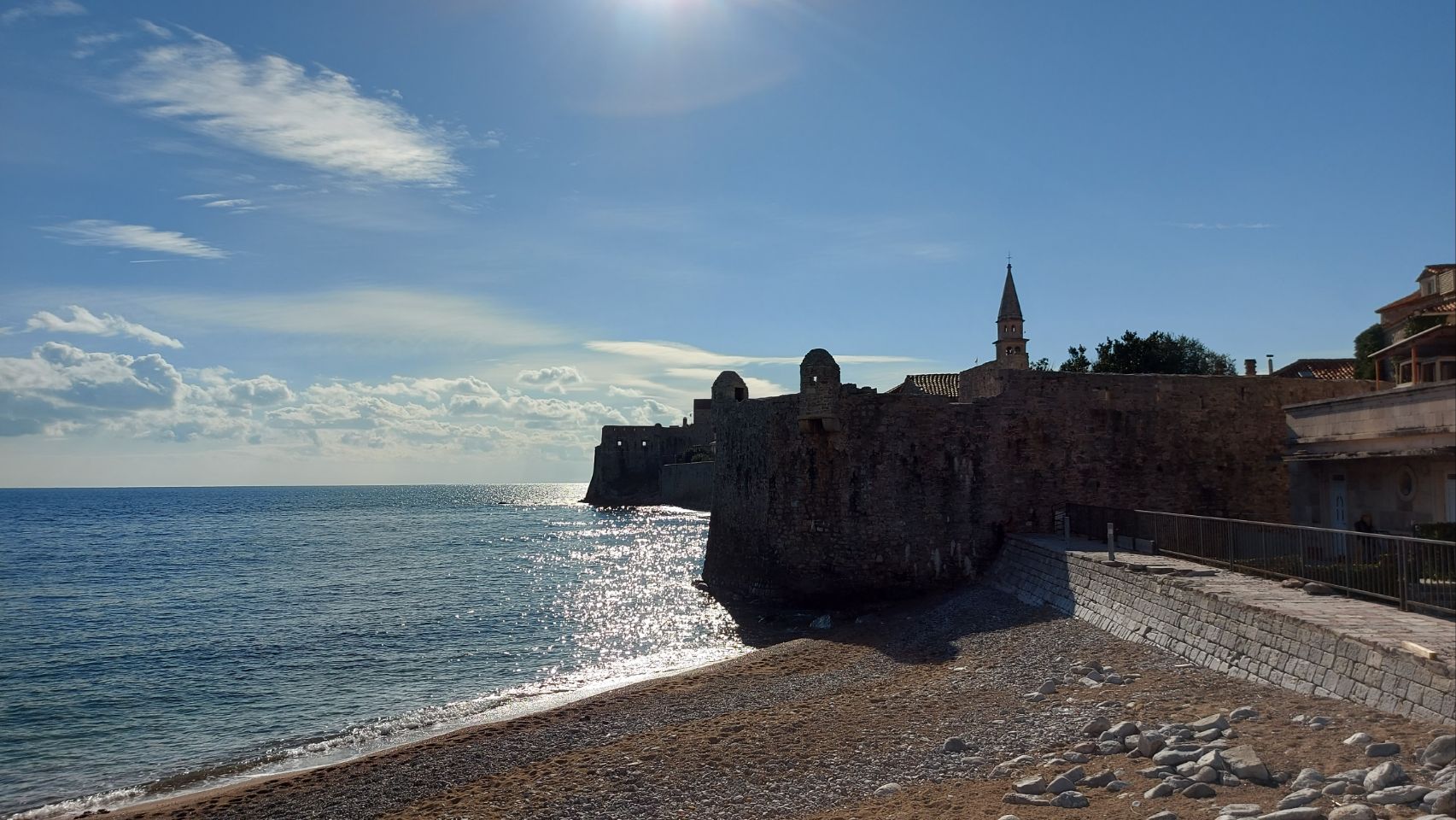 Wir parken etwas außerhalb und spazieren entlang der Strandpromenade, vorbei an zahlreichen, zum Teil gut besuchten Retsaurants mit Meerblick, bis in die wunderschöne Altstadt. Durch enge Gässchen kommen wir zur Zitadelle und zum Plaža Ričardova Glava. Eine Bar hat den Strand vor der Stadtmauer bestuhlt und wir setzen uns für eine Erfrischung in die Sonne. Für Fini gibt es einen Aperol Spritz, ich nehme eine Bitter Lemon. Auf dem Rückweg zu Frido kaufe ich in einem Supermarkt ein bisschen Gemüse, Käse und Sprudel, Fini stöbert in Sportgeschäften nach einer warmen Hose für den Schnee. Eine Hose gibt es nicht, aber ein Paar Handschuhe und die werden am Abend und die kommenden Tage auch noch ihren Wert beweisen können. Wir lassen Budva und damit die Küste nämlich hinter uns und machen uns auf den Weg ins Bergland von Montenegro, wir sind gespannt.