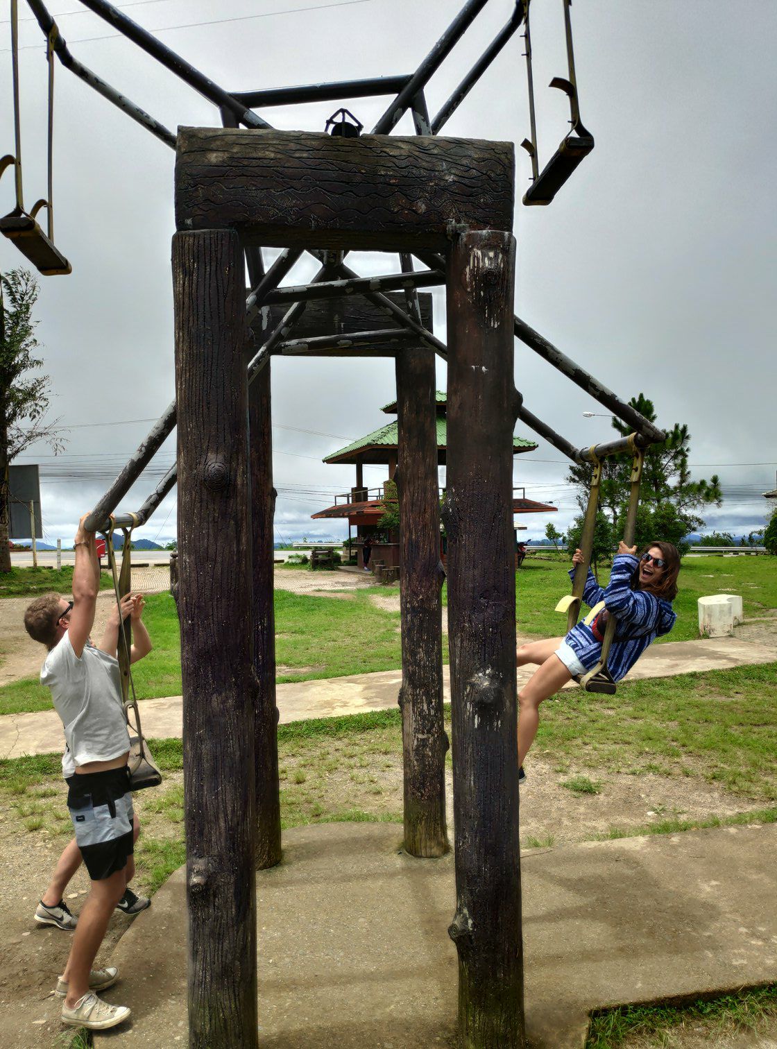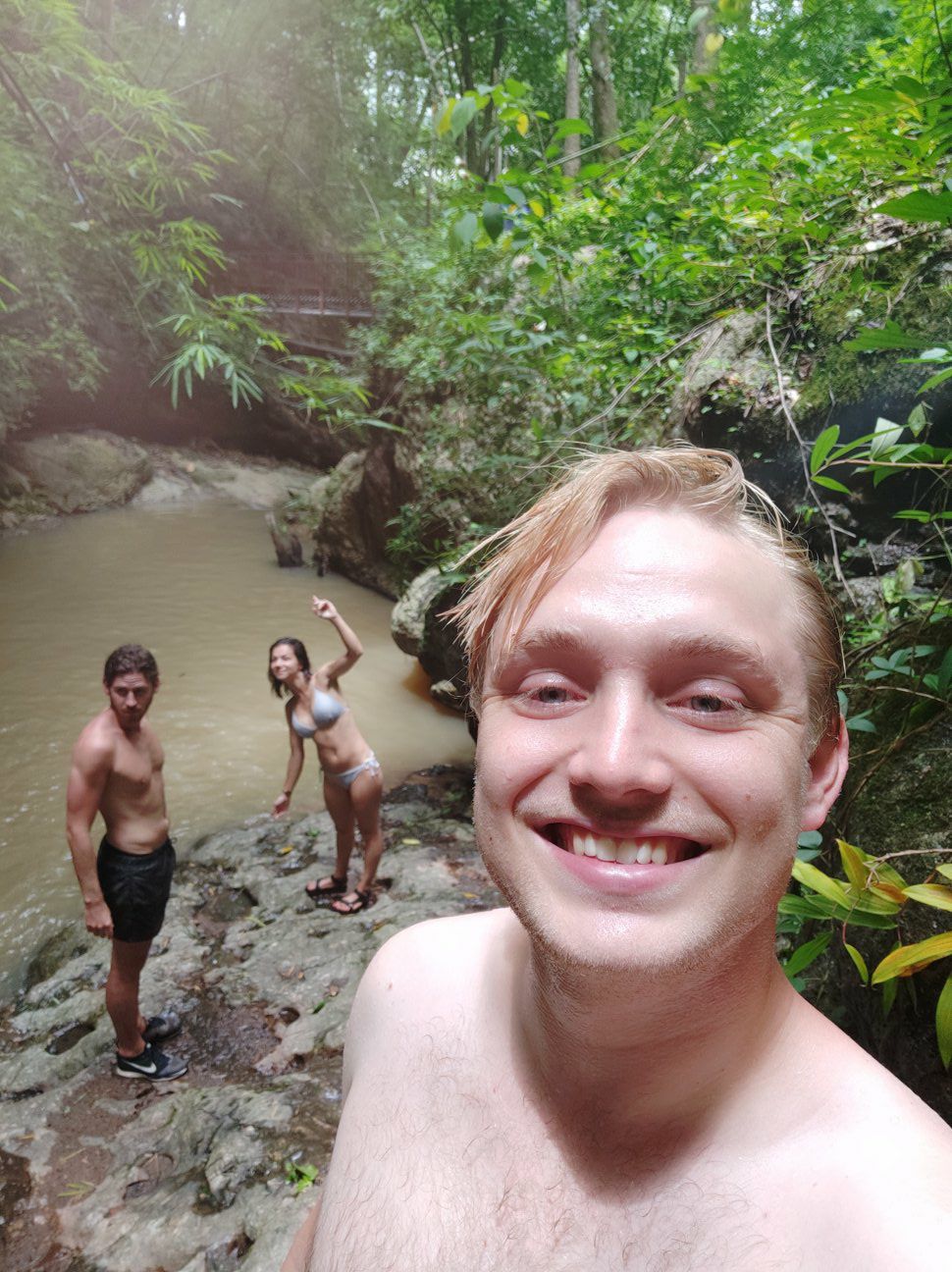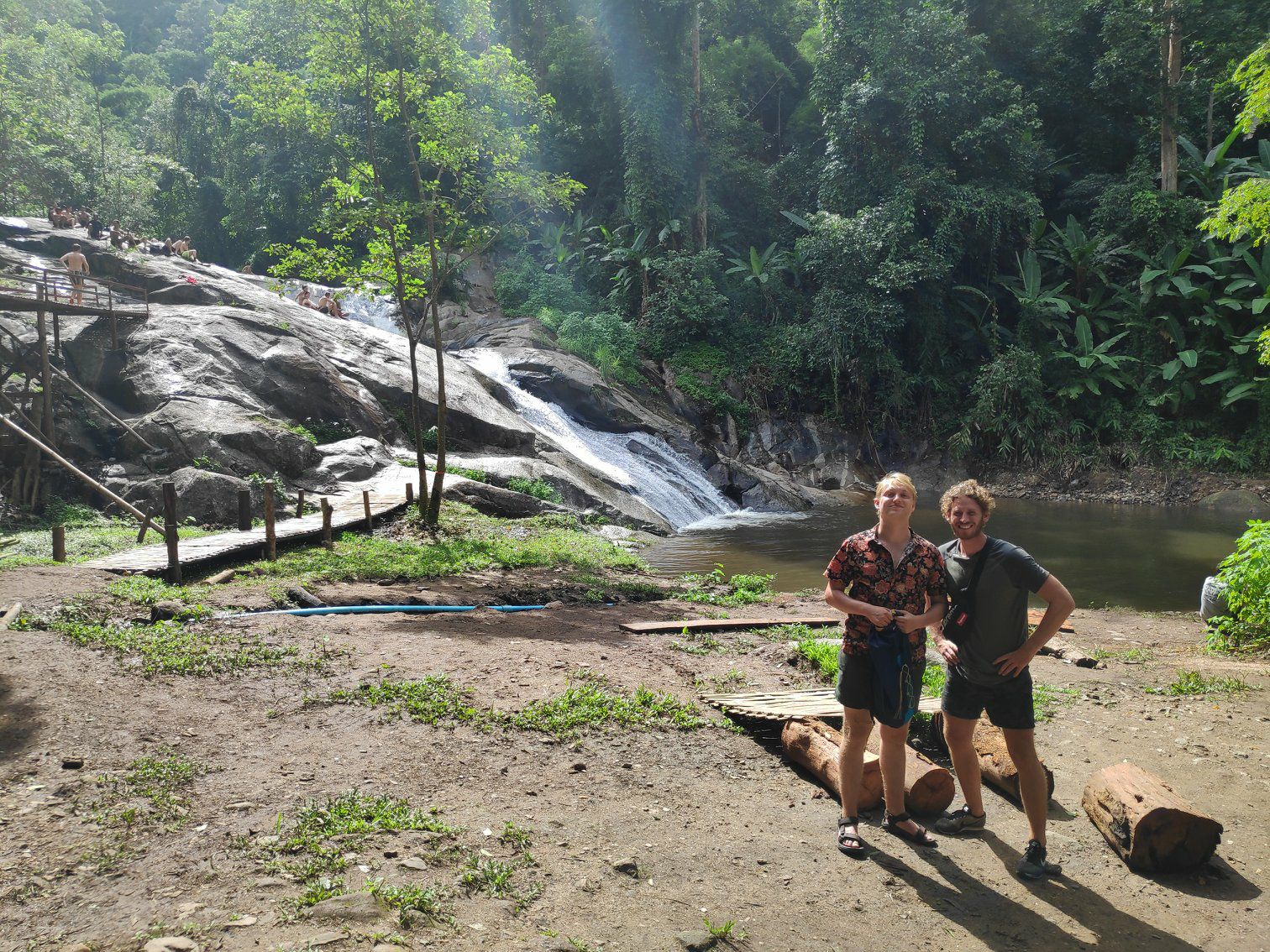 Voordat we de scooters meekregen werd ons gevraagd of we al eerder hadden gereden in Thailand. Eerlijk als dat Lins is zei ze natuurlijk nee. Dat betekende dus scooterles, shit... Lins werd als eerste meegenomen achterop de scooter naar onbekende bestemming om te oefenen. Echter lag het oefenterrein achter een gigantische modderpoel verscholen. Waar Friso's instructeur rechtsomkeert maakte, besloot Lins haar instructrice er doorheen te gaan. Heen met wat kleine spetters op de benen erdoorheen gekomen. Terug koos ze een anders route waardoor Lins en haar instructrice vast kwamen te zitten. Dit betekende lopen tot je knieën in de modder. Friso's rijexamen ging hem een stuk gemakkelijker af. Teruggekomen bij de scooterverhuur en geen seconde te hebben gereden vroeg de instructeur: "Can you drive?". Nadat Friso instemmend knikte is de beste man vervolgens weer naar binnengelopen voordat hij de scooter wist te starten. Nadat ook Lins haar scooter met behulp van vijf andere mannen uit het drijfzand getrokken was, zijn we beiden met vlag en wimpel geslaagd!