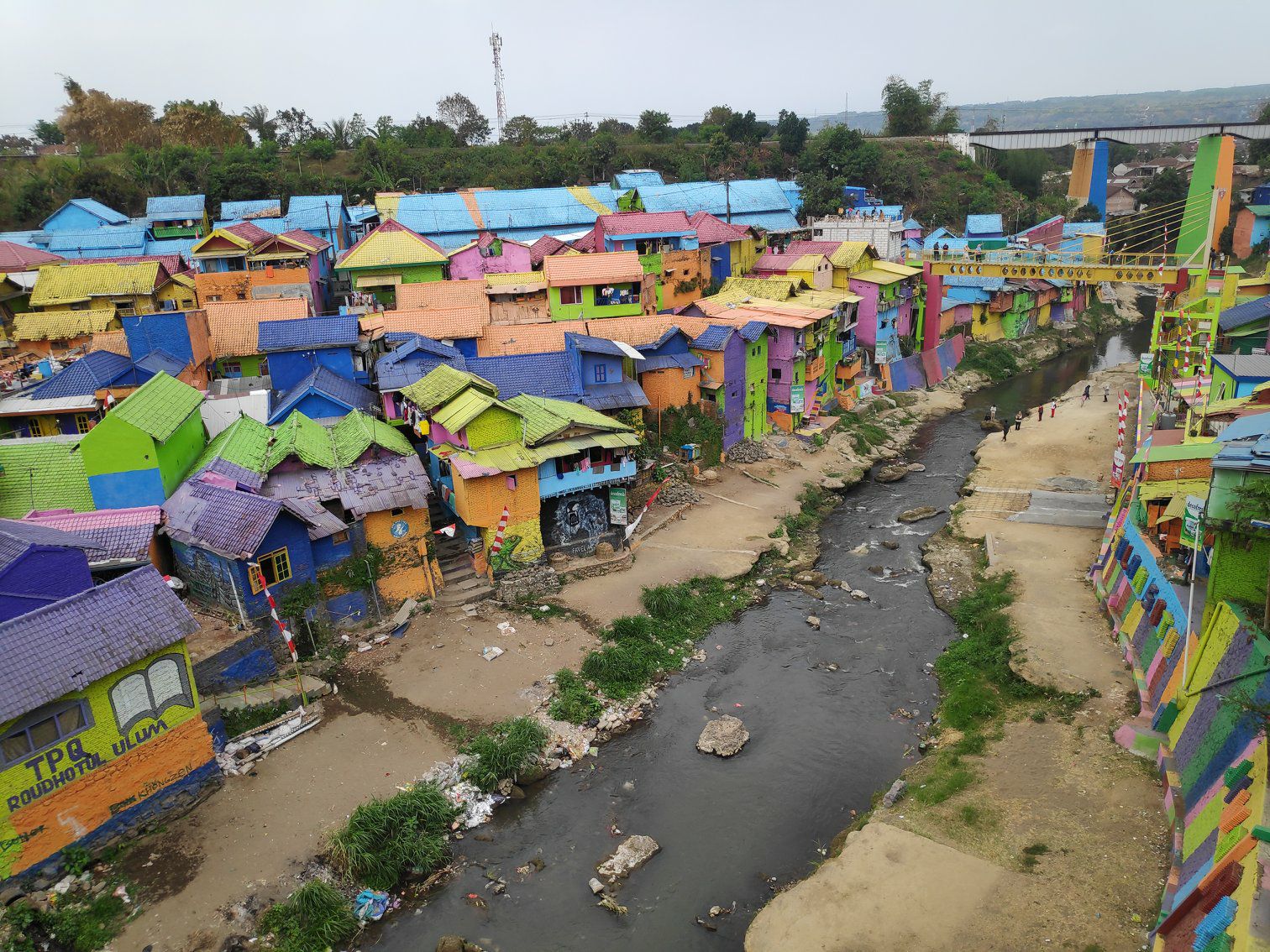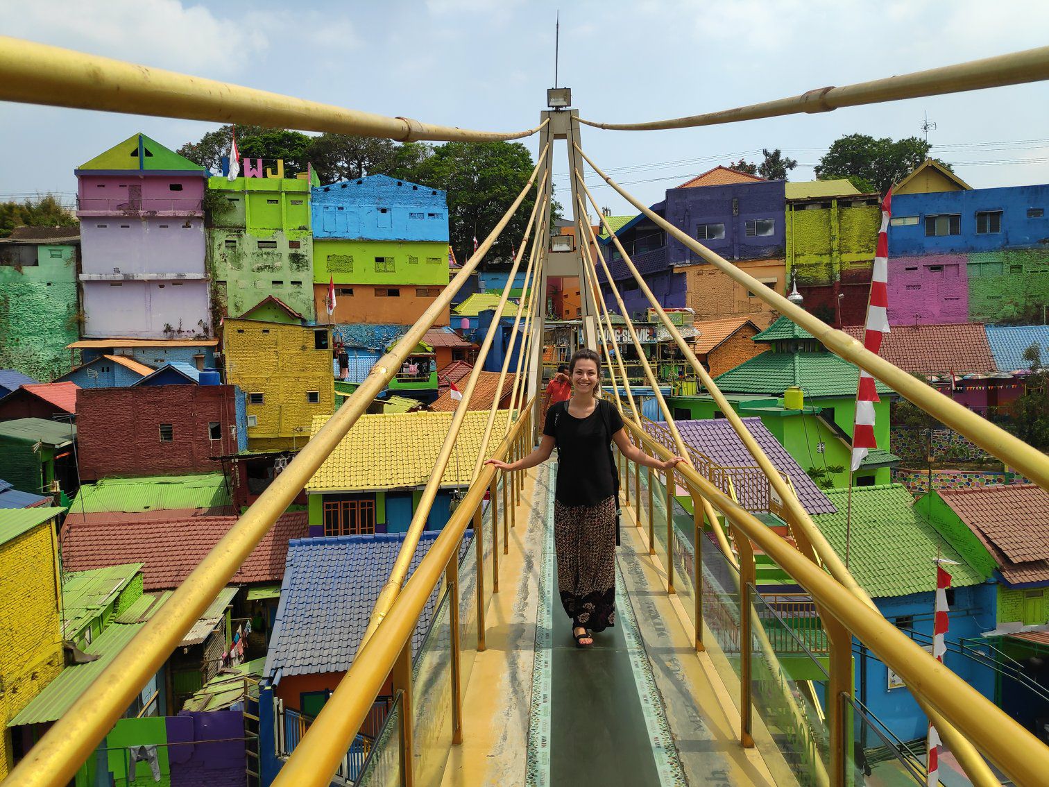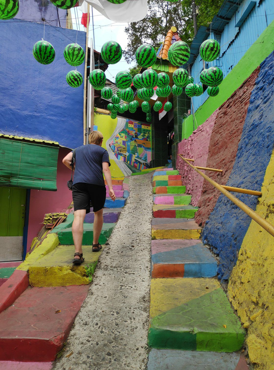 In Malang zijn we door een bijzondere wijk gewandeld. Een aantal studenten hebben de taak gekregen om een vieze, drukke wijk te verbeteren. Als oplossing hebben zij de volledige wijk omgetoverd tot een regenboogwijk. Het blijkt een zeer goed lopend project, want het toerisme trok aan. Door de toeristen verdienden de lokale mensen wat meer geld én is de motivatie om de wijk schoon te houden groter.