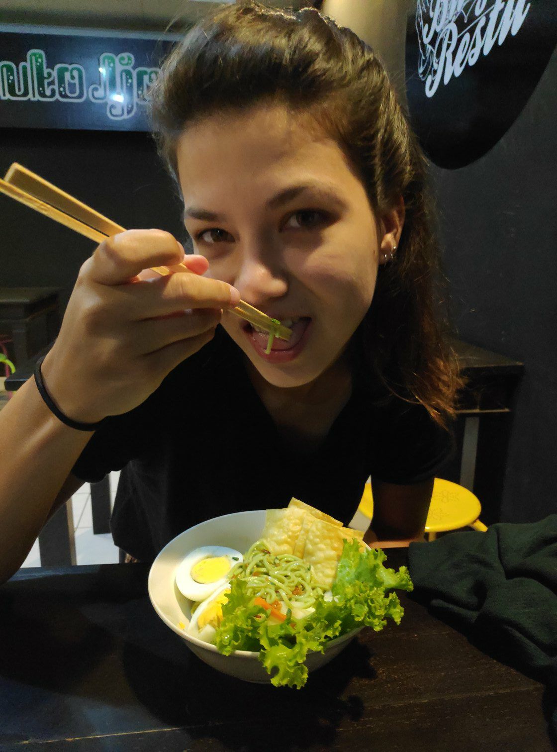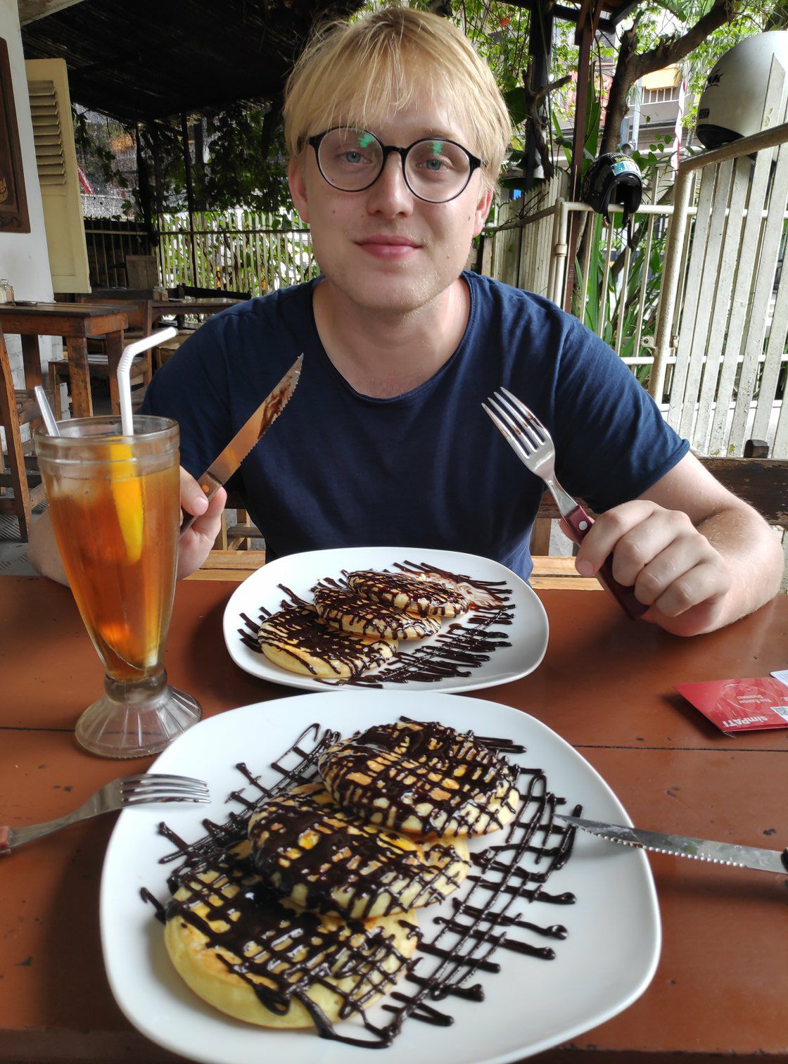 S'avonds zijn we ergens gaan eten waar ook vegetarische gerechten op het menu stonden. Lins is daar bijna overleden, want het eten was zo ontzettend pittig dat het geen doen was. Zelfs Friso, de sambal-lover, kreeg een flinke wegtrekker. Met honger zijn we maar weer vertrokken voor een frietje bij het hostel.