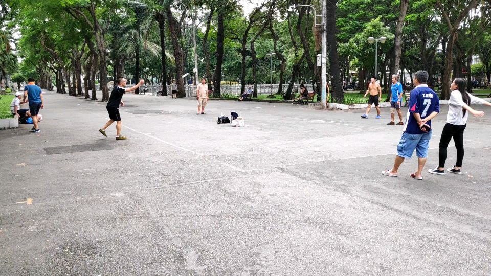 Na deze lange dag zijn we s'avonds een kijkje wezen nemen op de walking street. De eigenaresse had al gemeld dat dit niet de juiste plek is als je wilt kletsen. Ze had helemaal gelijk. We vermaakten ons kostelijk met een biertje en twee stoelen aan de zijkant op een terras. Heerlijk mensen kijken in de chaos. Wat het kabaal versterkte was het feit dat Vietnam en belangrijke voetbalinterland speelde tegen Indonesië. Dit werd in elke tent op grote schermen vertoond. Echter leken deze nergens synchroon te lopen, waardoor je een minuut van te voren wist dat er gescoord zou worden. Het eindigde in een voetbalfeestje voor Vietnam; 3-1. Jammer voor Lins, haar Indonesische linker hartkamer huilde.