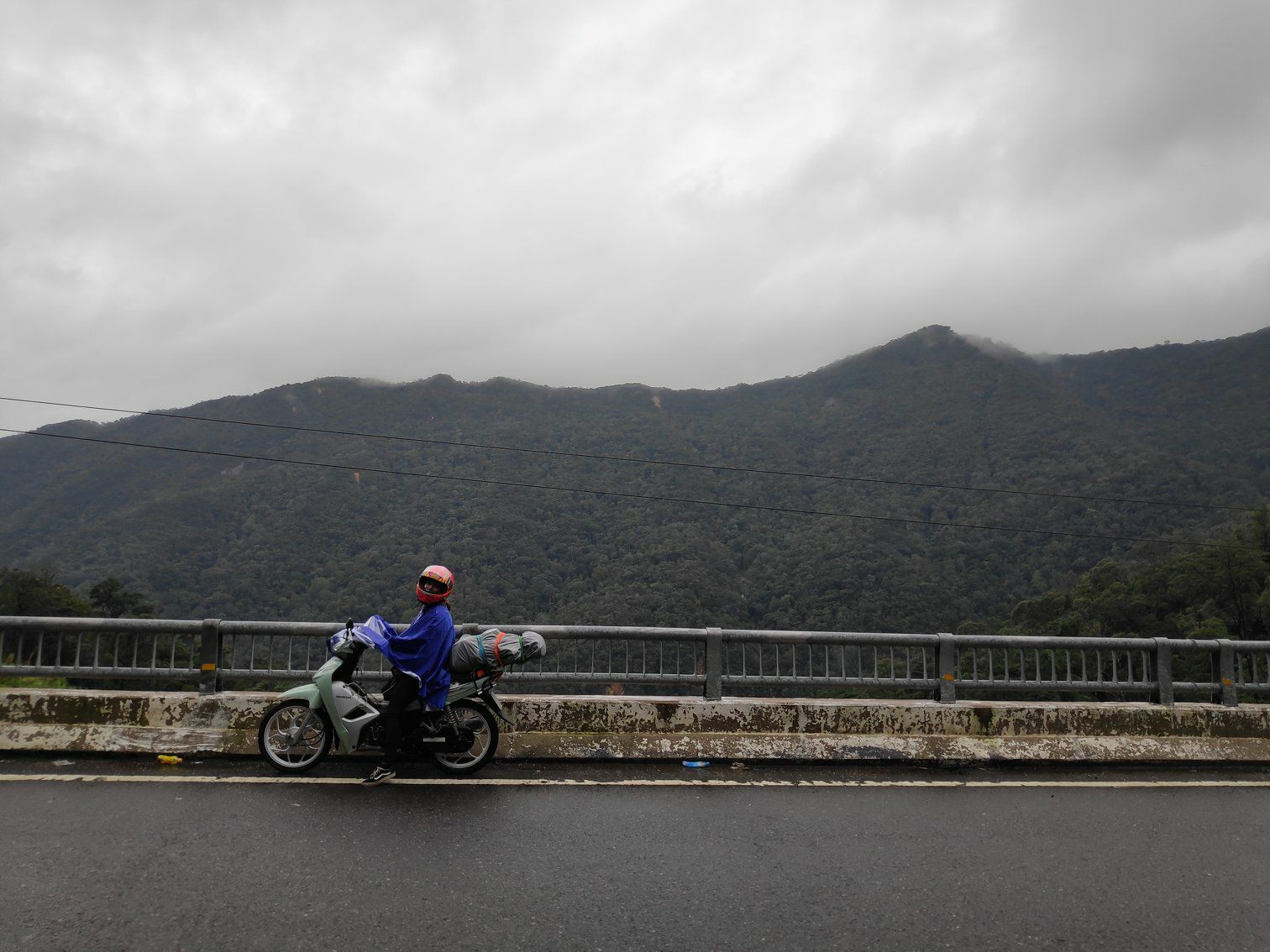 De poncho kon uit de verpakking worden gehaald. Ook de truien werden weer onder uit de tas gepakt. Een groot deel van de route door de bergen hadden we te maken met regen en kou. Daarnaast werd het mooie uitzicht op de gebergten belemmerd door de mist. We hebben ruim vijf kilometer door dichte mist met vijftien kilometer per uur gereden. Al met al een uitdagende rit.