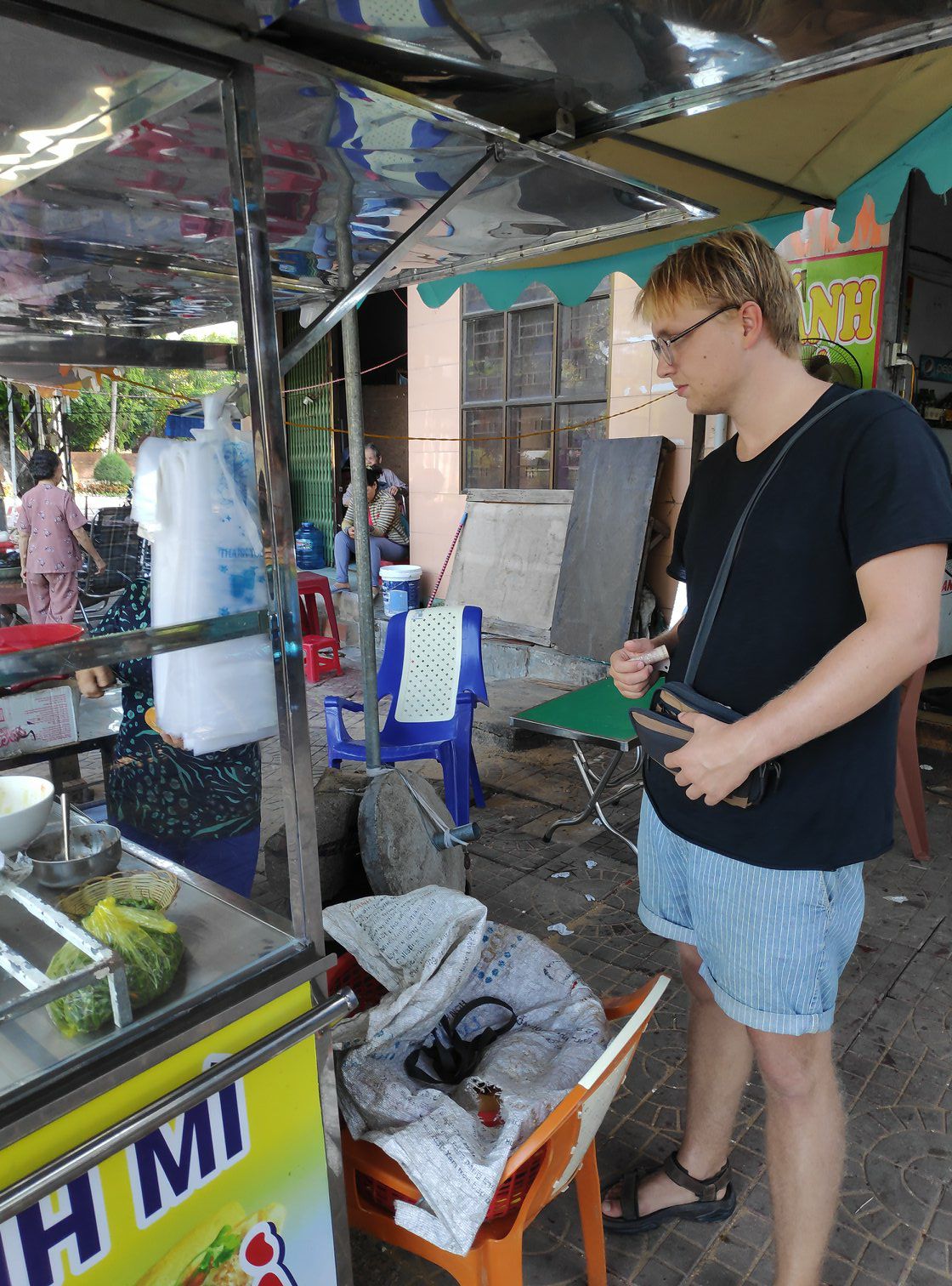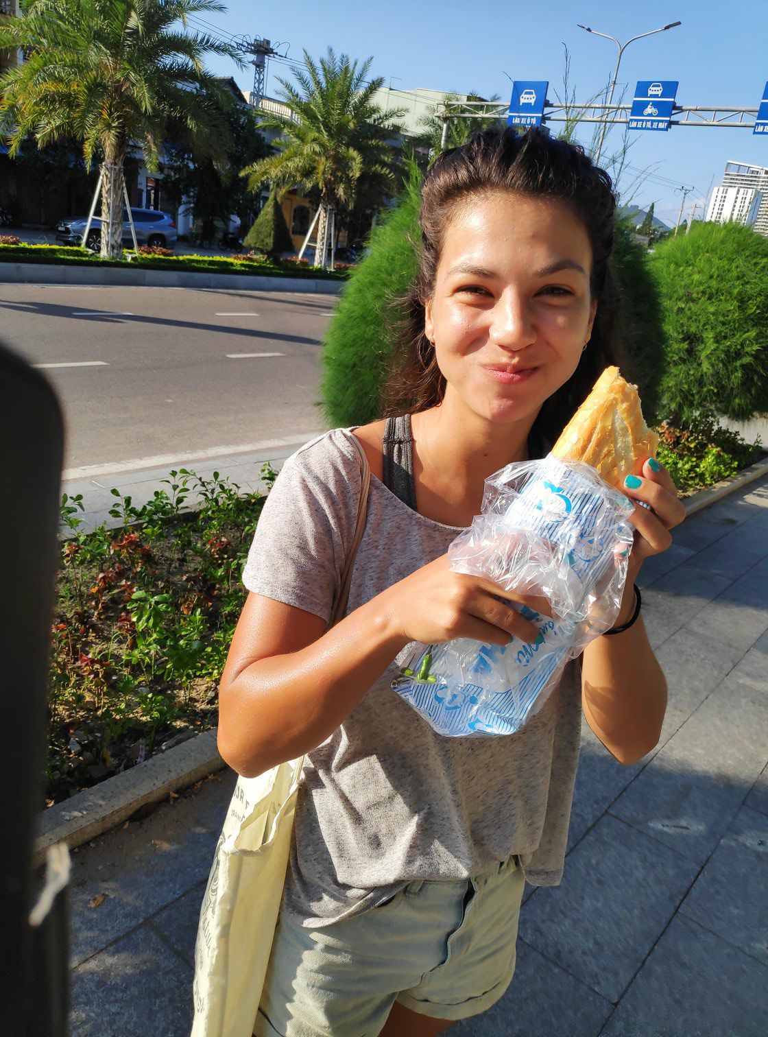 Sinds we in Vietnam zijn, zijn er twee dingen die we dagelijks consumeren. Dit zijn de Vietnamese bakjes koffie en de stokbroden genaamd Bahn Mi. Het is ideaal dat je op elke hoek van de straat een soort Subway hebt waarbij oude vrouwtjes je stokbroodje beleggen. Het voordeel is ook dat het geen drol kost. Het is tevens lekker en makkelijk. Het tekort aan brood hebben we hier weer ruimschoots ingehaald.